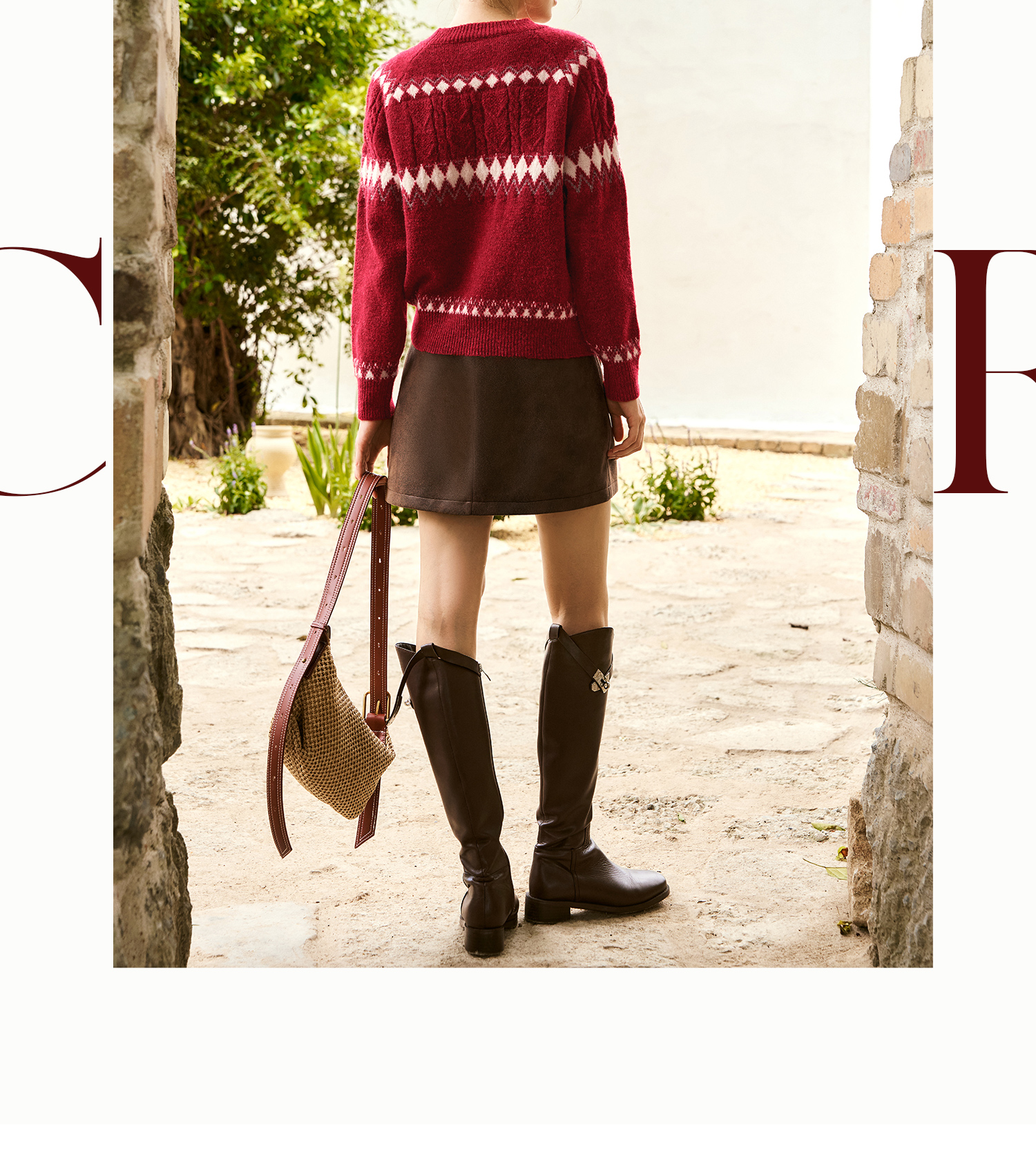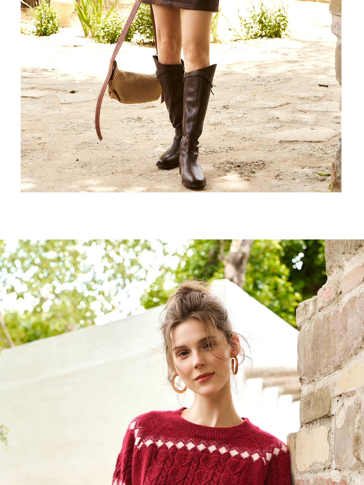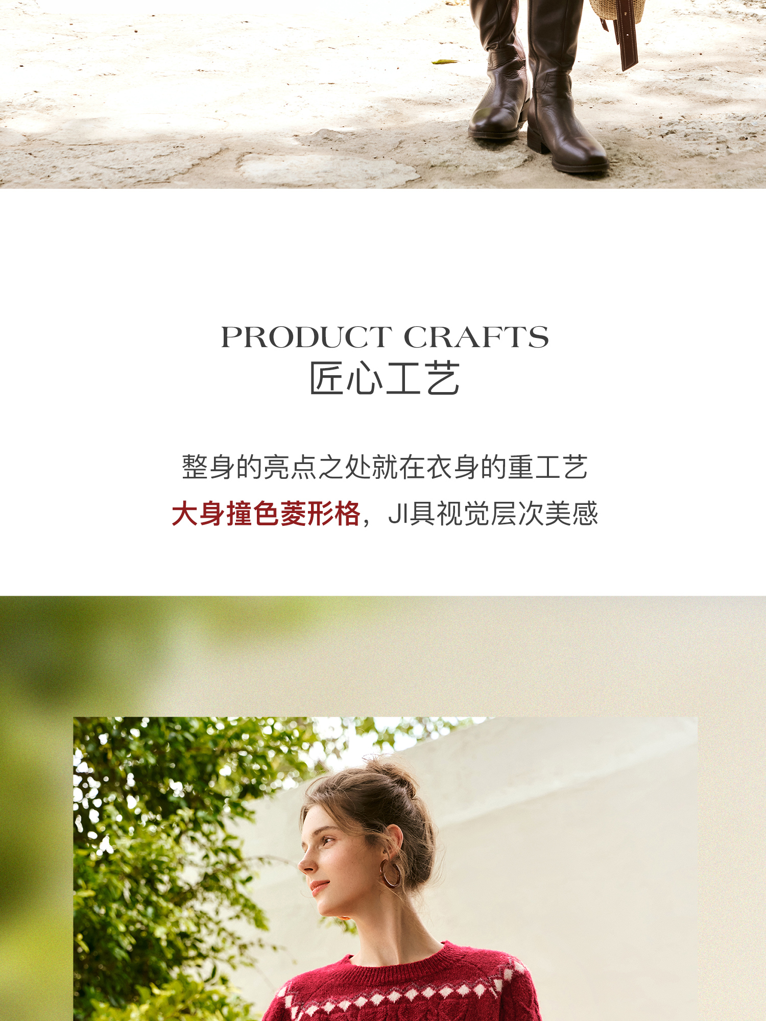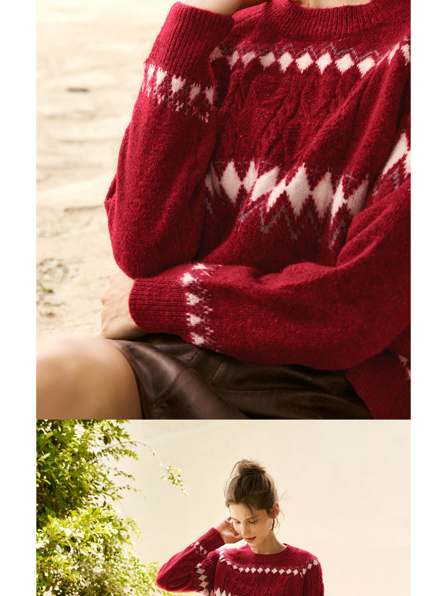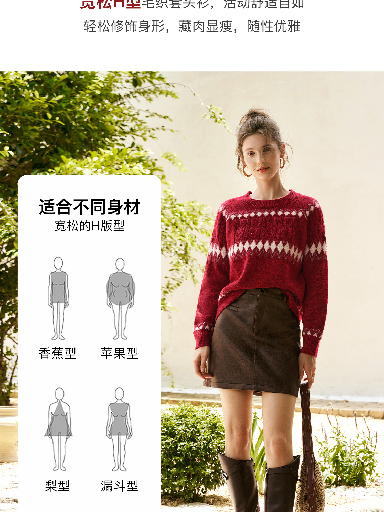 OLrain欧芮儿红色圆领毛衣女秋季2024年新款森系慵懒风套头上衣