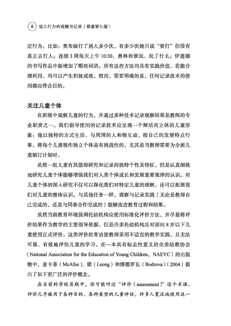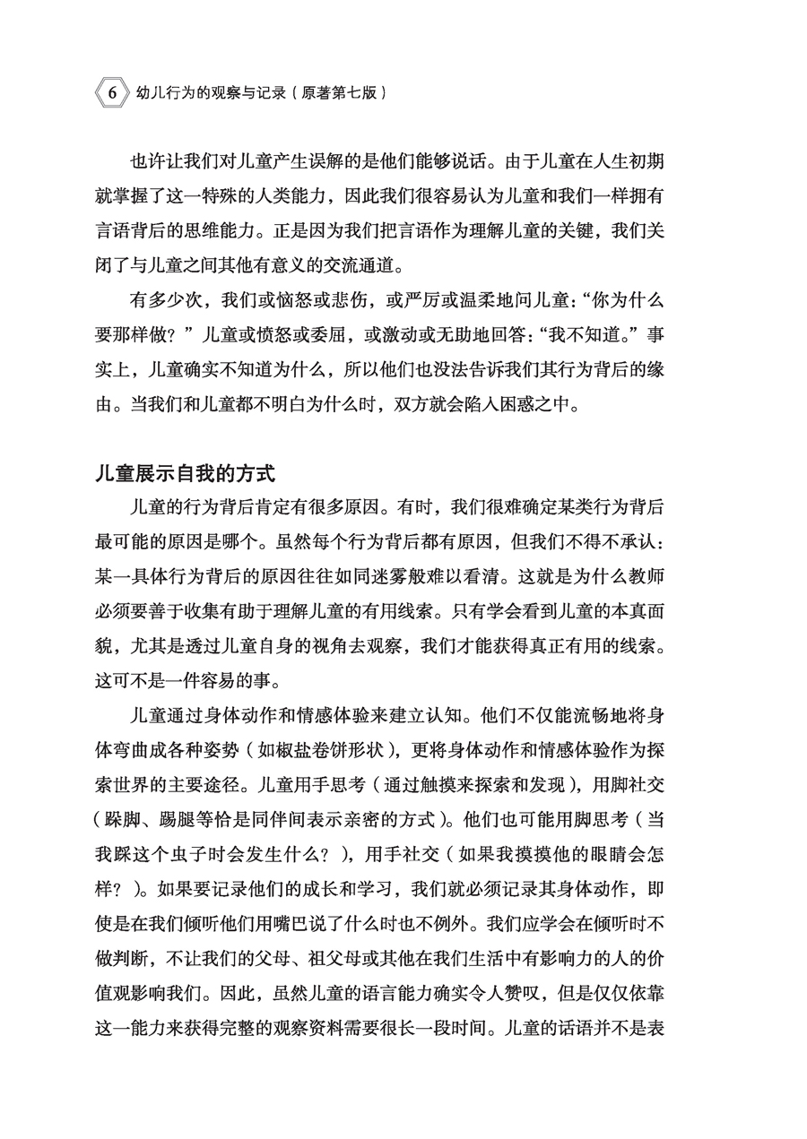 本书是一部历经7版、长销60多年的教育著作。书中内容系统阐述了从不同角度精准观察与客观记录幼儿行为的具体策略,旨在帮助学前教育工作者和大中专院校学前教育专业学生走进幼儿世界,支持幼儿发展。