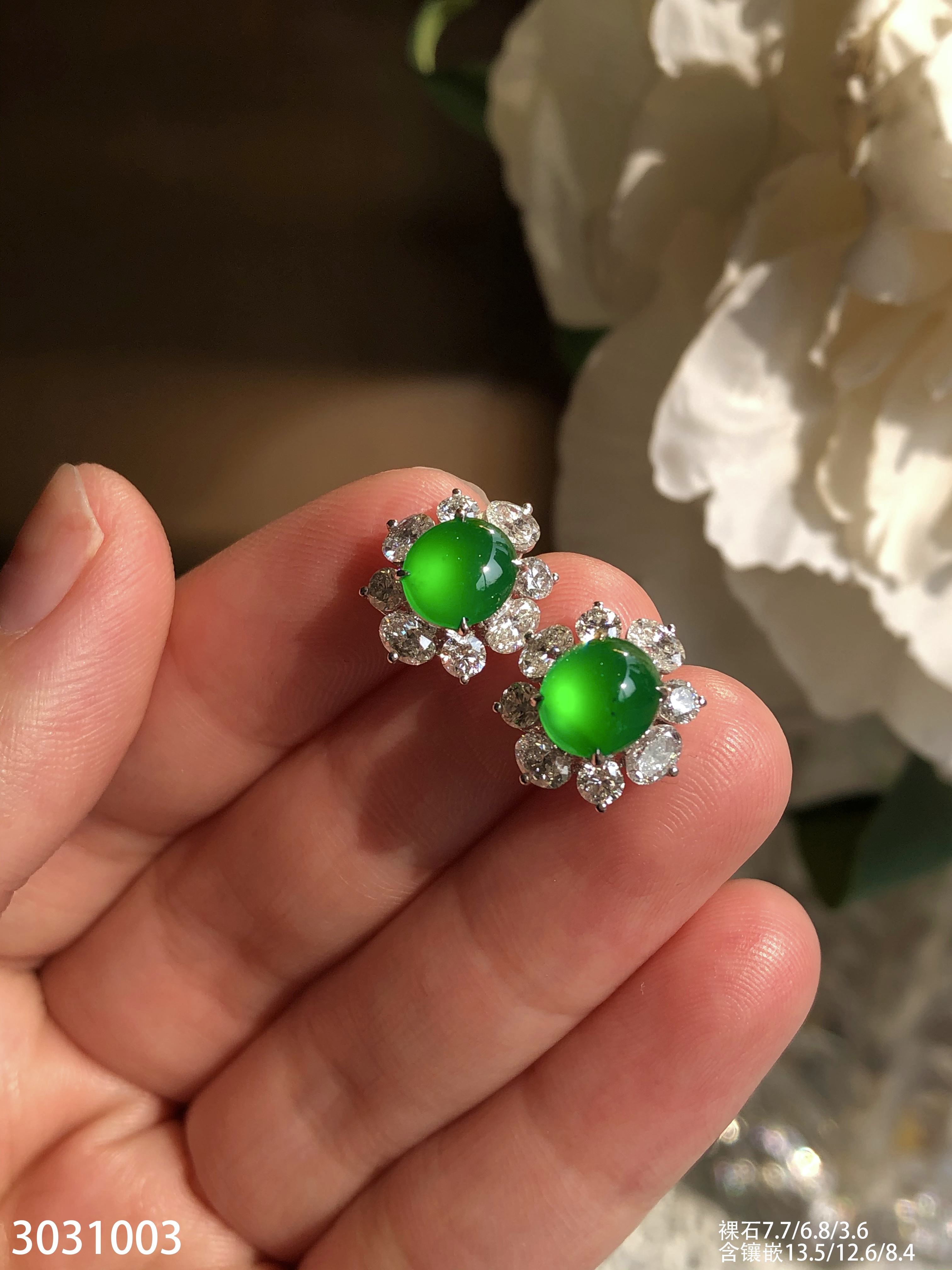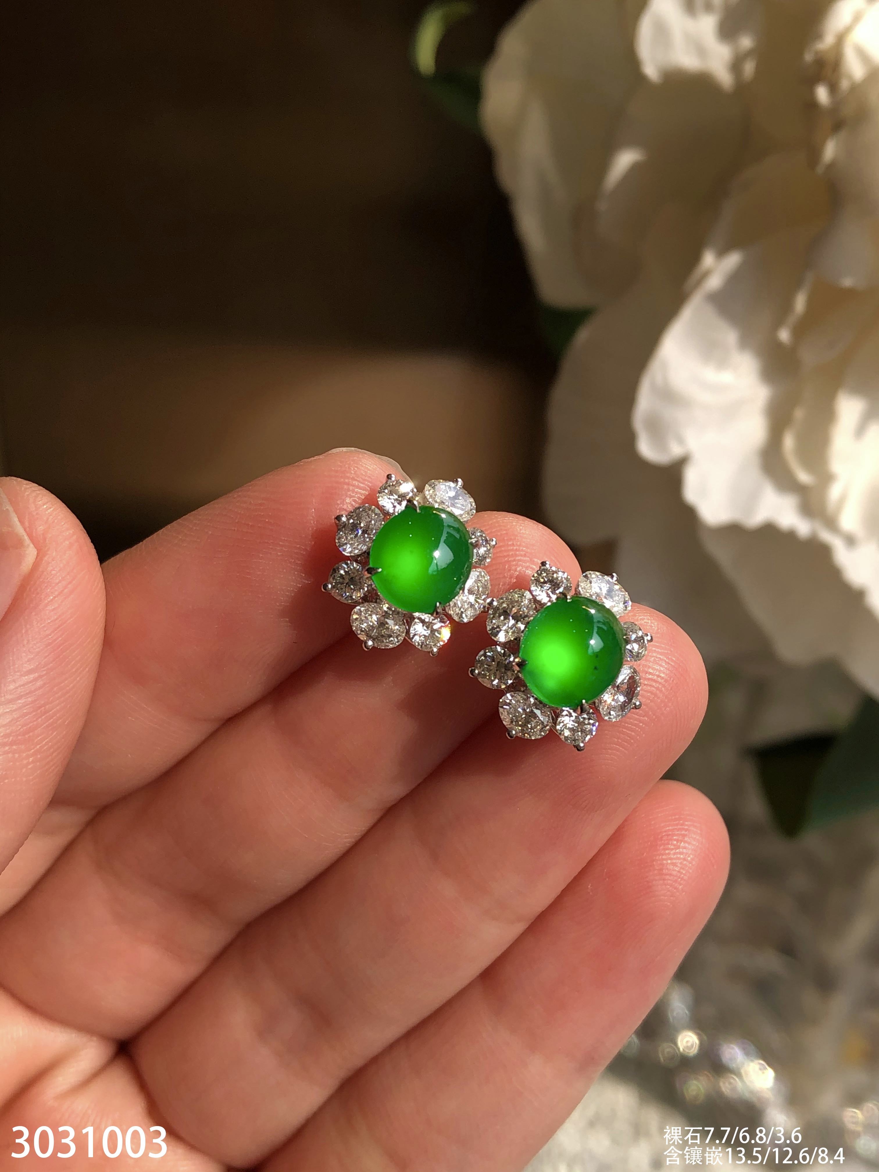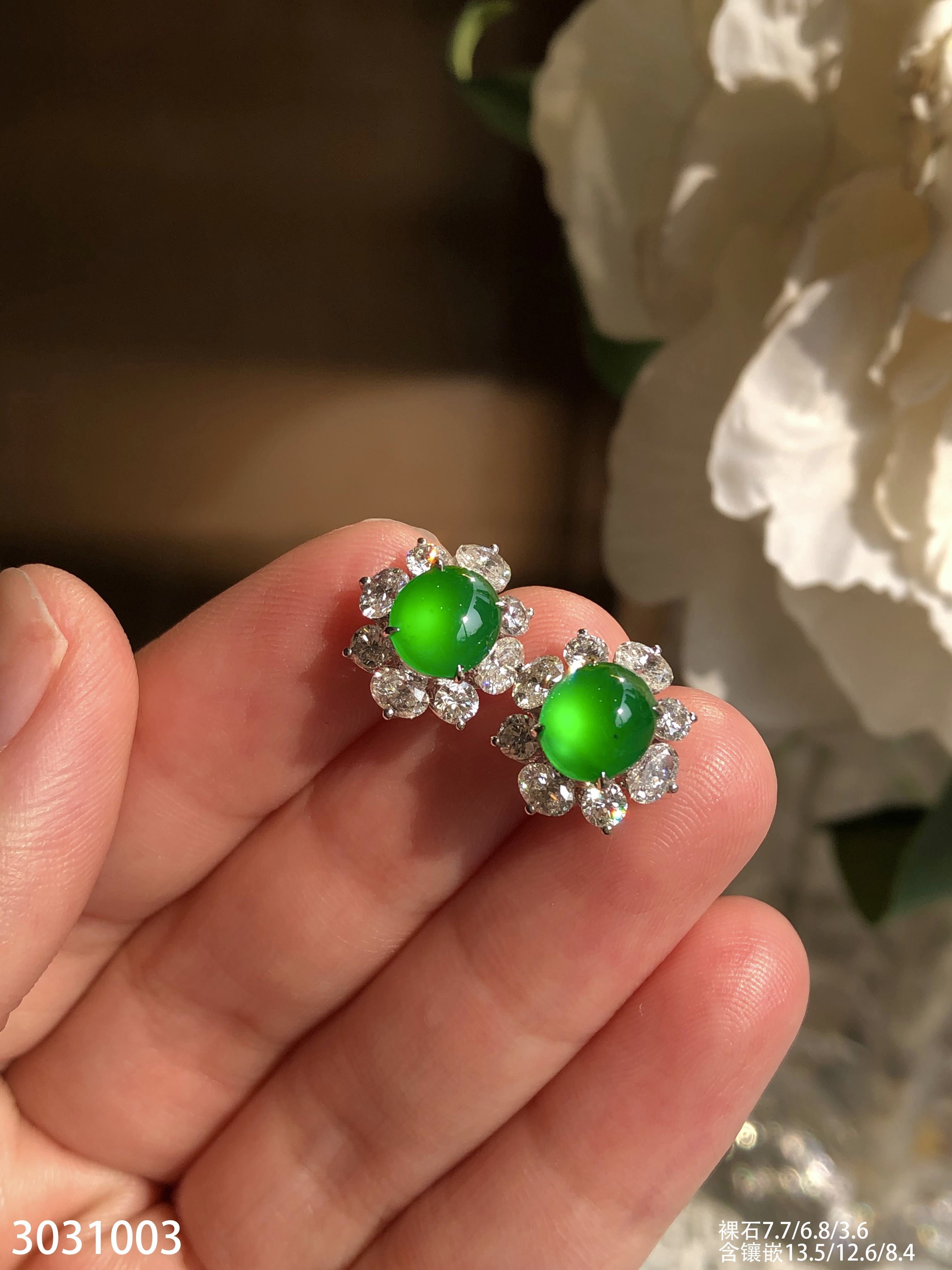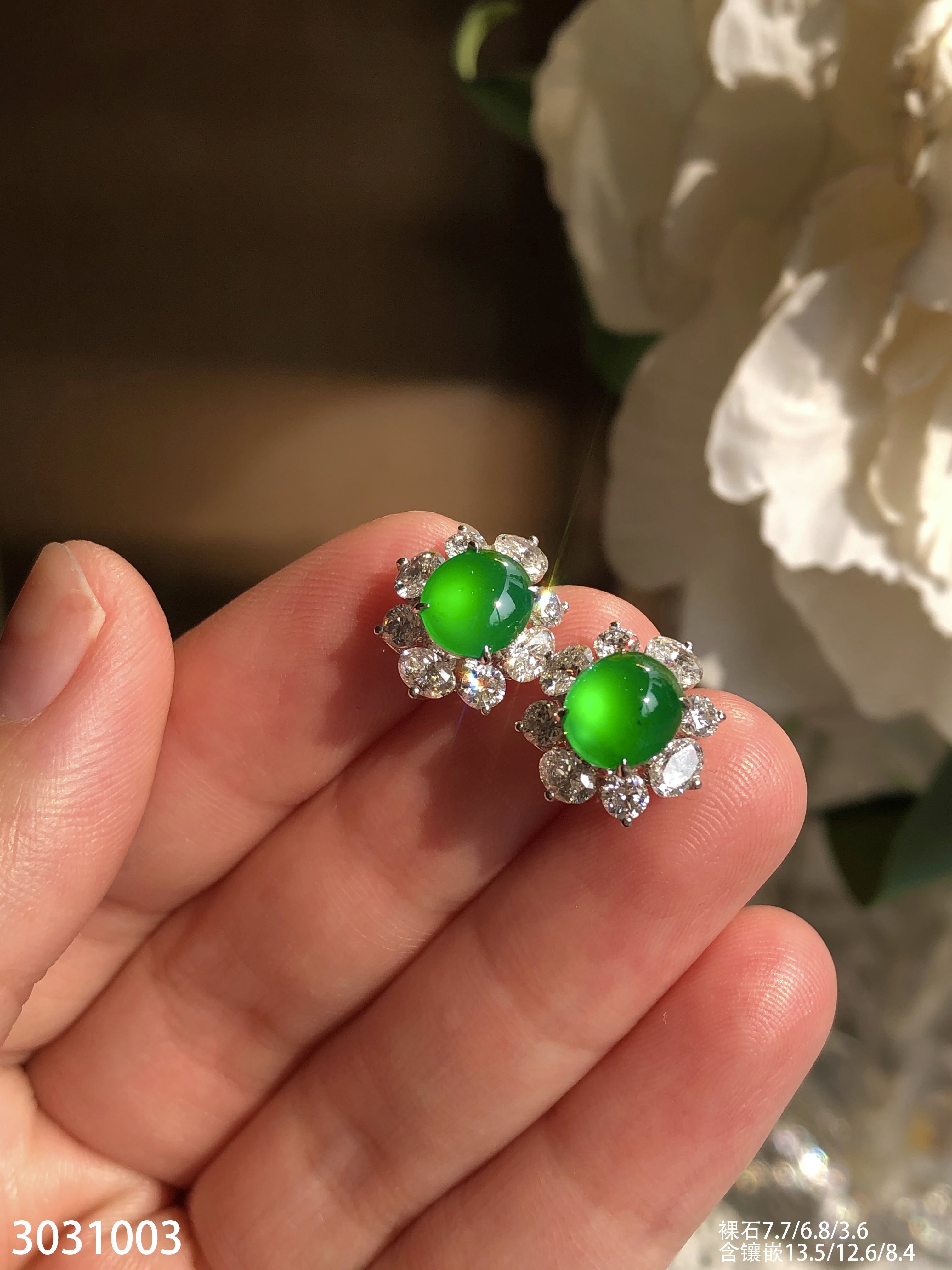 老坑玻璃帝王绿黄阳蛋面耳钉【3031003】具体价格微信咨询
