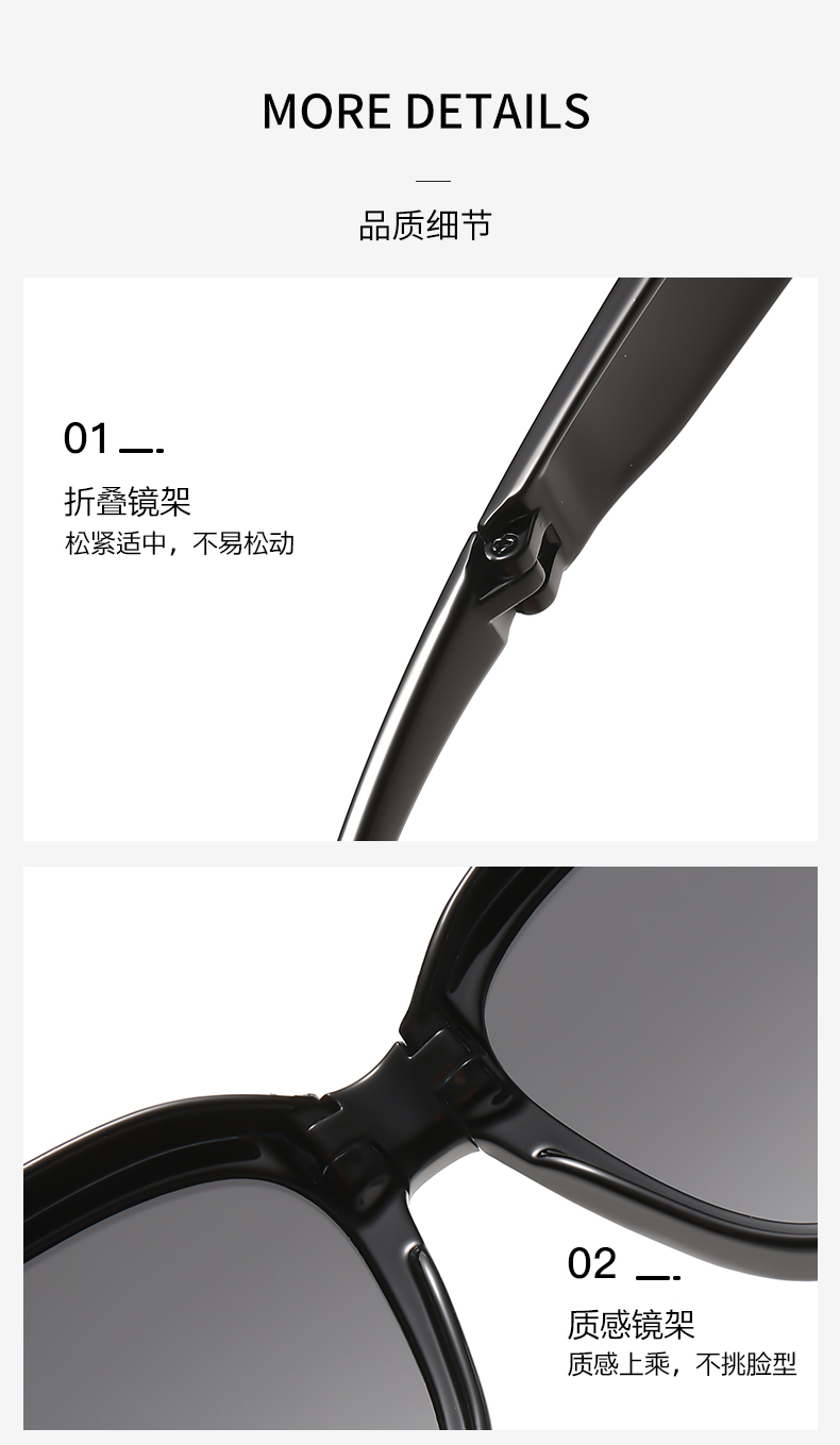 1、最新款三段折叠设计,个性小巧,随身携带,轻潮出镜,男女同款 时尚大框,瘦脸修颜。