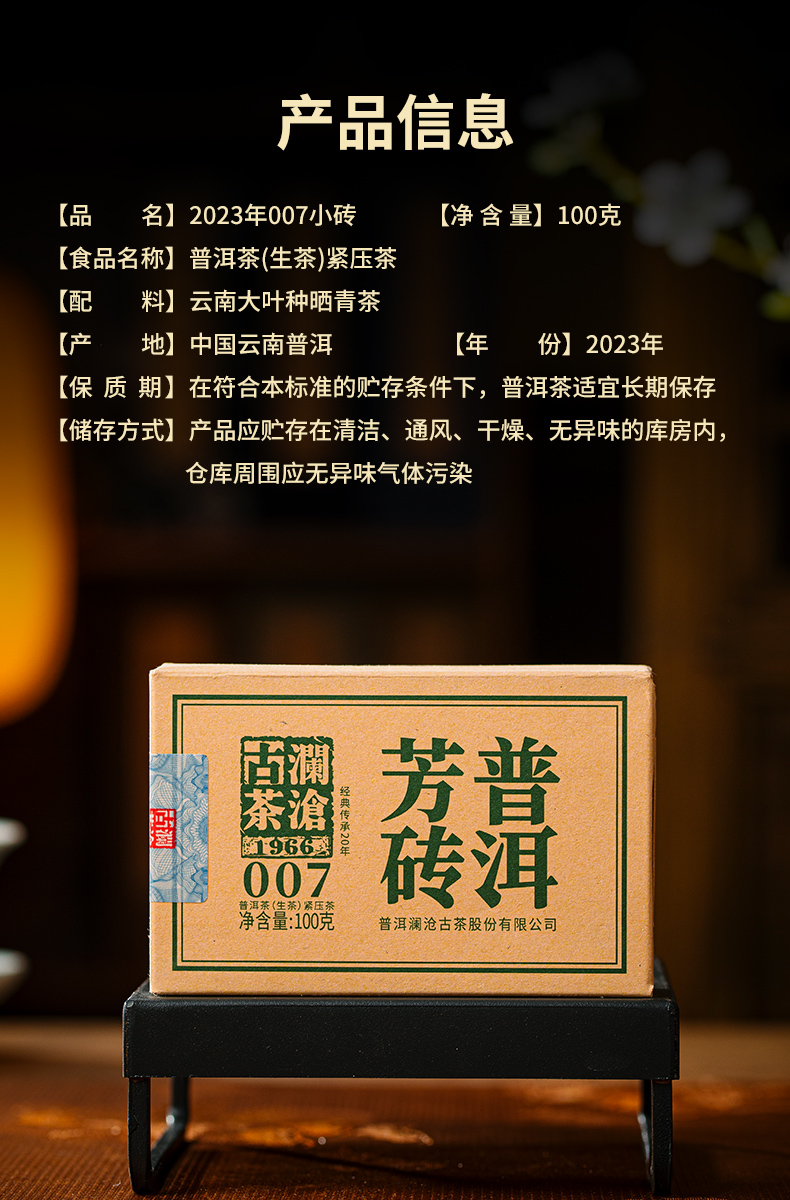 澜沧古茶2023年007小砖普洱茶生茶100g