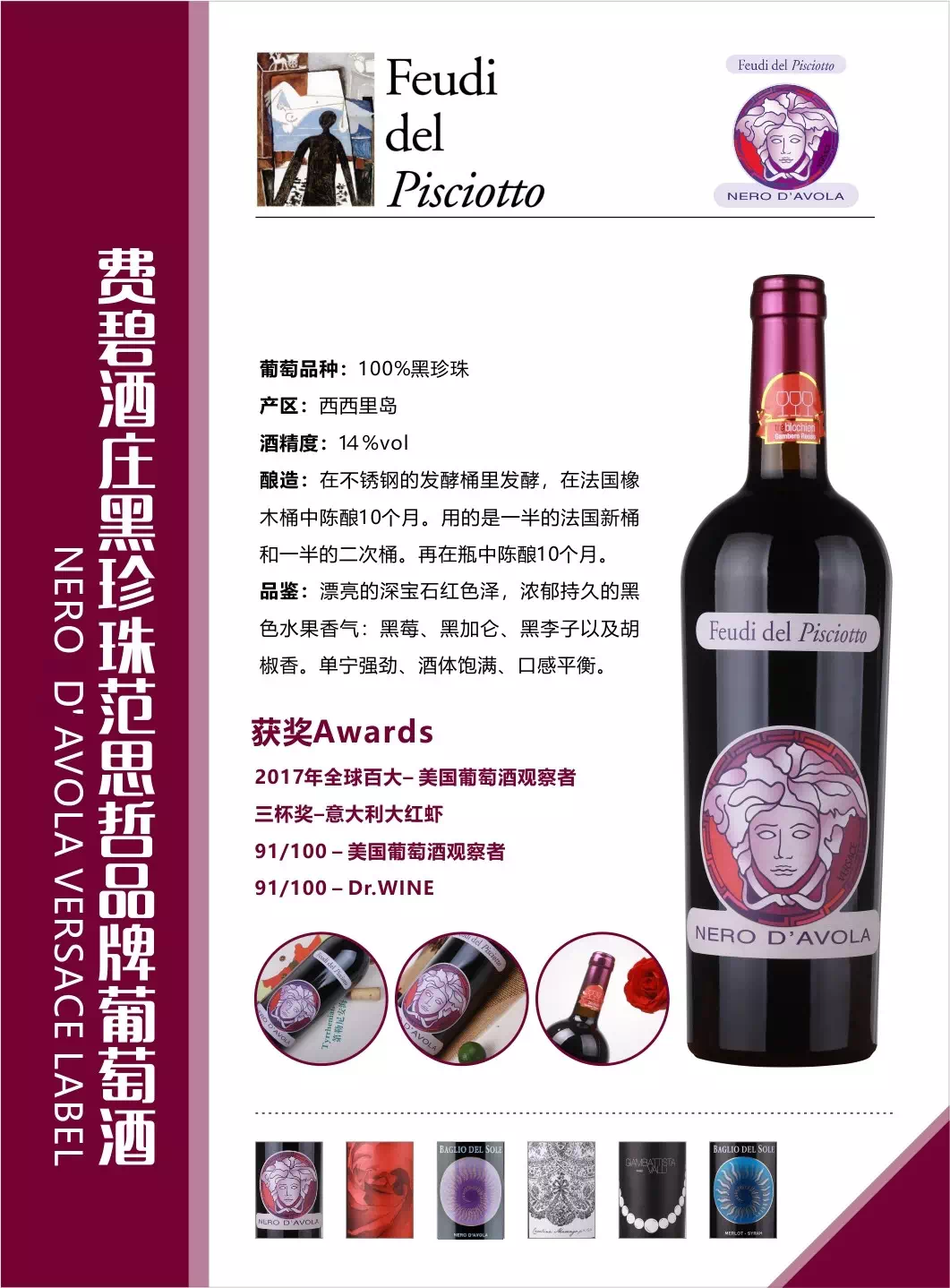 【轻奢品牌范思哲 大红虾三杯奖】费碧酒庄黑珍珠范思哲红葡萄酒 750ml/瓶 意大利原装原瓶进口 单宁强劲 酒体饱满 口感平衡【此品不参与促销活动】