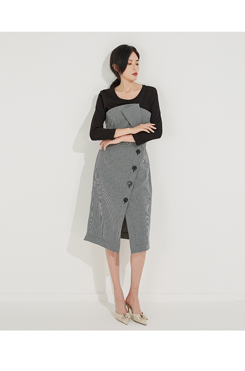 oldcolour秋季新款收腰显瘦泡泡袖拼接短袖连衣裙女P311001A1