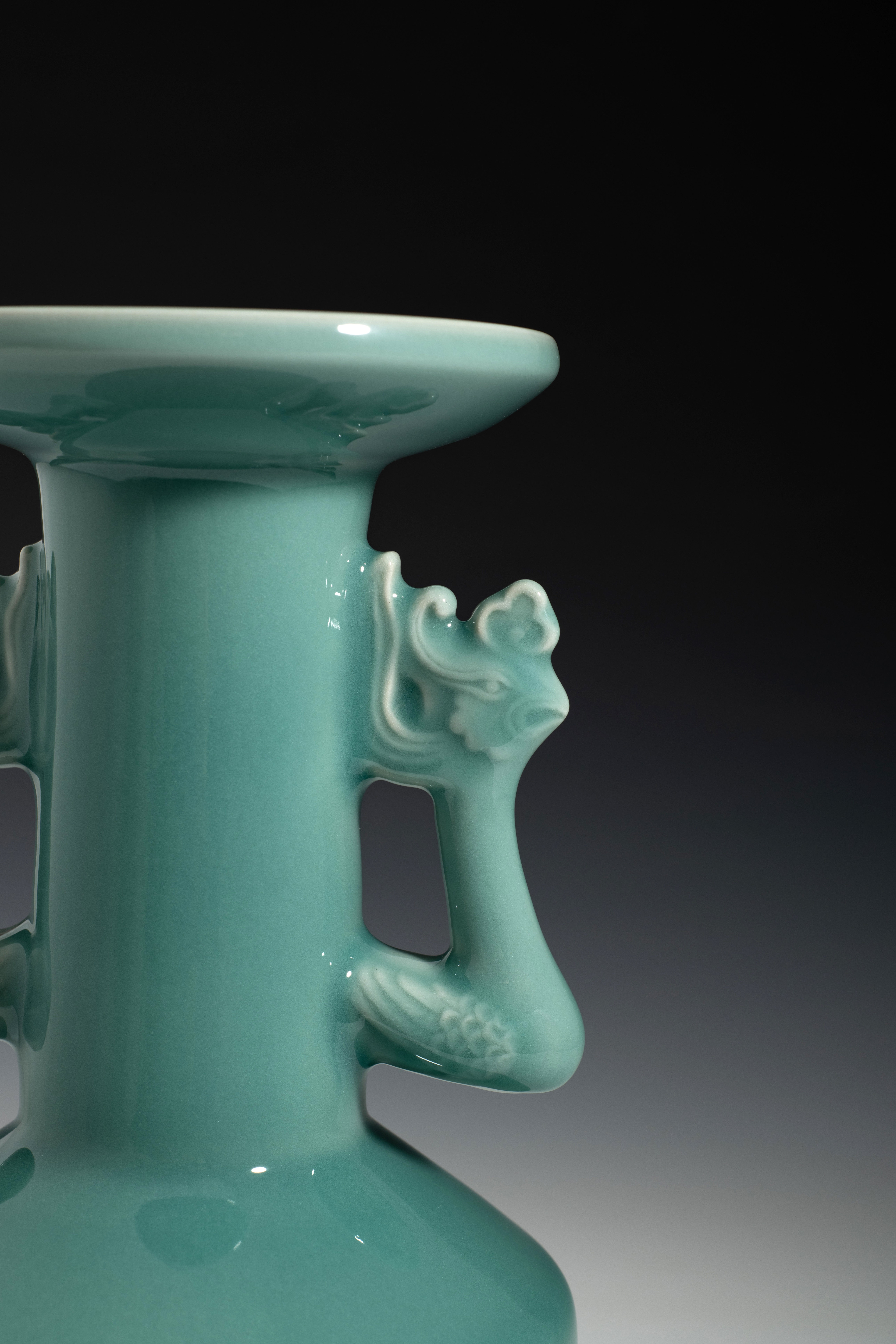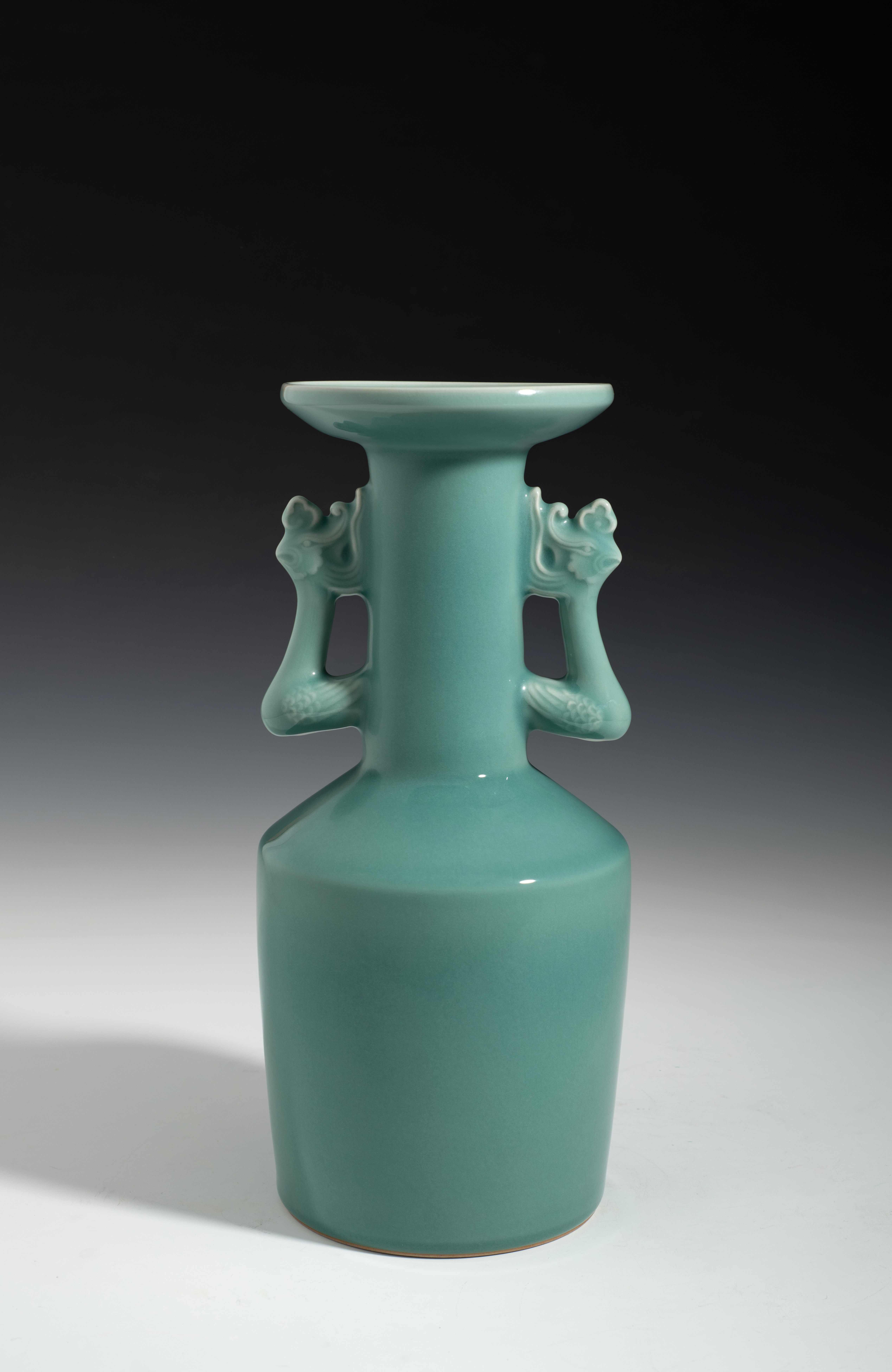 老字号 孙坑窑青釉凤耳瓶非物质文化遗产龙泉青瓷