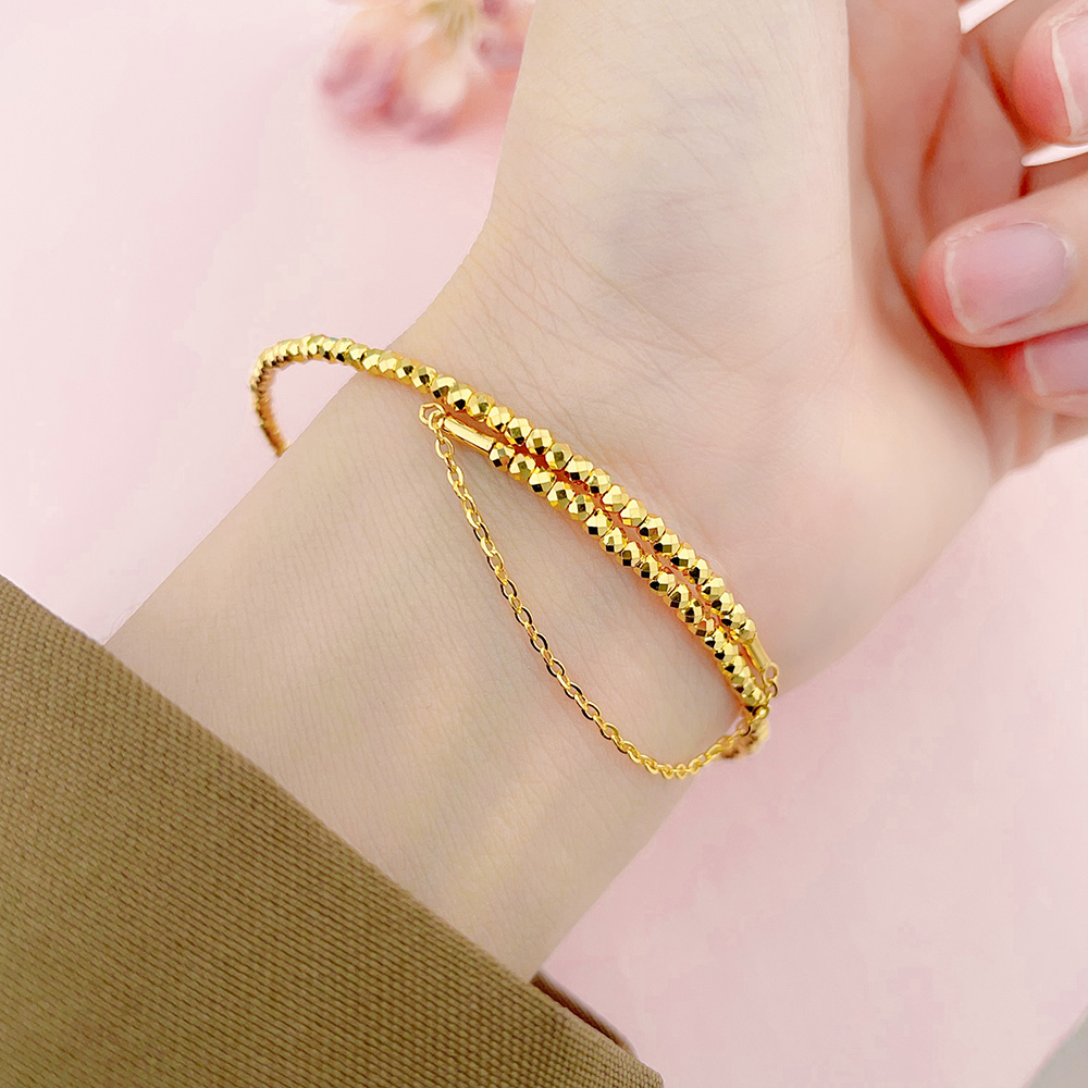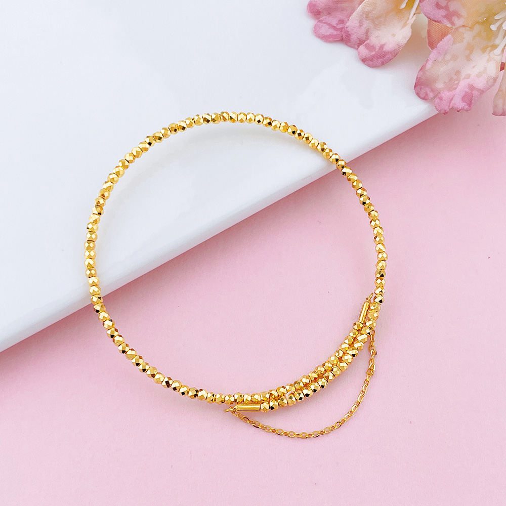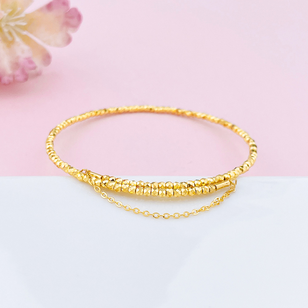 【限时克减150元】足金999 5G黄金单圈蹦迪珠弹力镯空心开口蹦迪珠手镯弹力手镯(总面宽约1.9-2.3mm)(AN5GSZ00001-4)(预售产品下单后不退款不退货不换货不补差价)