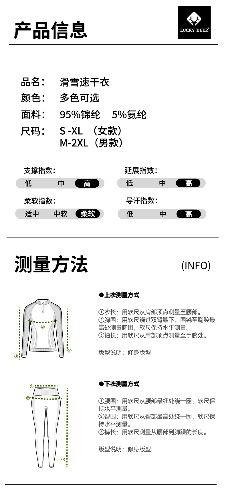 【139秒杀!】LUCKY DEER幸运鹿压缩衣套装滑雪内衣保暖吸湿速干套装