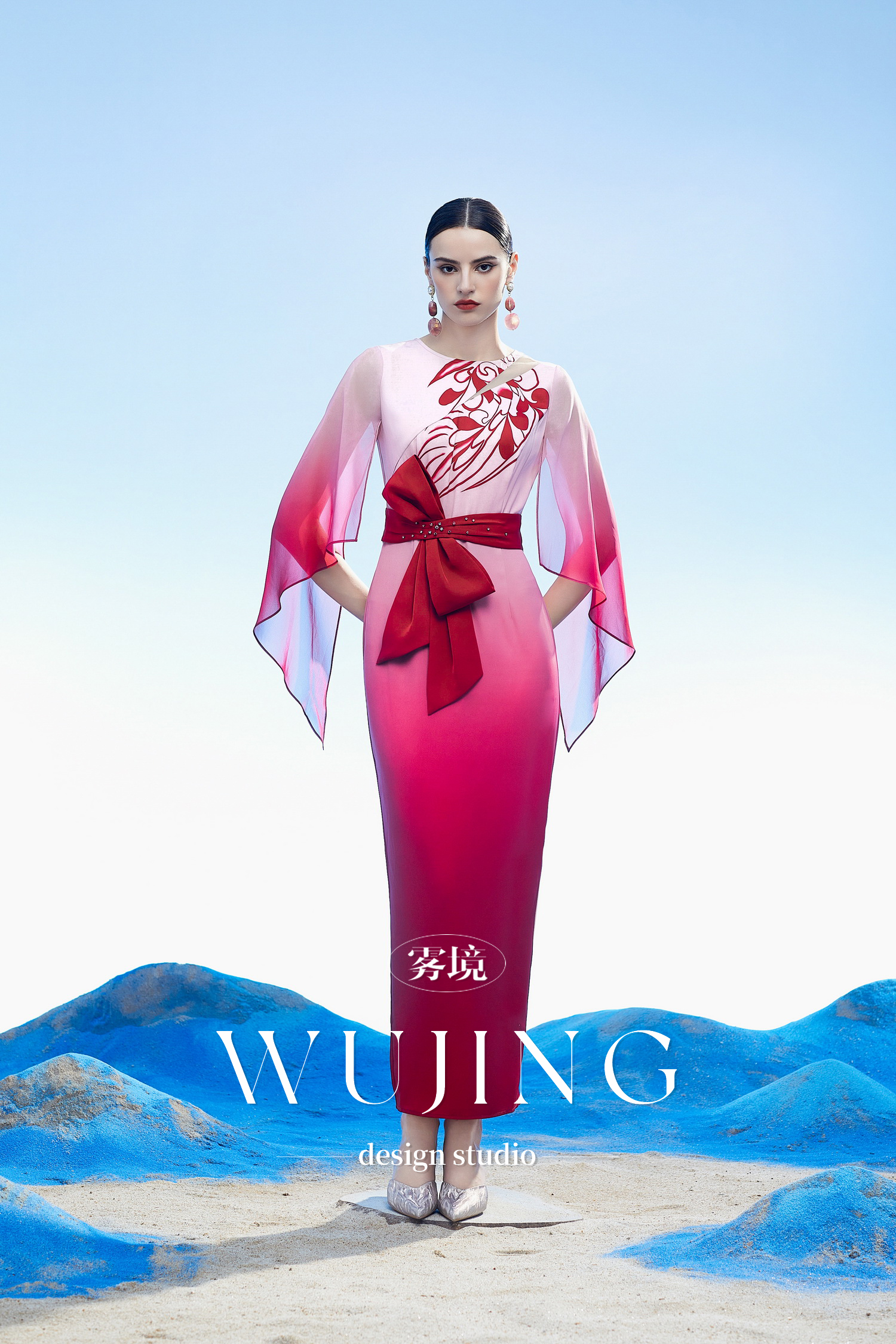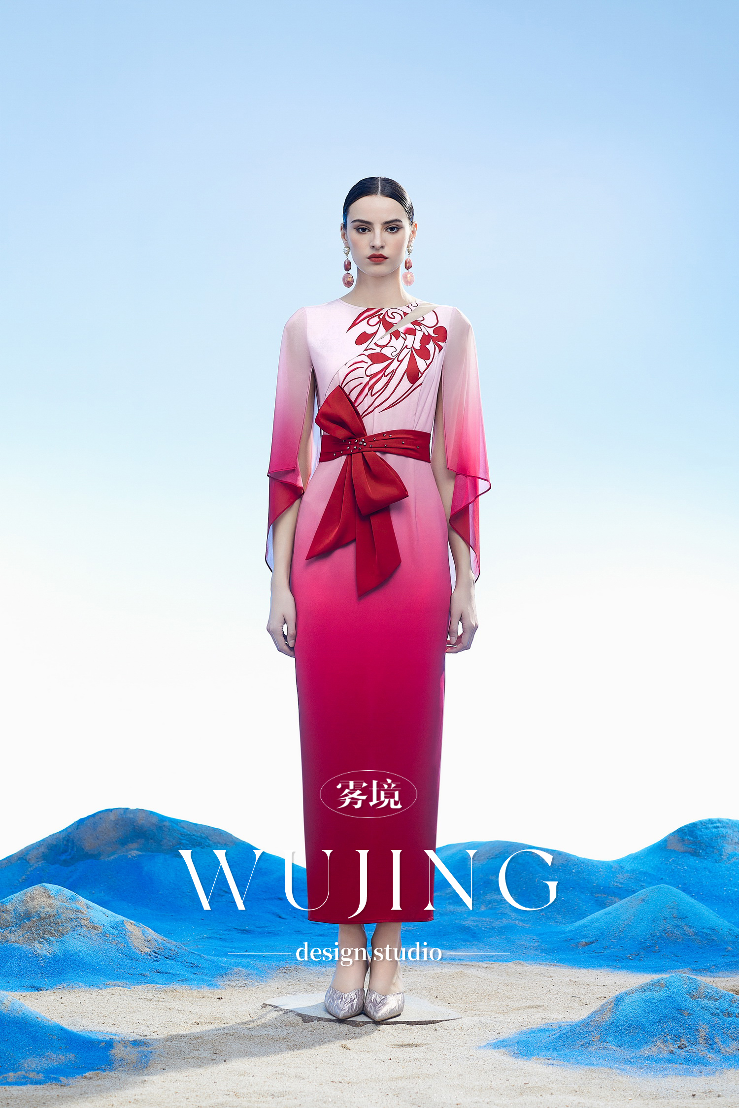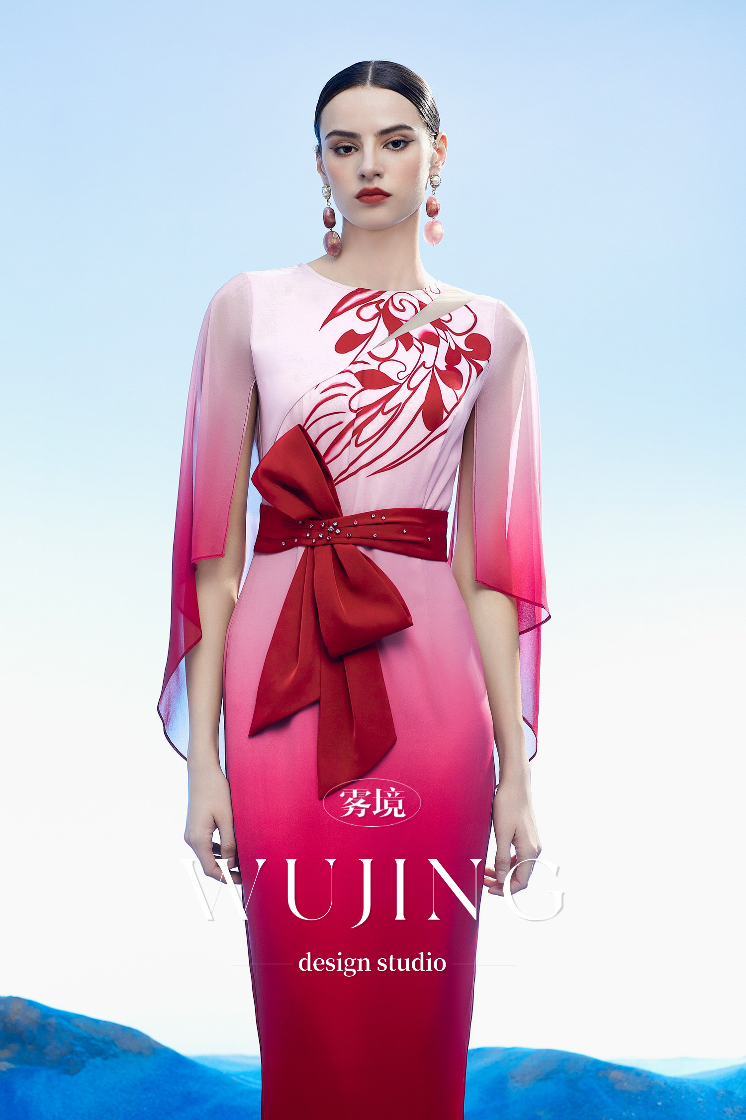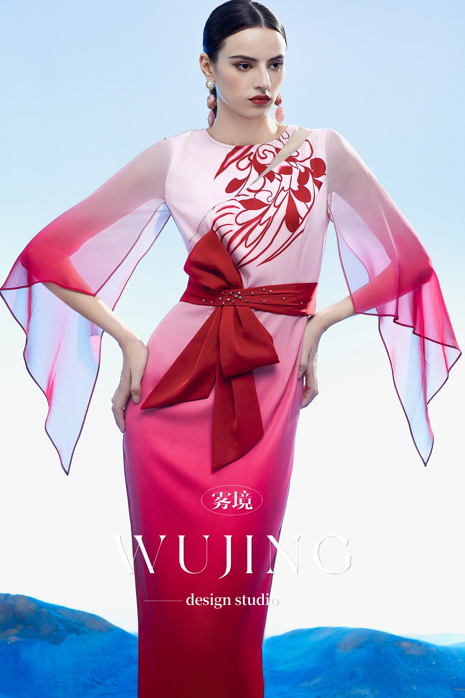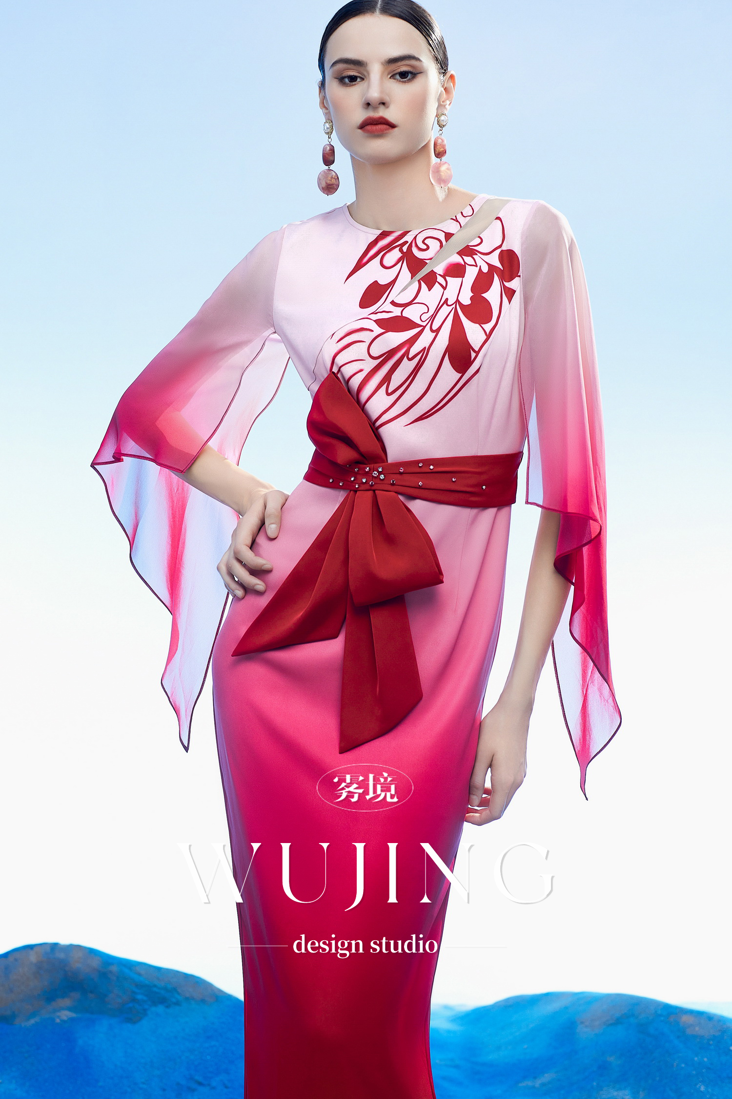 3204041 扶摇云梦 韩国进口水晶乔其纱进口纹理蜂窝缎连衣裙 雾境