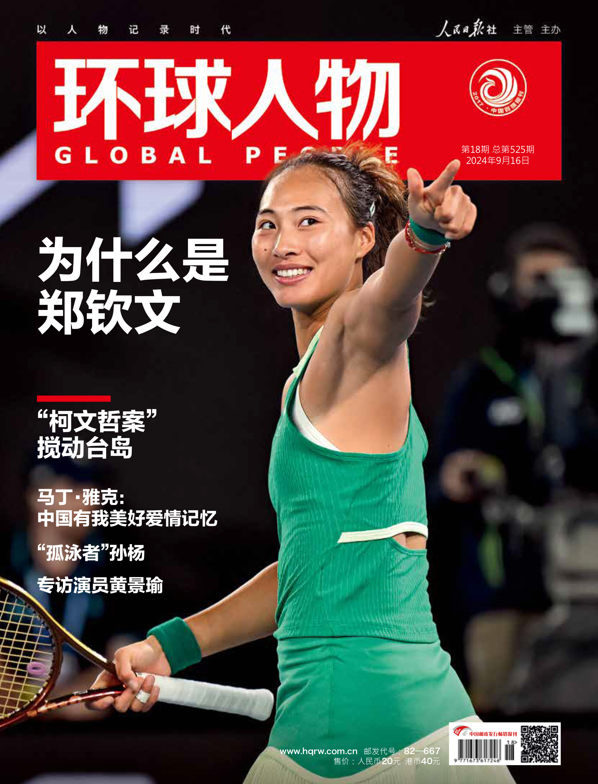 2024年第18期封面人物——郑钦文。这个国庆节,看中网郑钦文的比赛,更要看《环球人物》!《环球人物》记者在巴黎奥运会上跟访了郑钦文的每一场比赛,之后又专访了郑钦文早期教练、美网专业人士等,我们用这个封面回答人们最关心的问题:为什么是郑钦文?培养一个郑钦文,需要什么样的努力和途径?