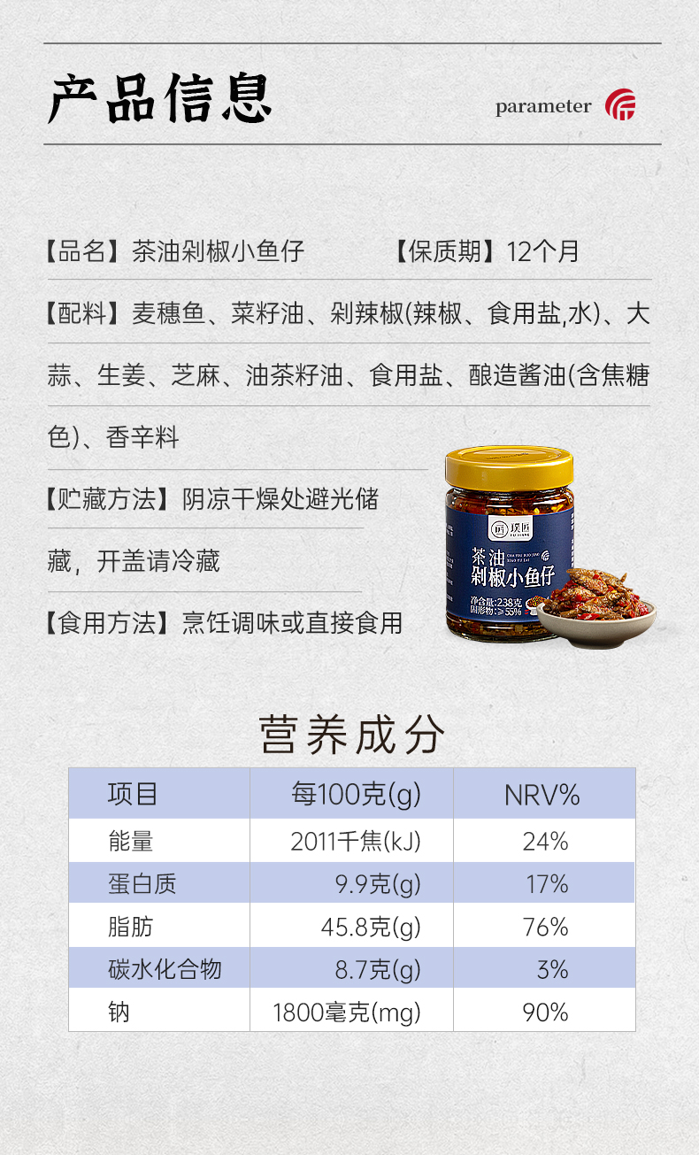 璞匠茶油剁椒小鱼仔下饭菜官方旗舰店湖南特产即食香辣鱼干辣椒酱