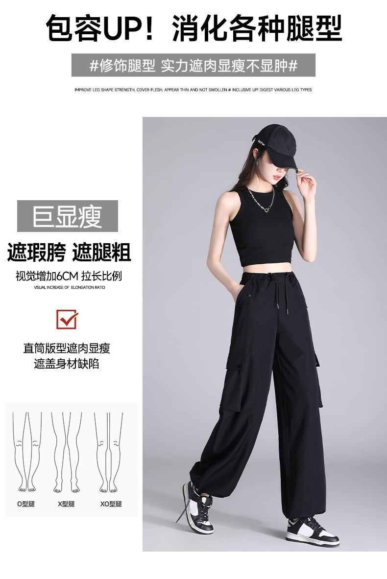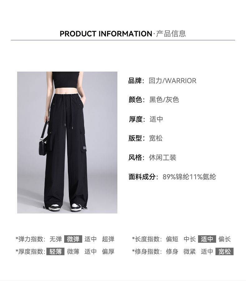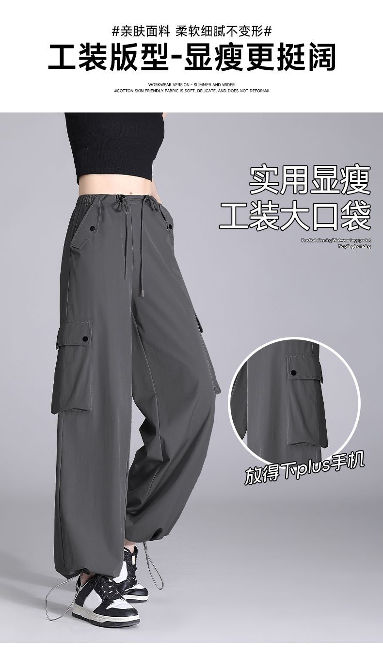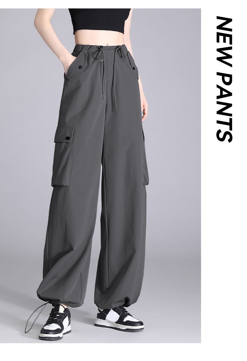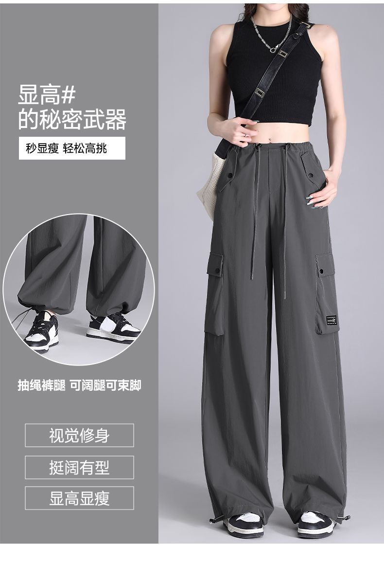 回力灰色工装裤女2025夏季新款薄款阔腿裤百搭休闲显瘦直筒冰丝裤