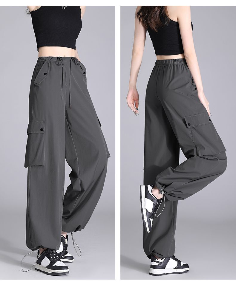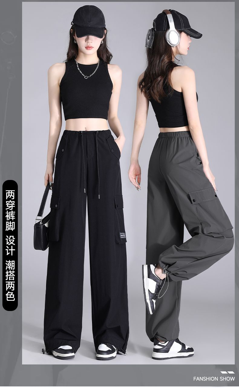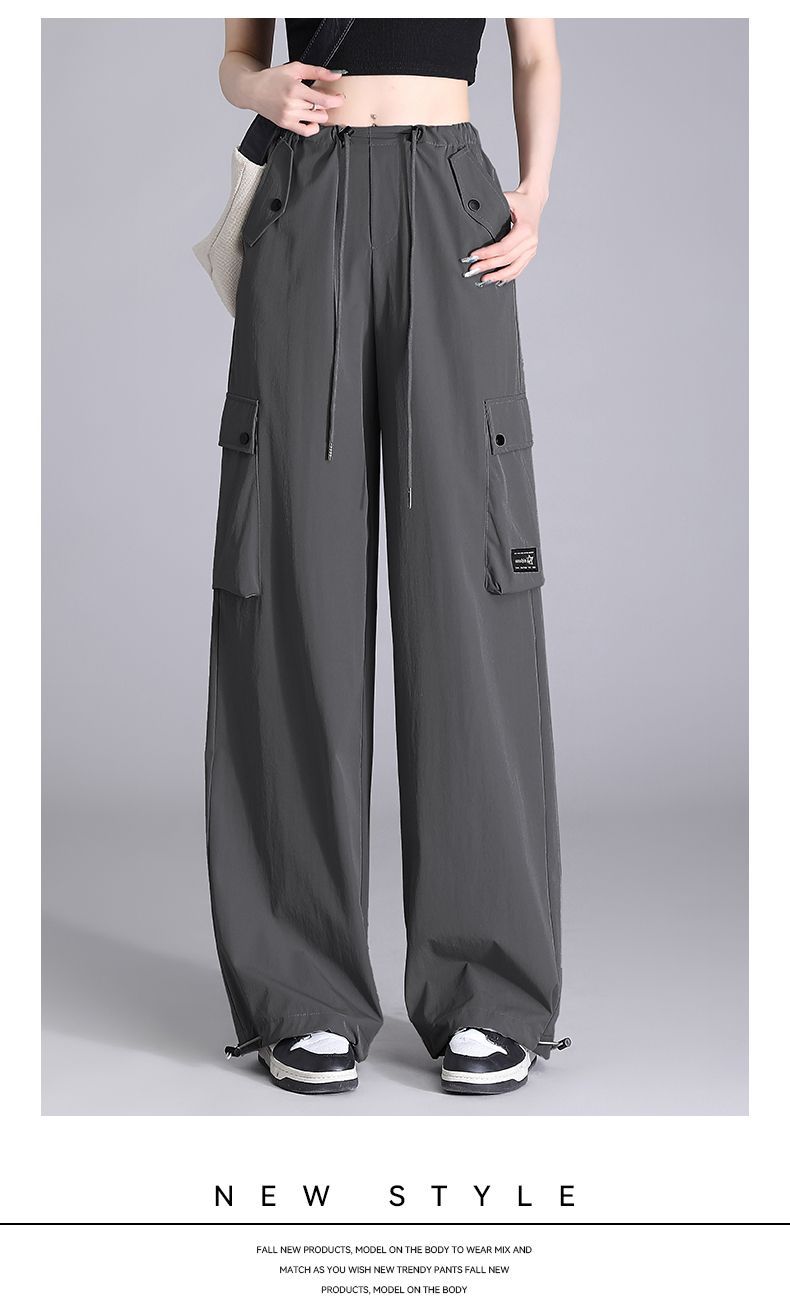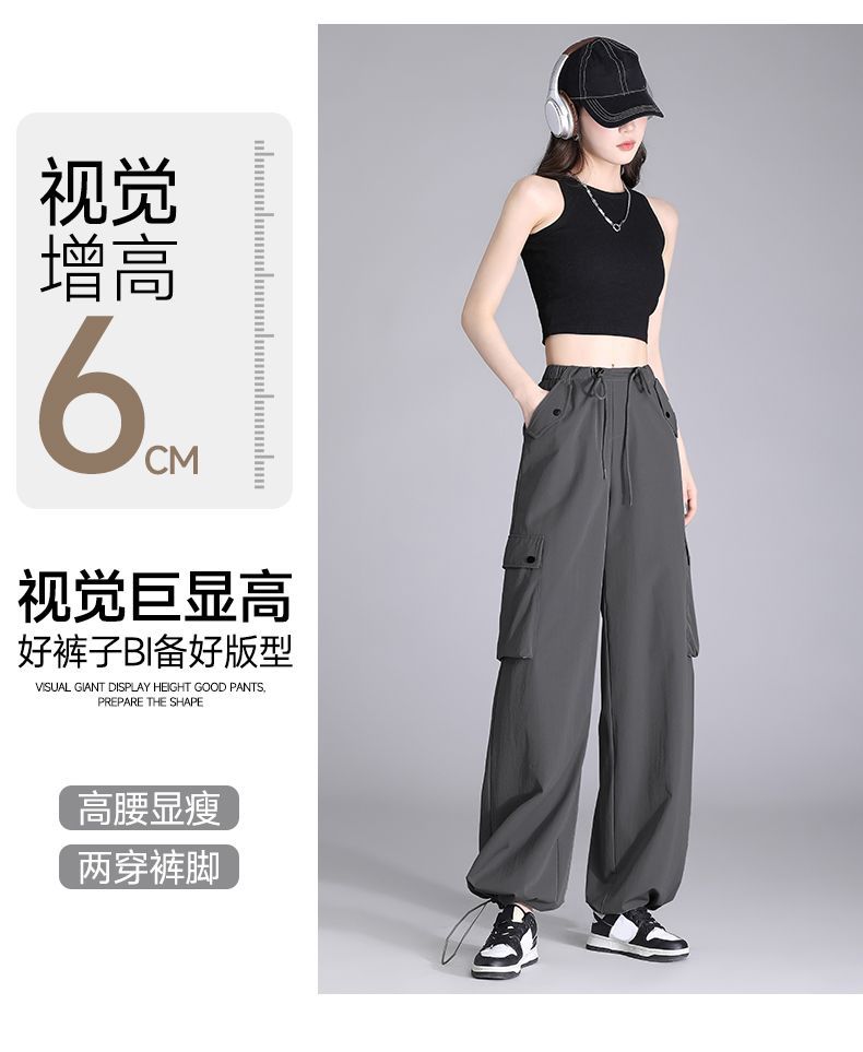 回力灰色工装裤女2025夏季新款薄款阔腿裤百搭休闲显瘦直筒冰丝裤