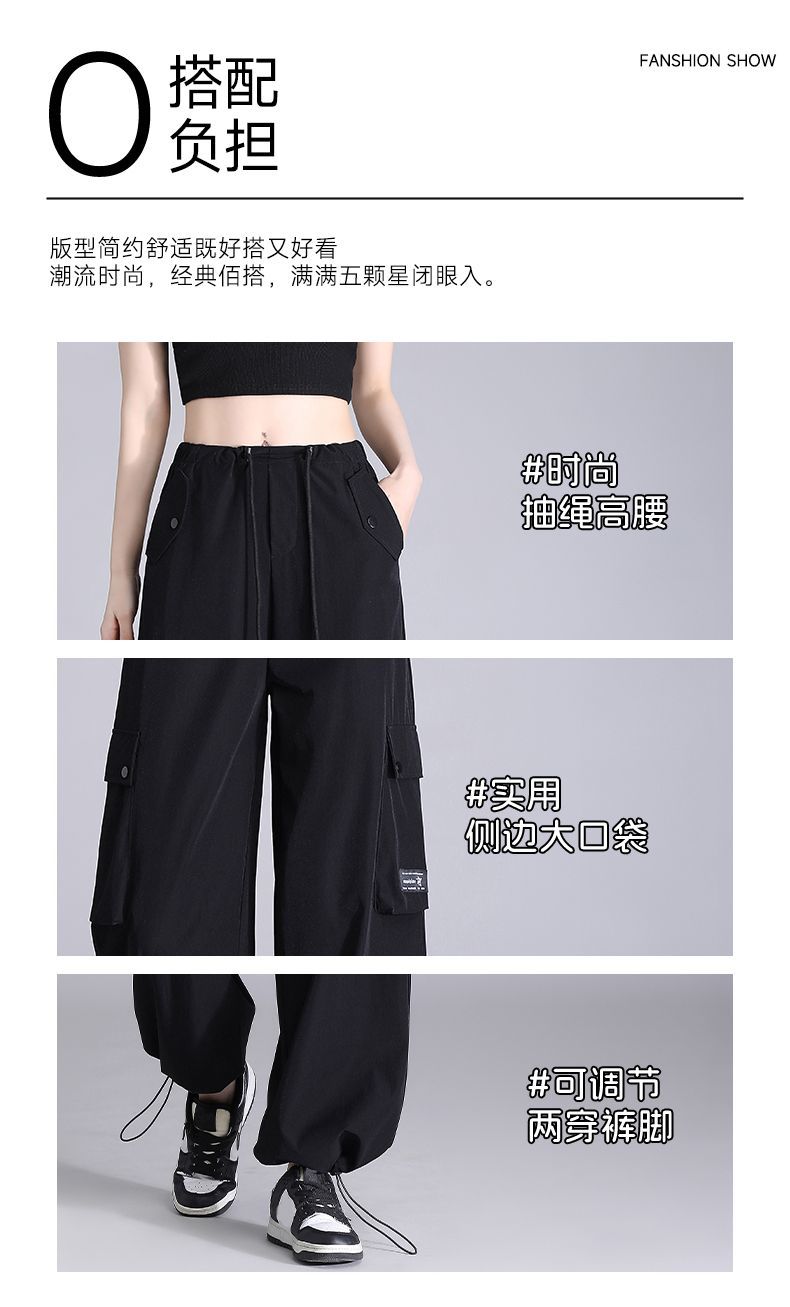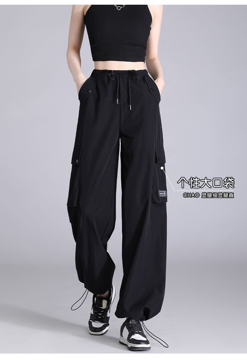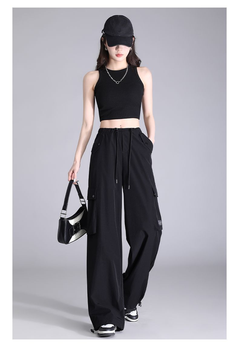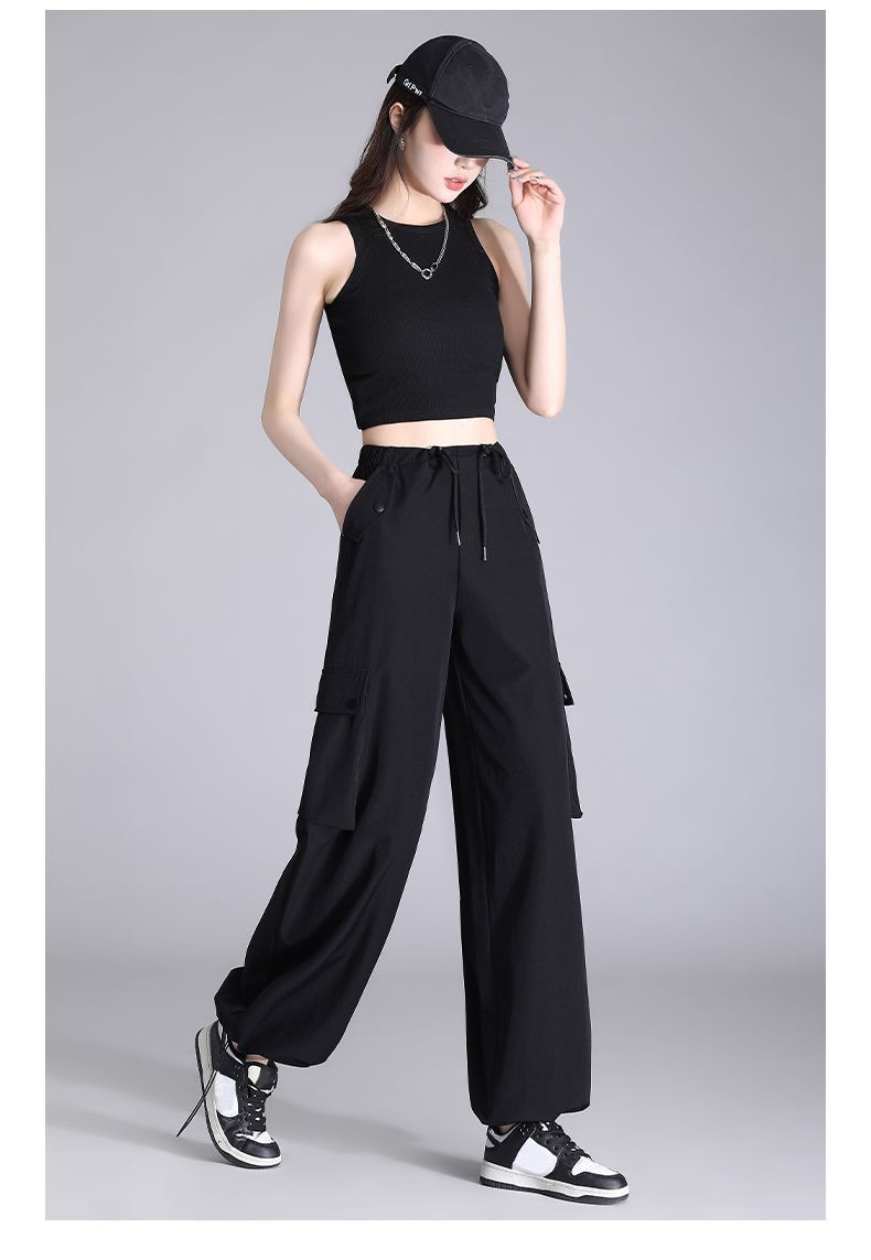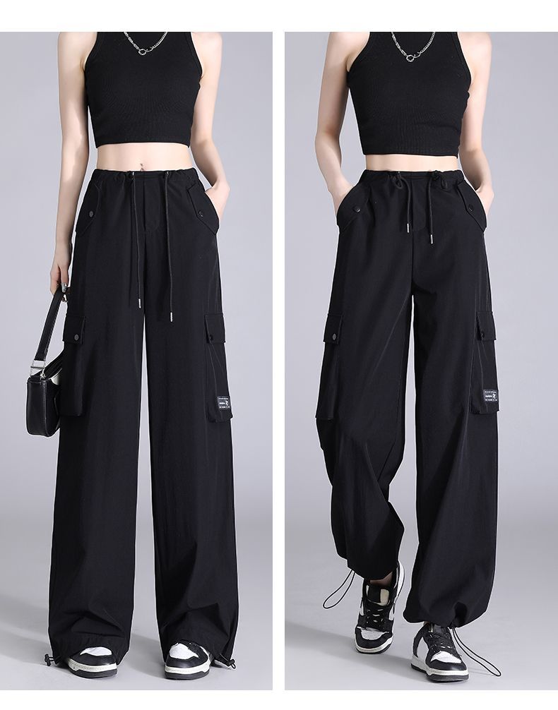 回力灰色工装裤女2025夏季新款薄款阔腿裤百搭休闲显瘦直筒冰丝裤