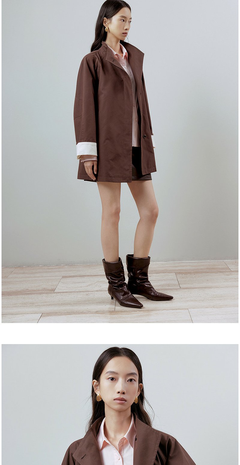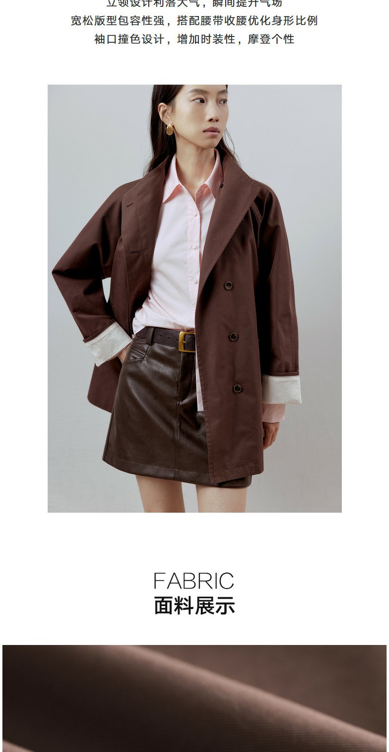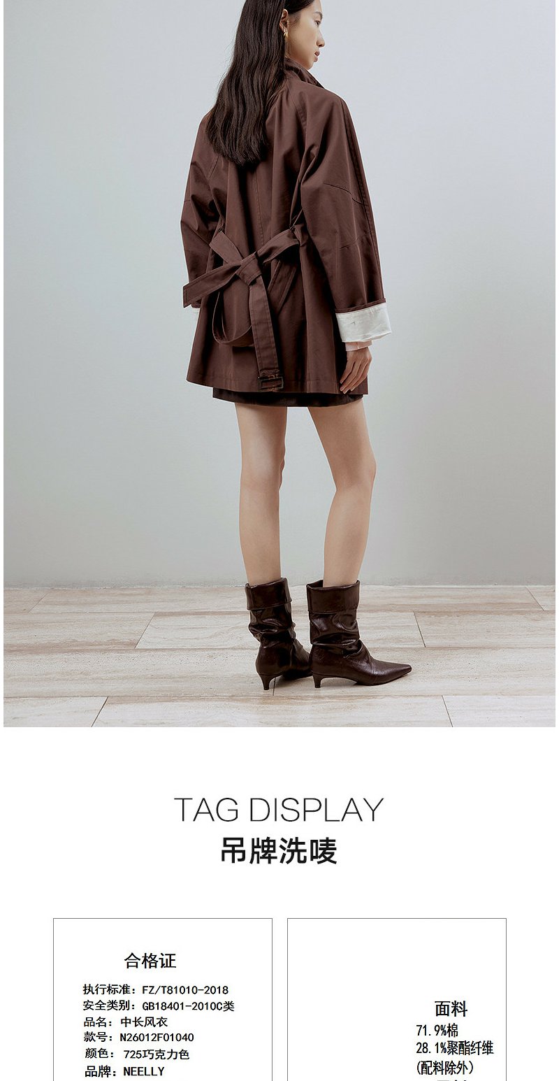 NEELLY纳俪商场同款春季新款时尚宽松立领风衣女简约休闲外套N26012F01040