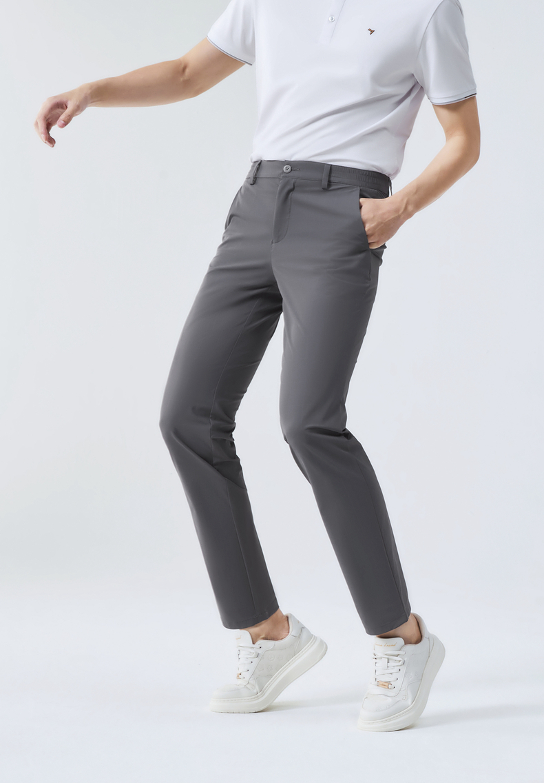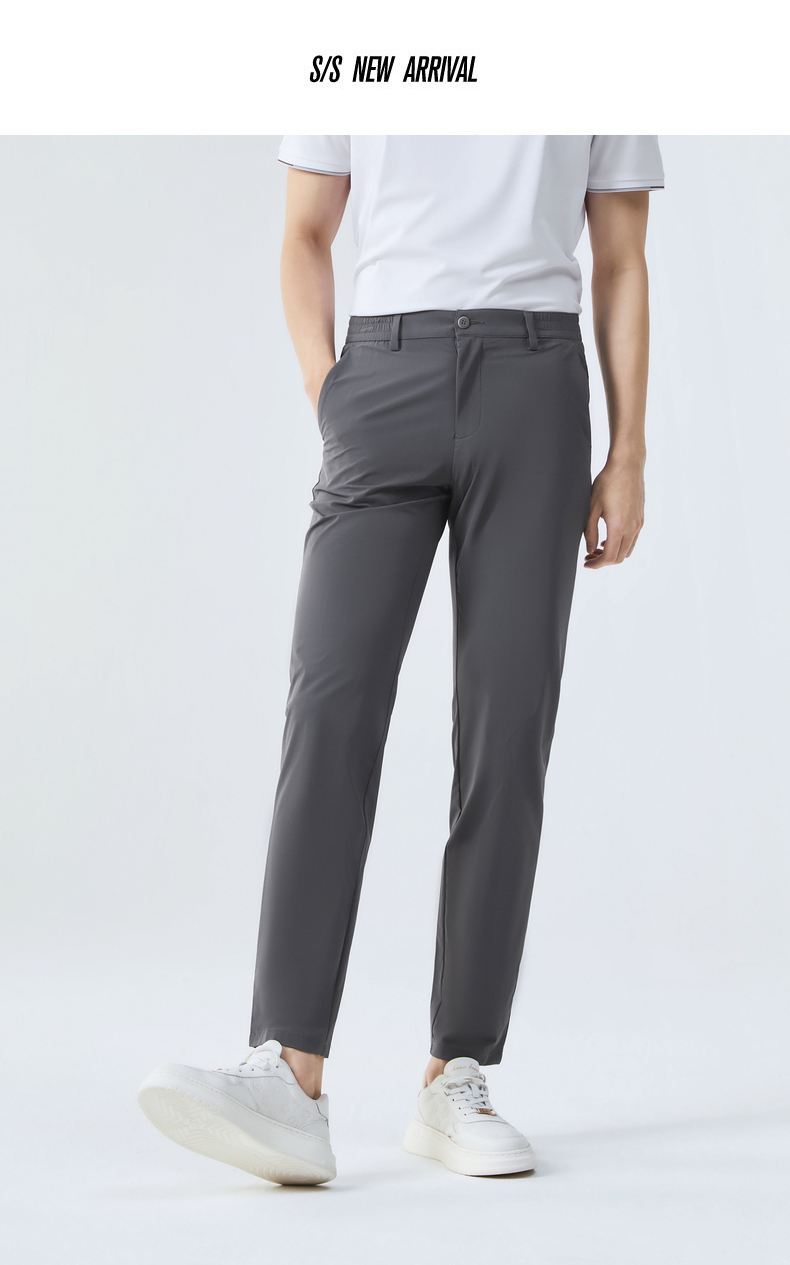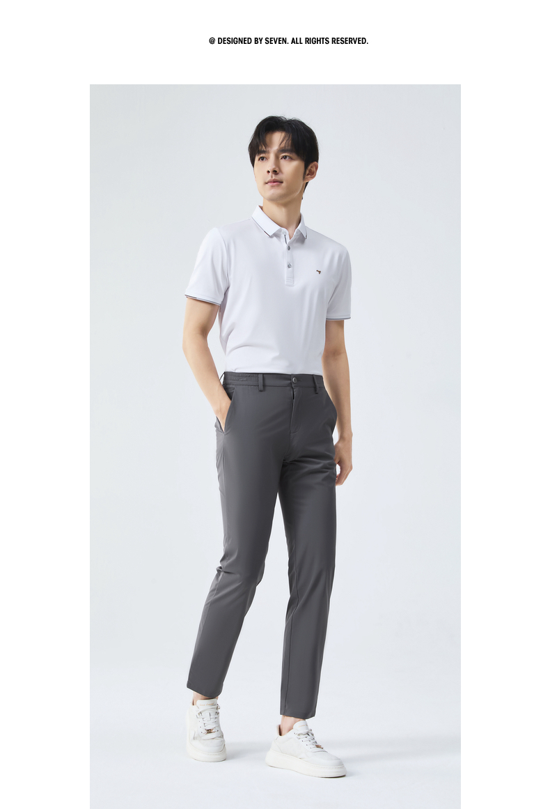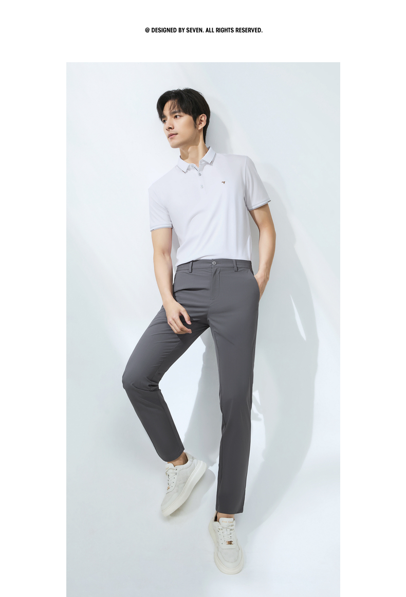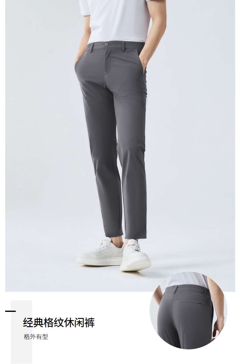 柒牌锦氨格纹休闲裤男士2025春季新款时尚百搭半松紧腰直筒长裤子128H71260