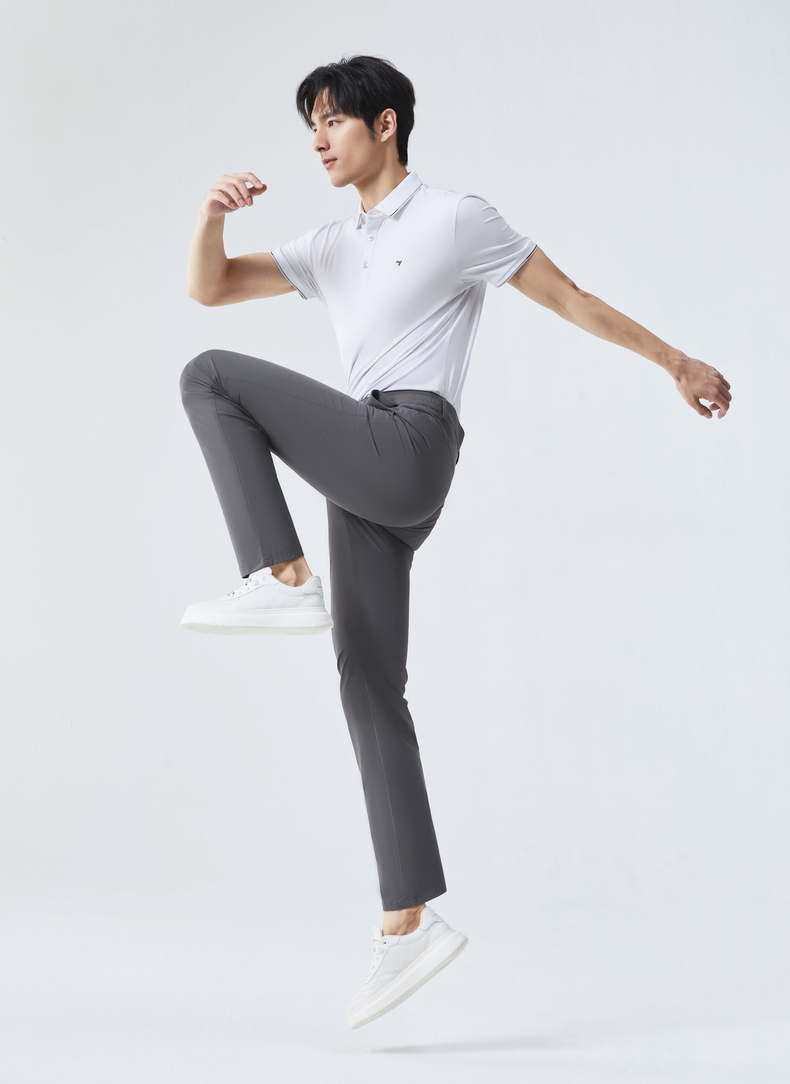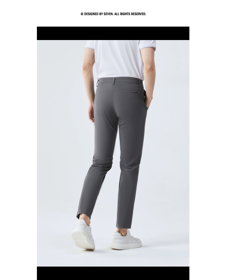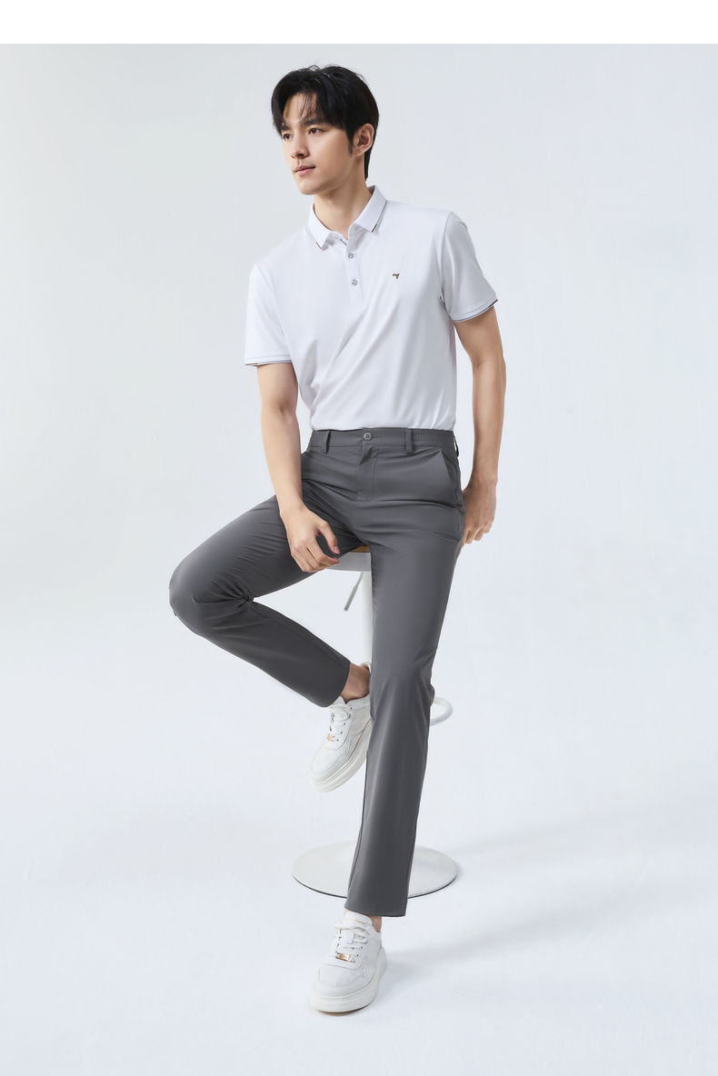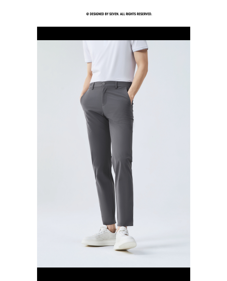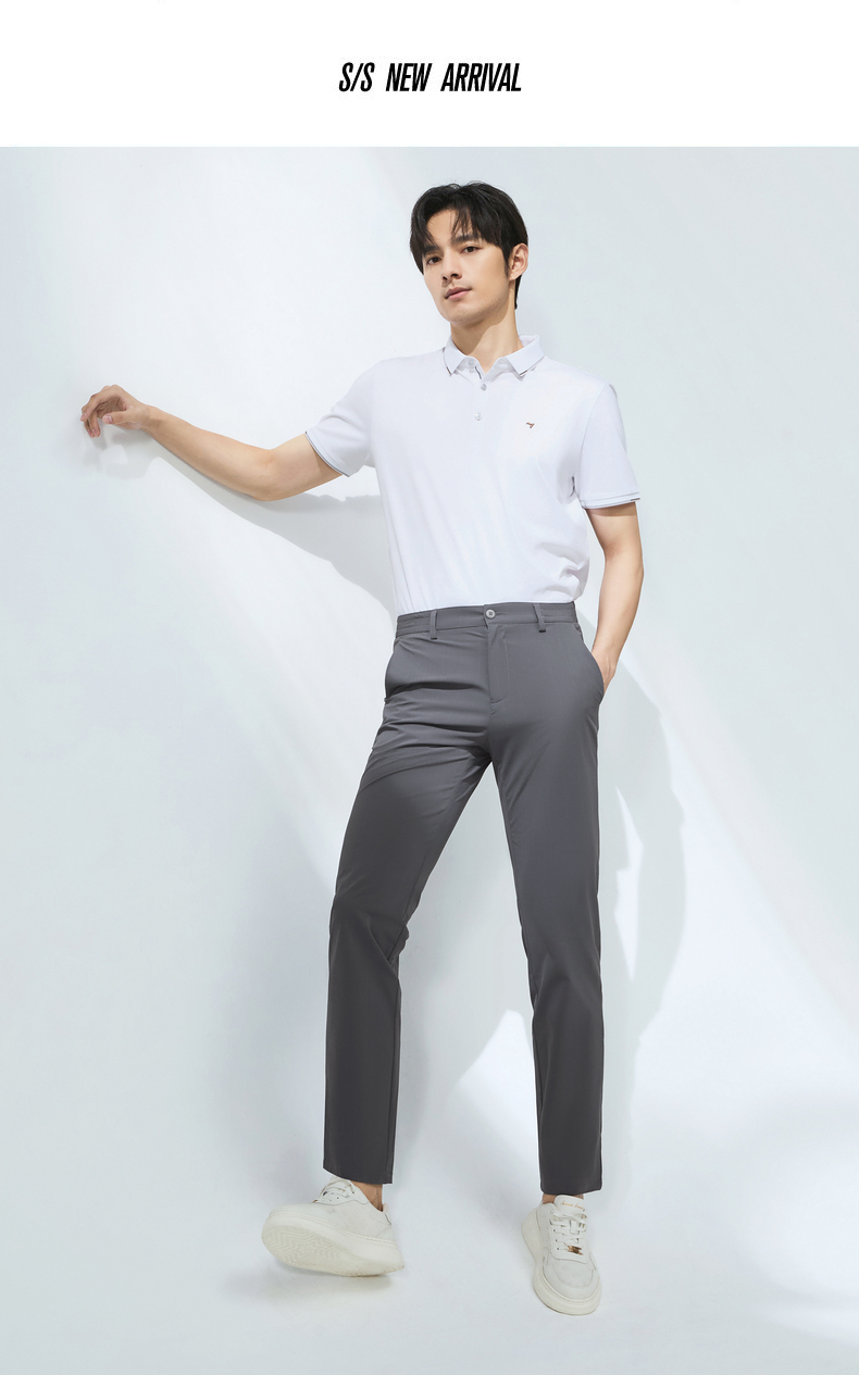 柒牌锦氨格纹休闲裤男士2025春季新款时尚百搭半松紧腰直筒长裤子128H71260