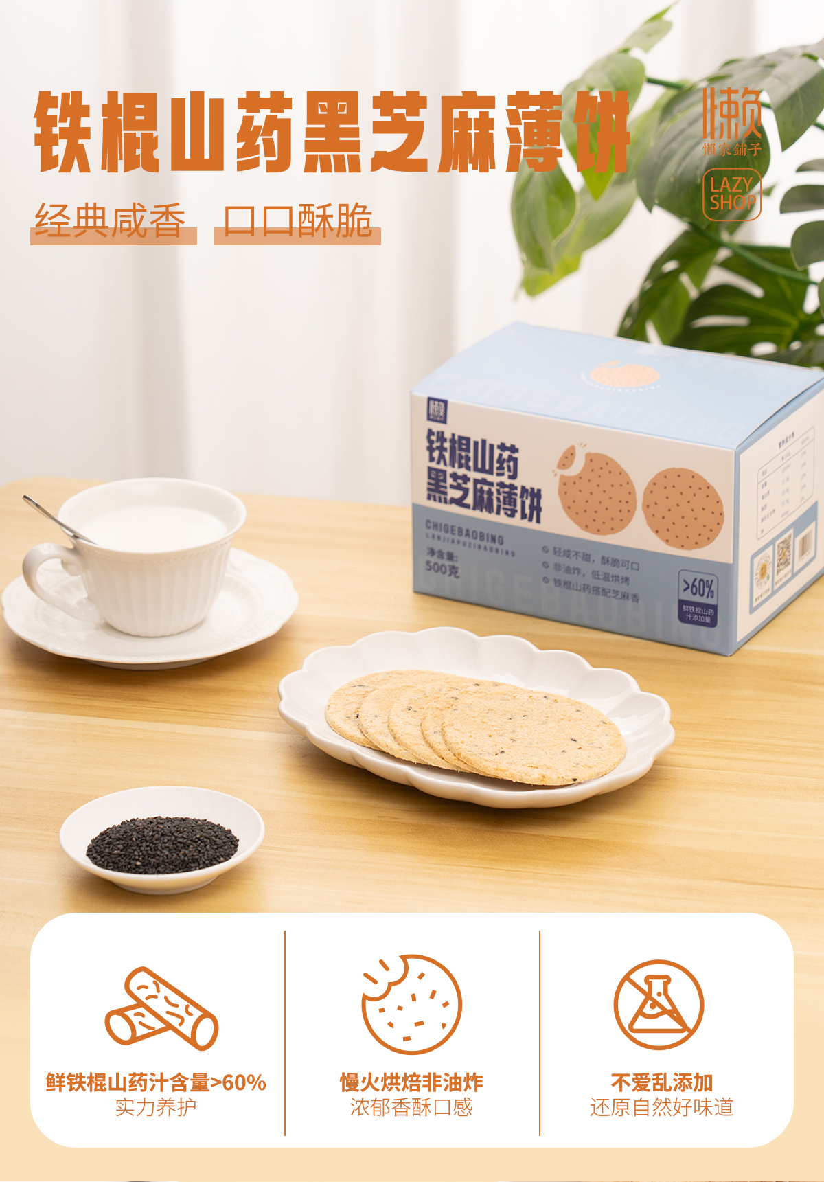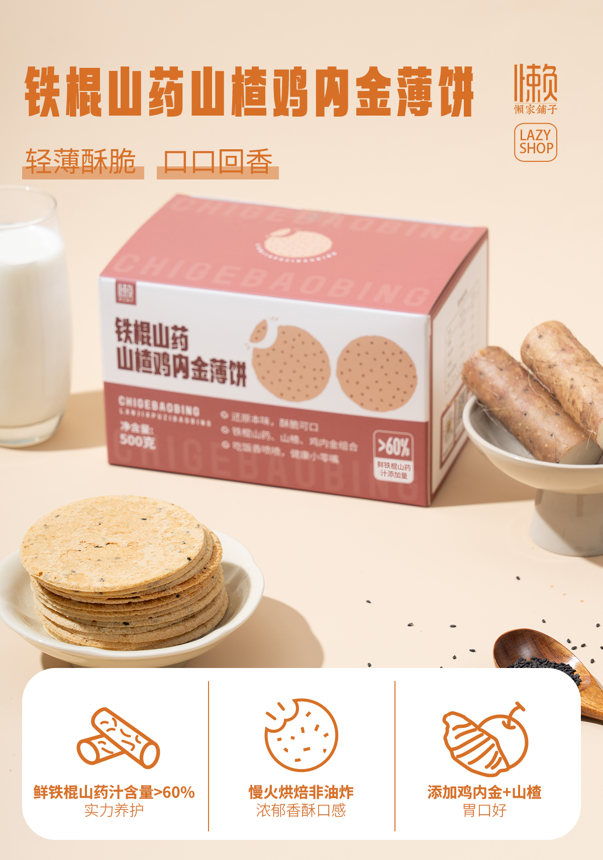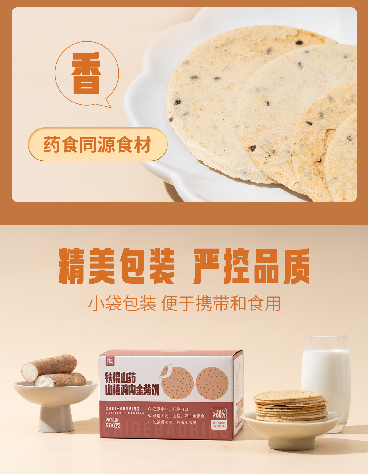【铁棍山药薄饼】 两种口味(山药黑芝麻&山楂鸡内金茯苓)鲜铁棍山药汁(含量>60%)