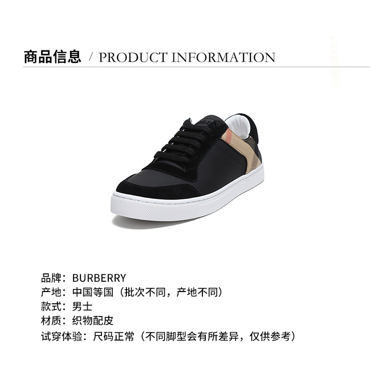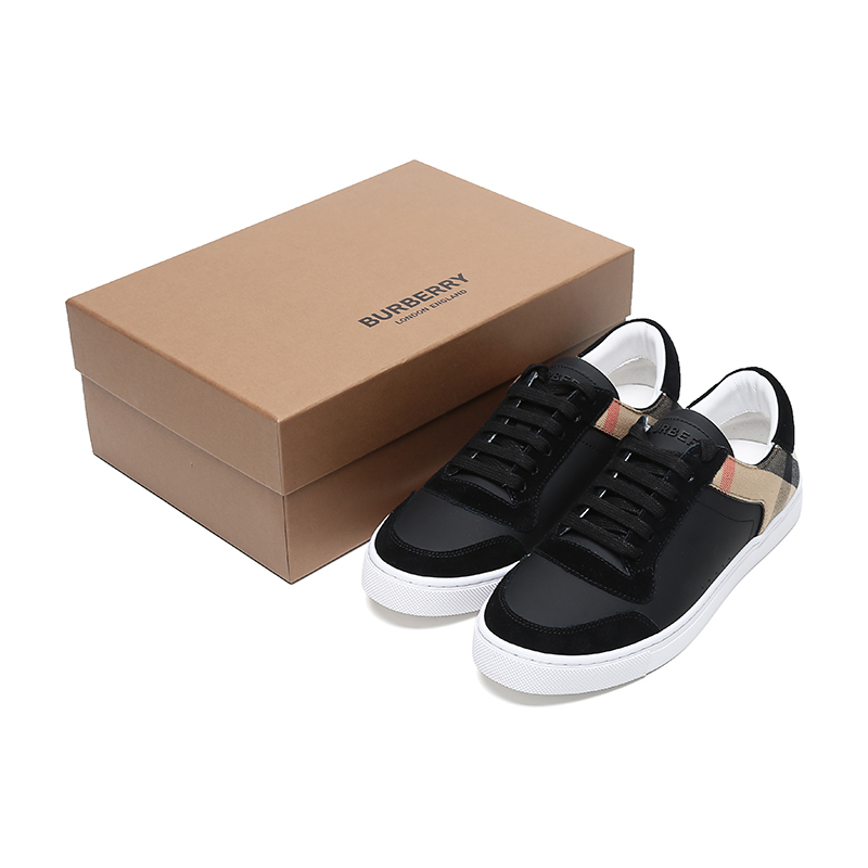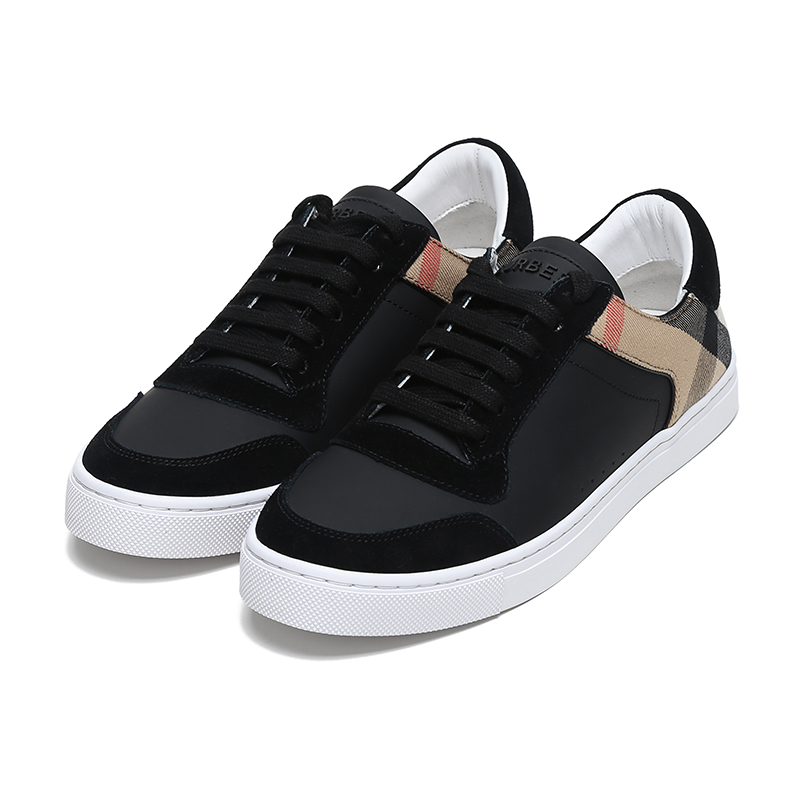 BURBERRY/博柏利 男款黑色House格纹织物配皮系带休闲运动鞋板鞋 80241241