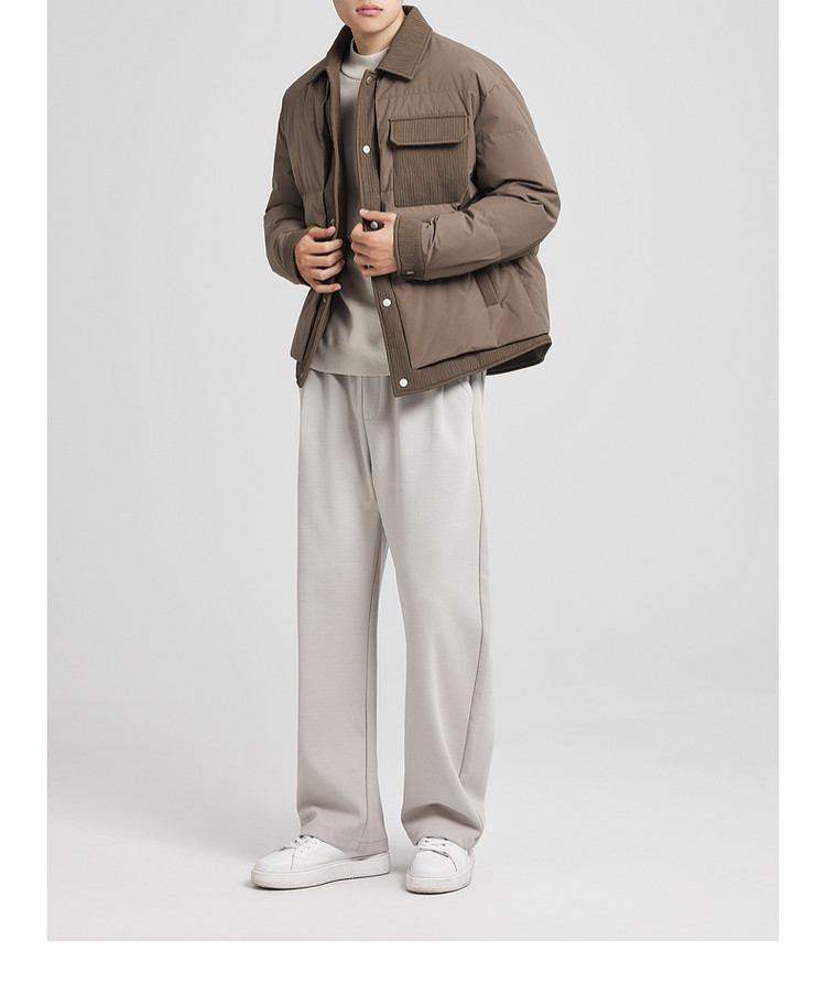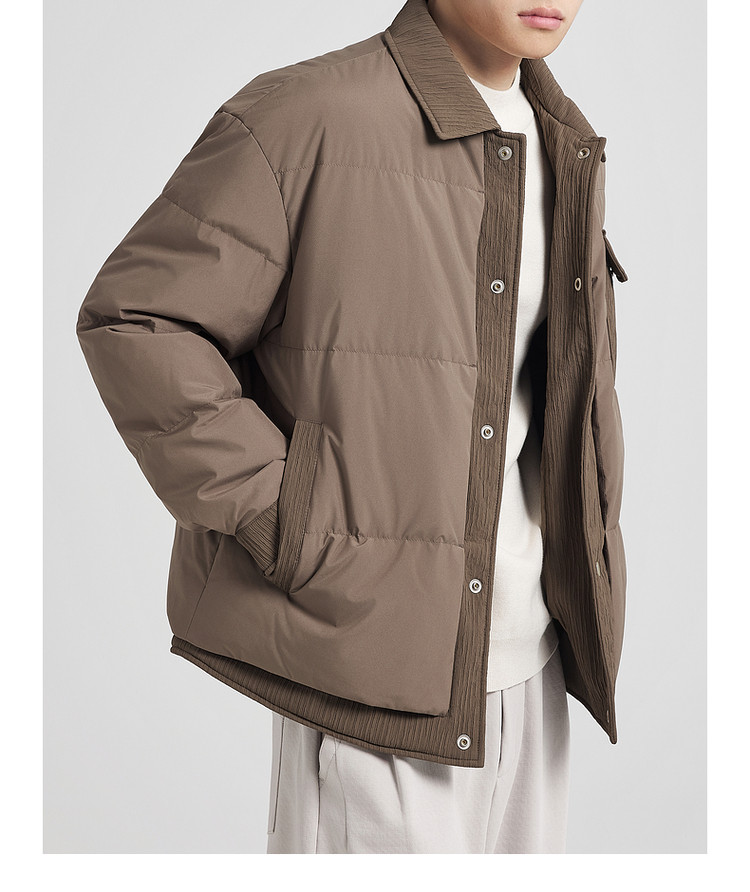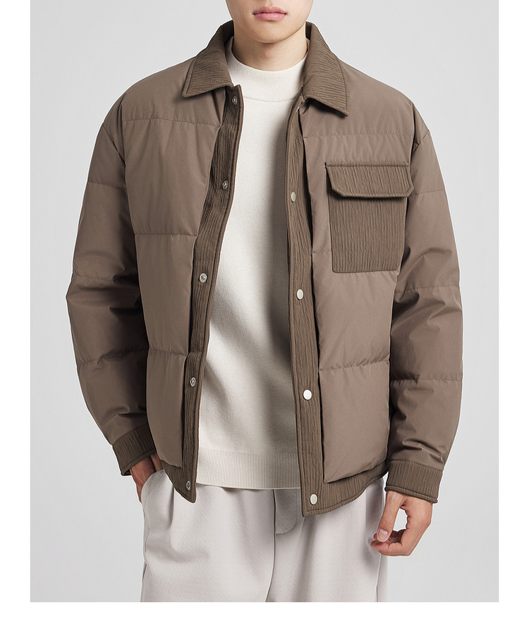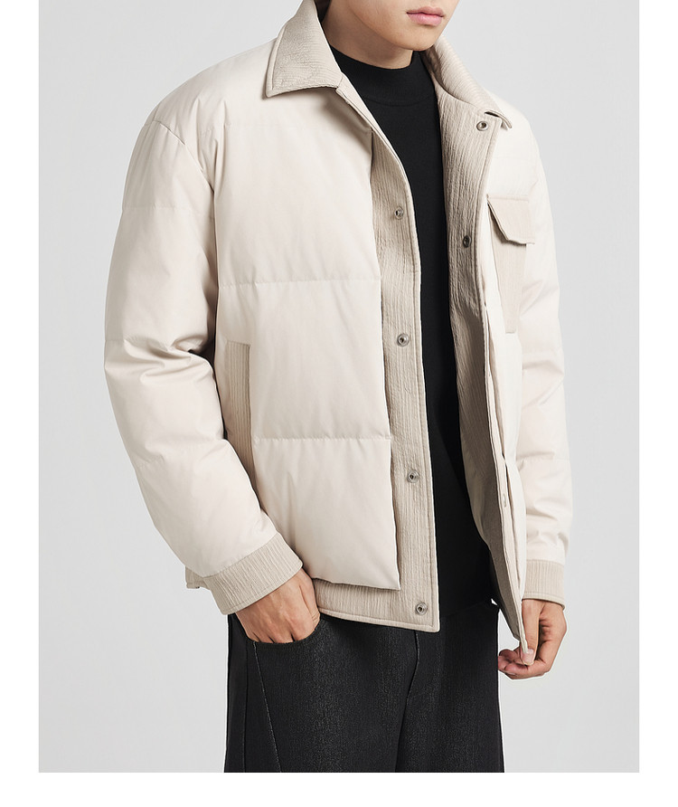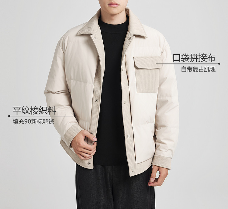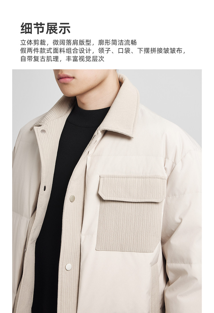 墨麦客男装假两件翻领羽绒服男2025冬季新款宽松休闲保暖外套男士