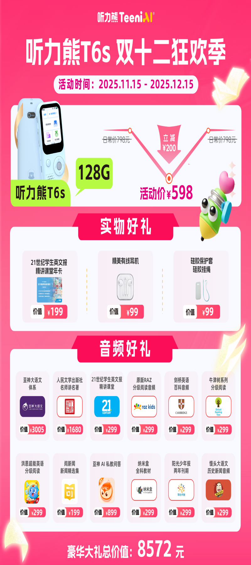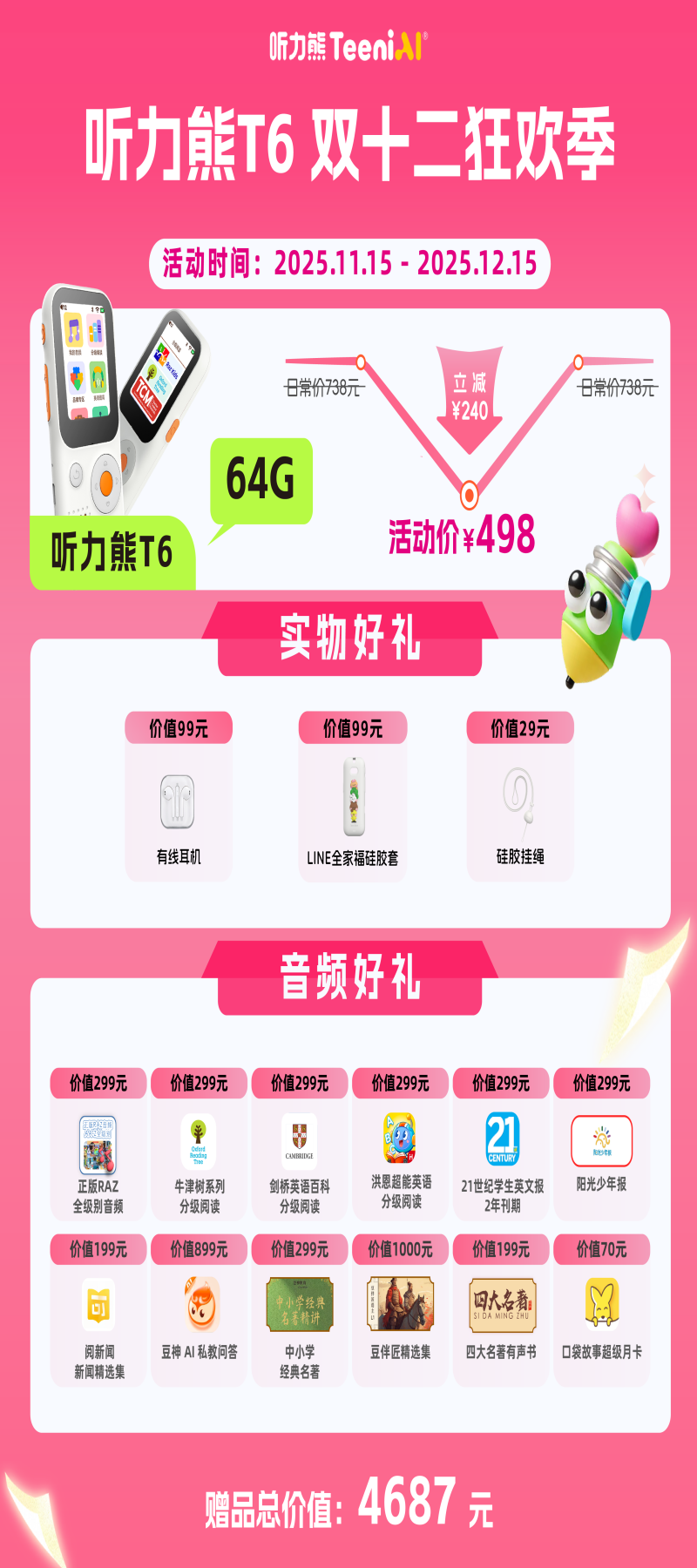 听力熊AI智能听力机T6AI技术帮助孩子自主学习,认识、探索世界 T6|T6s 【专属链接】