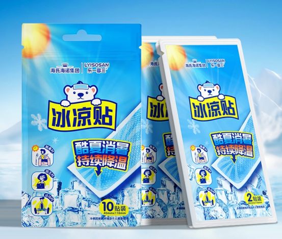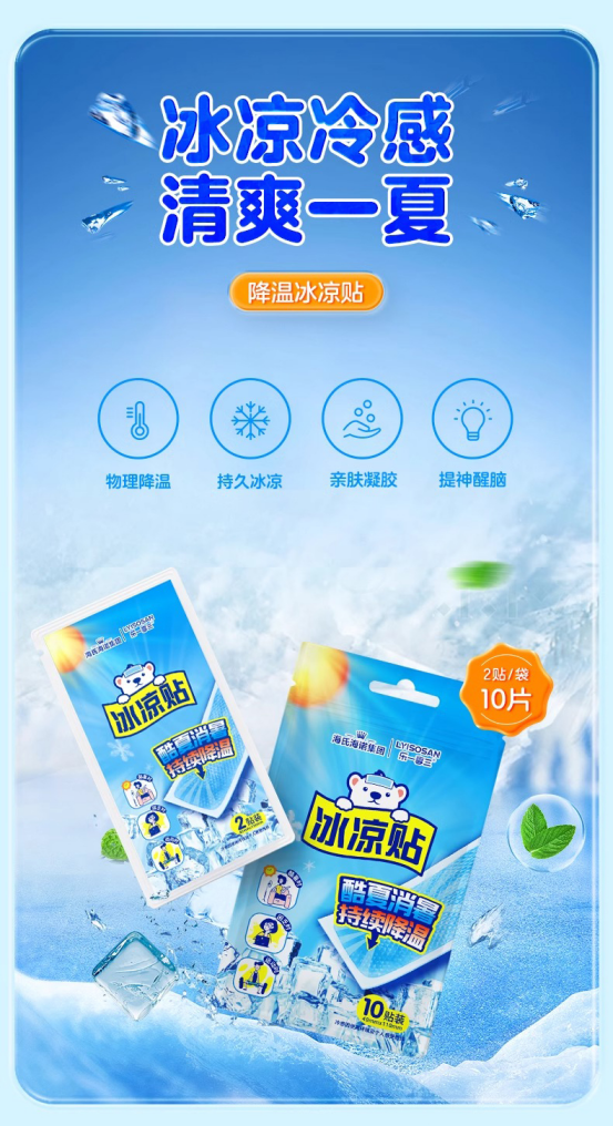「海氏海诺冰凉贴」行走的退烧贴 酷夏来一贴 一贴降温 全天元气状态拉满 3秒深层降温清凉 亲水性高分子凝胶 有效吸收热度 温和不刺激 冰爽8小时 医用品质 不过敏 不会掉 不留胶 不再热 小身材 大作用