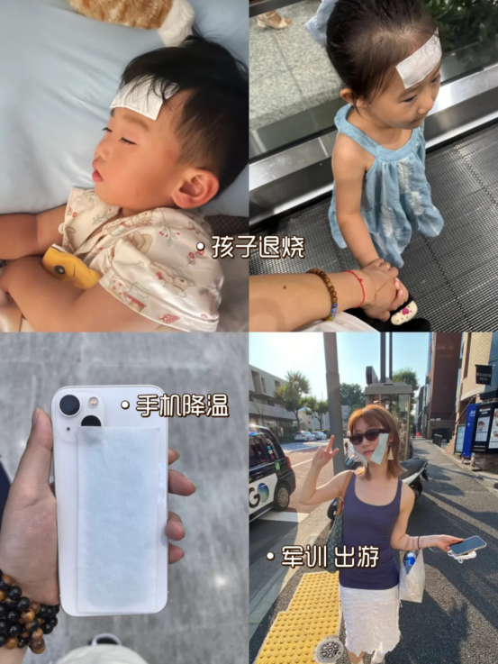 一贴多用 多人群 多场景 多用途 哪里热 贴哪里 全家都适用 肉团亲肤 粘度适中 不掉胶 粘的牢 不刺激娇嫩肌肤 睡梦中翻身也不易掉落 宝宝发烧再也不用成宿看护了
