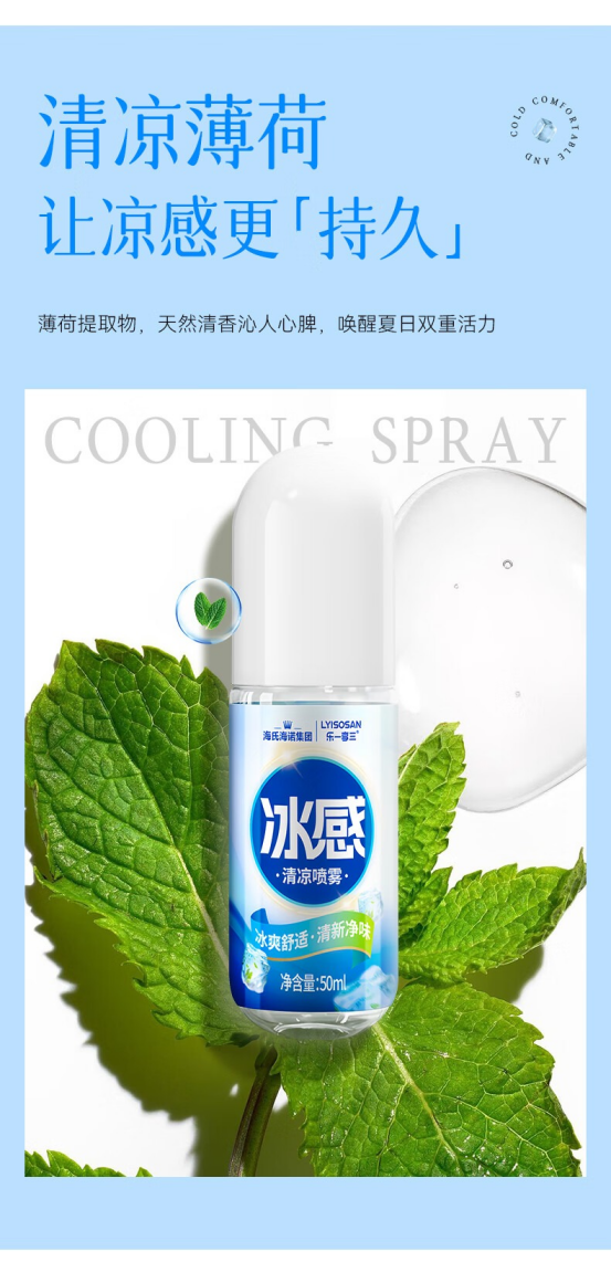 海氏海诺清凉喷雾 清透细雾凉感 冰感舒适 不惧高温燥热 植物薄荷因子 清凉肤感的同时 还能瓦解汗臭 清新薄荷清香清香怡人