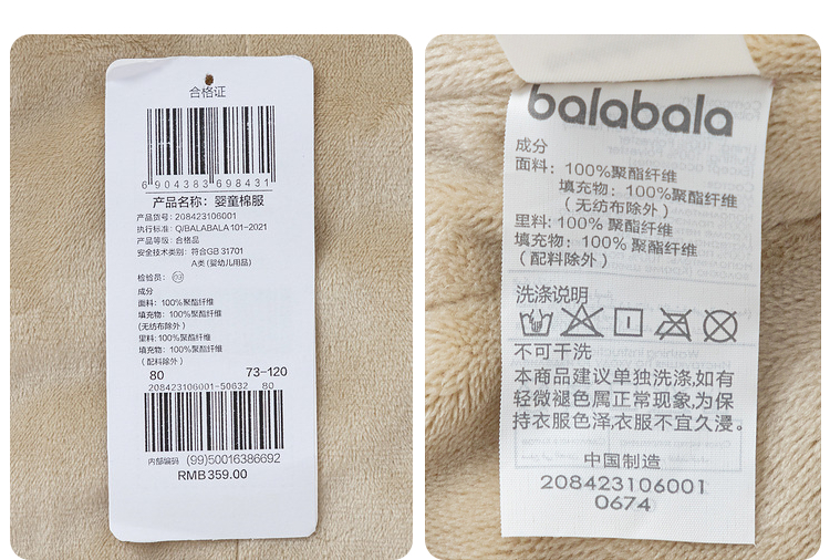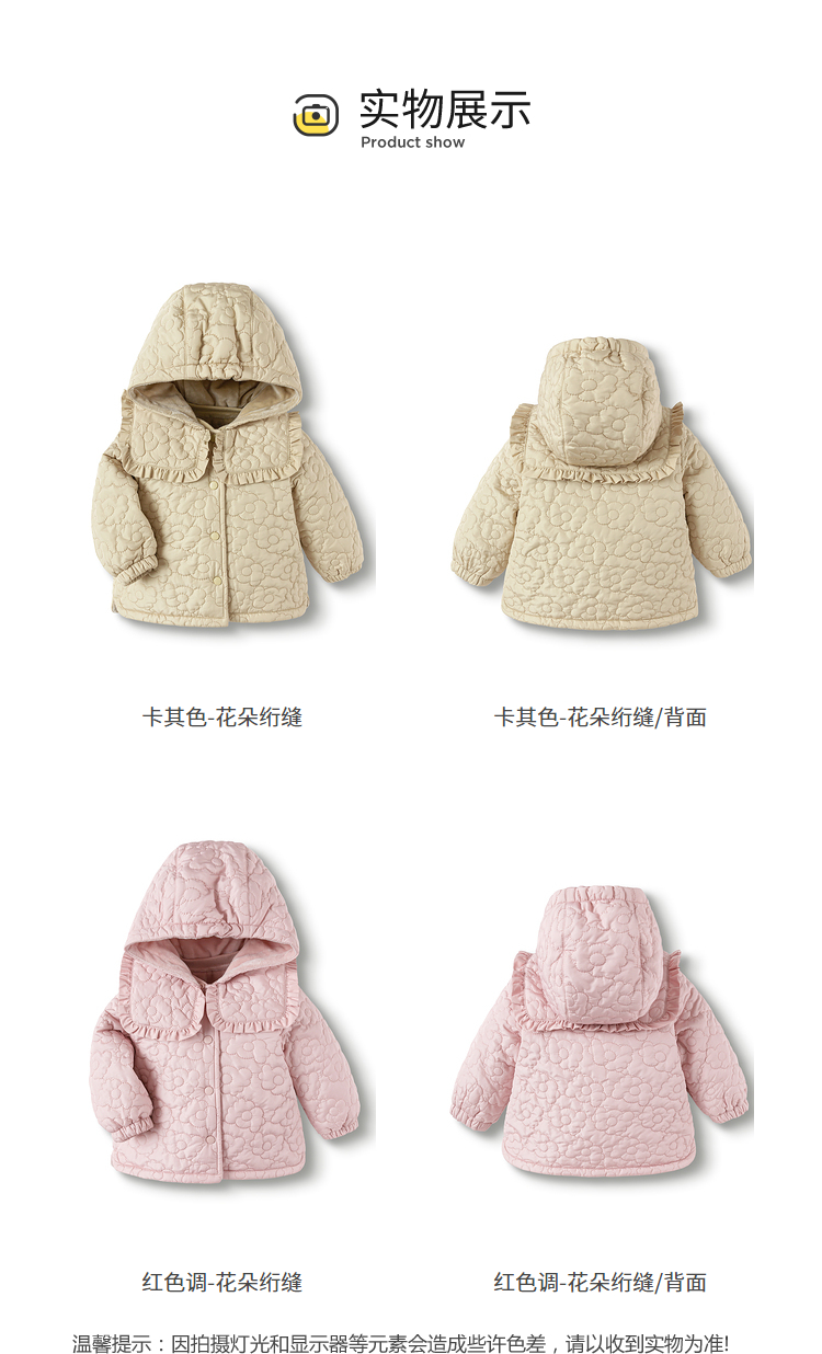 巴拉巴拉儿童棉服新款婴儿棉袄冬装保暖女童棉衣保暖甜美法式