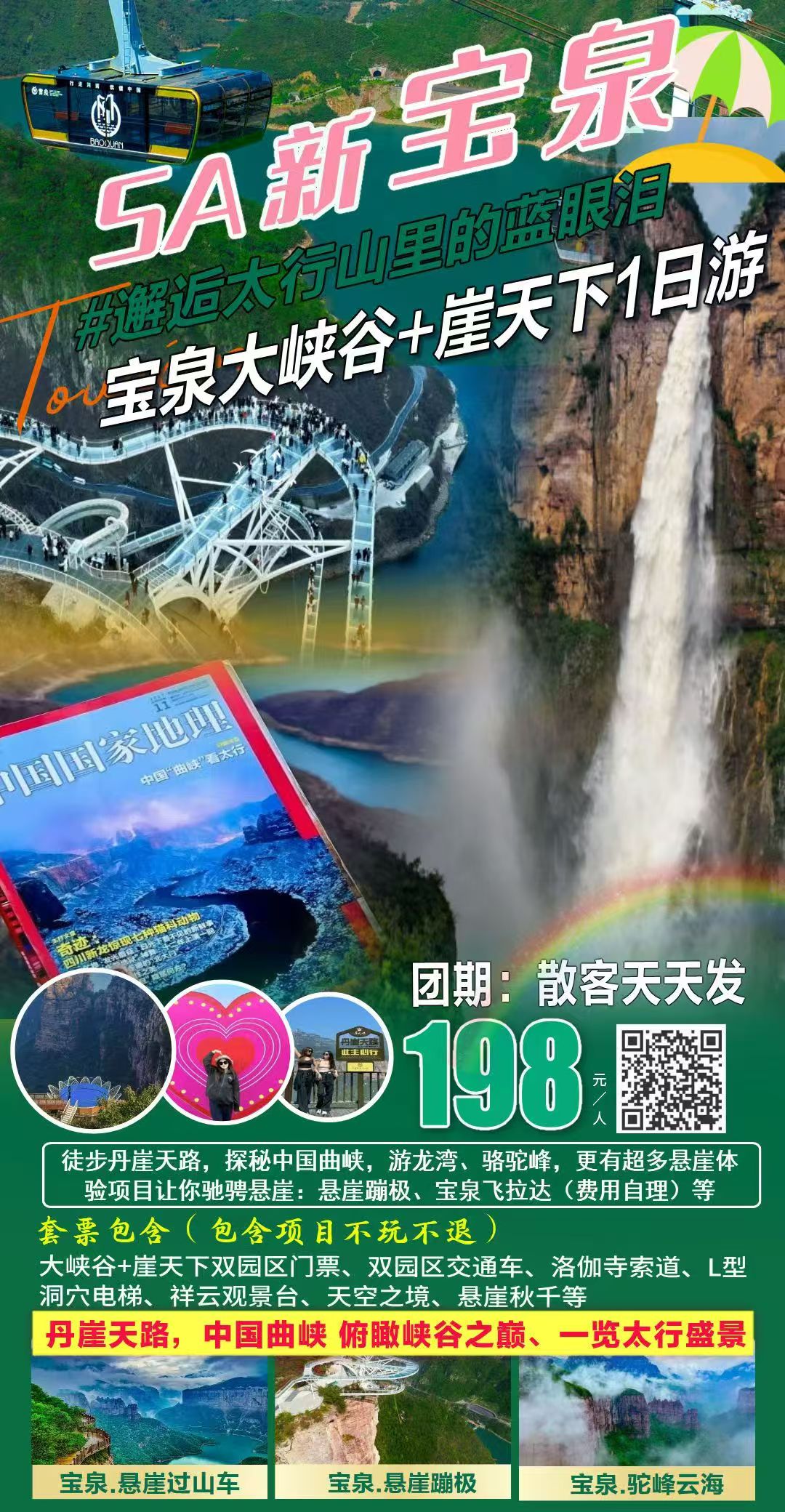 宝泉大峡谷+崖天下一日游
