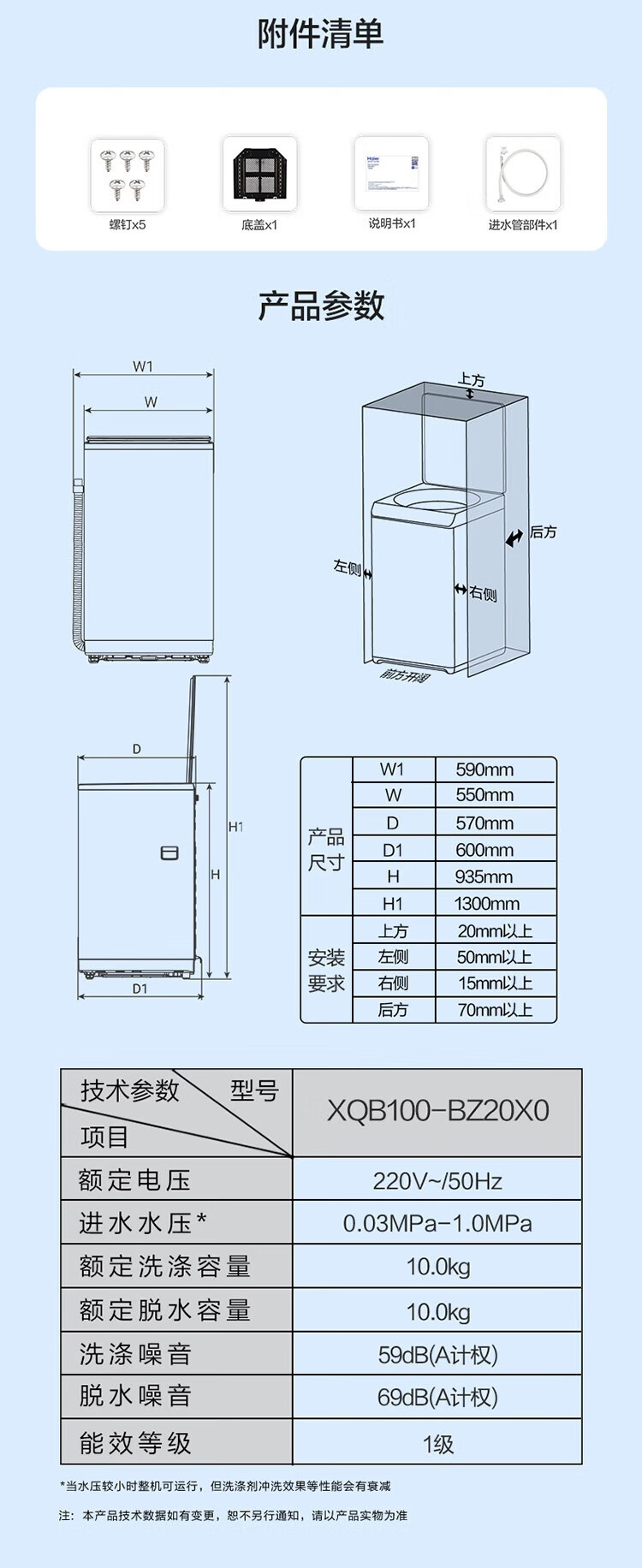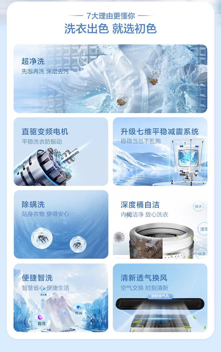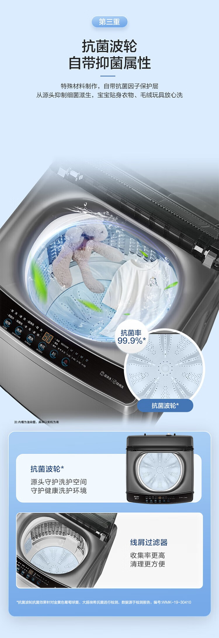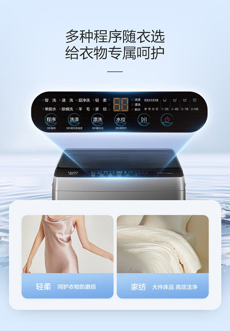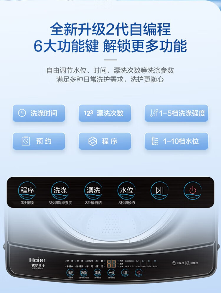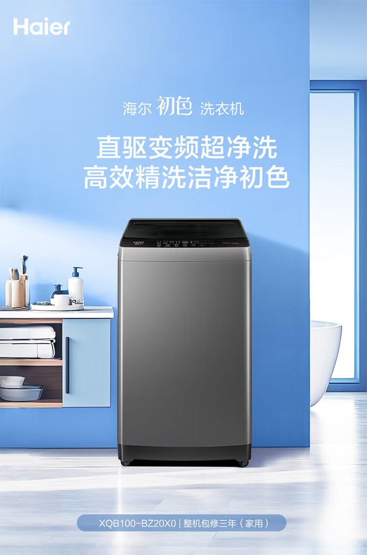 海尔(Haier)波轮洗衣机10公斤全自动大容量变频一级直驱电机+七维减震+超净洗XQB100-BZ20X0