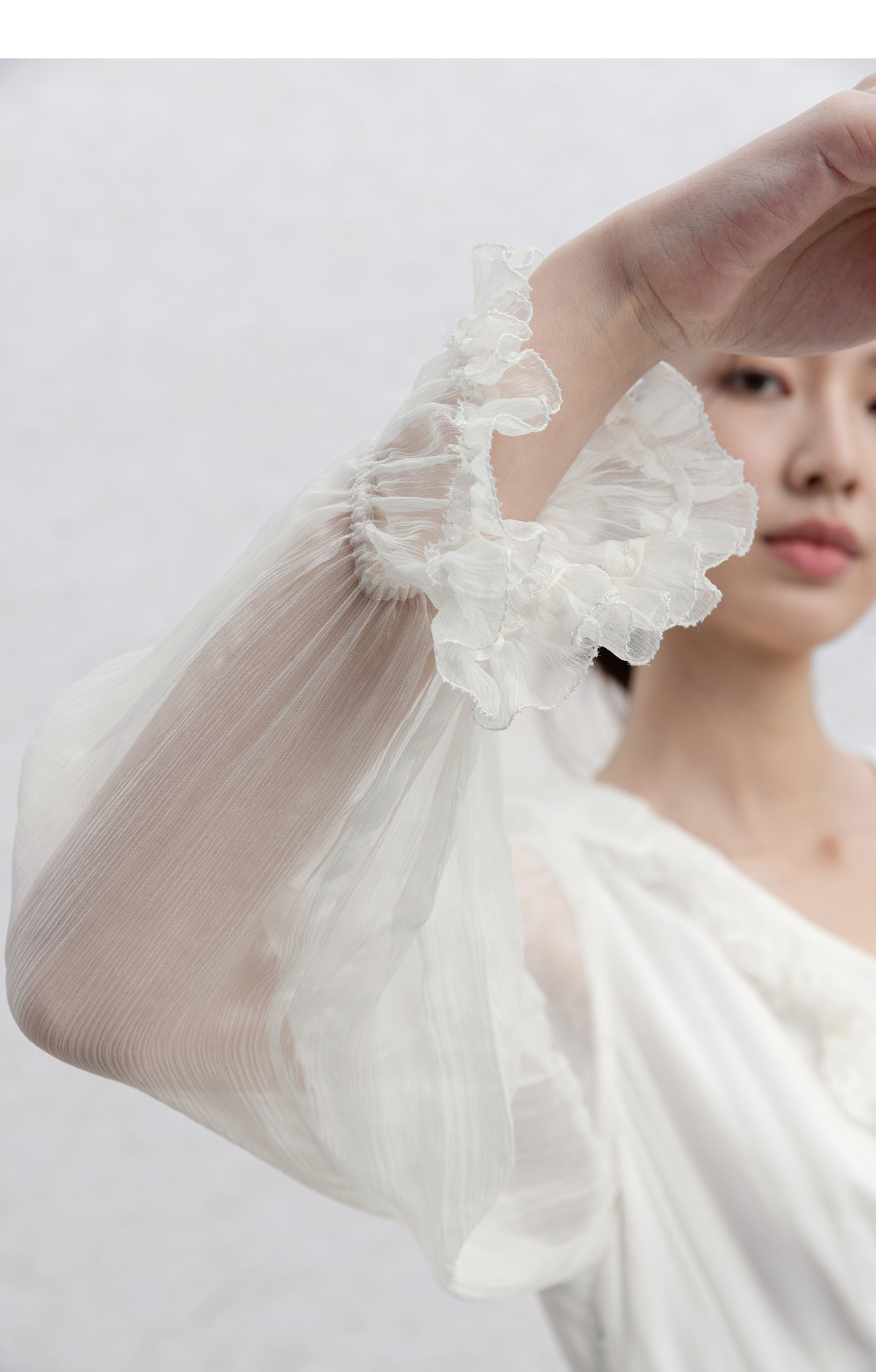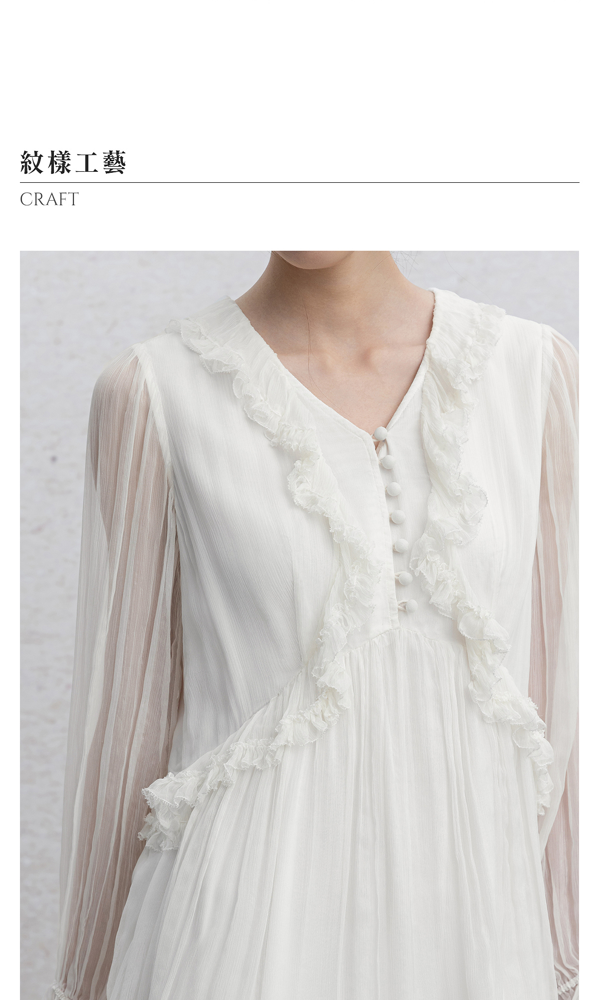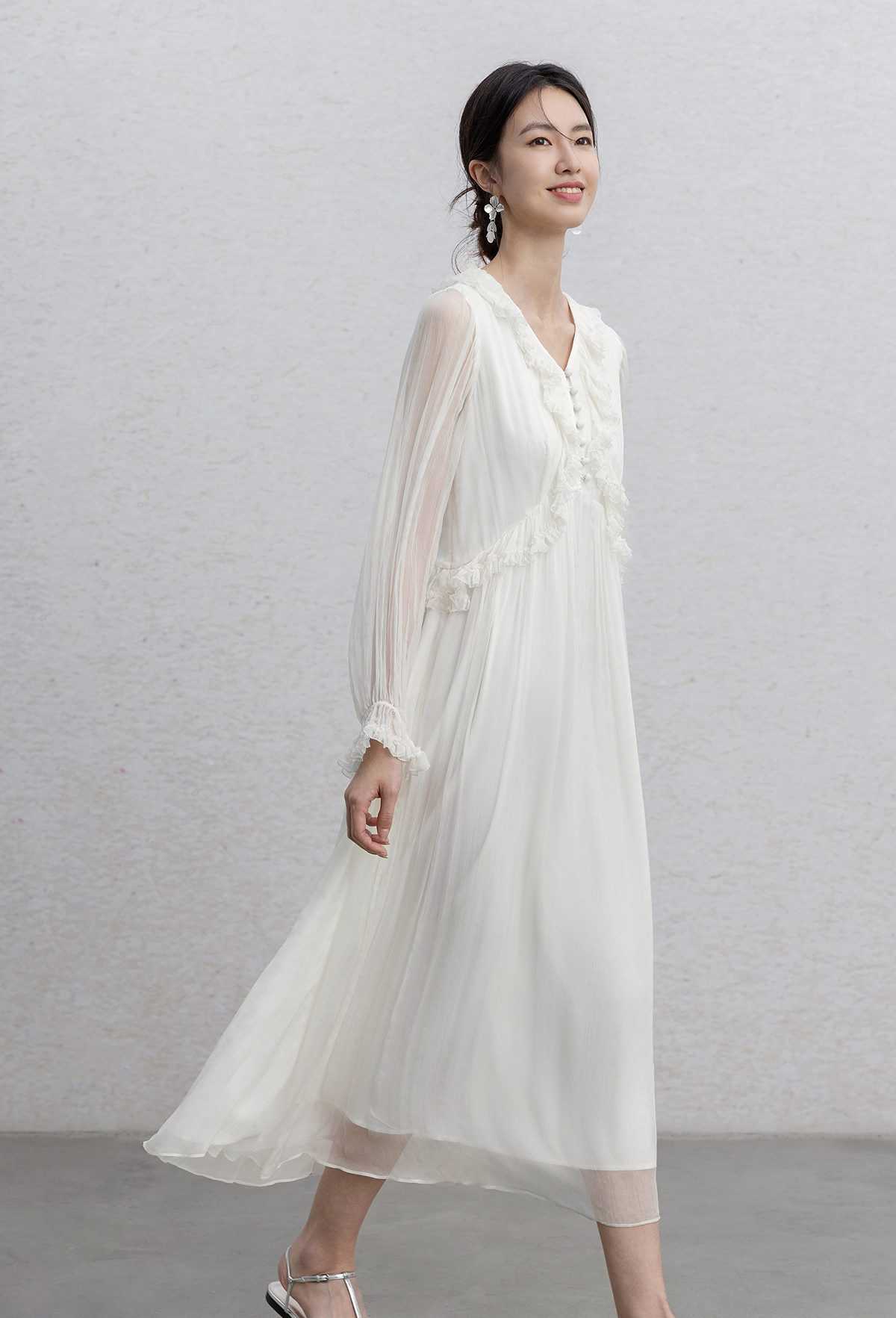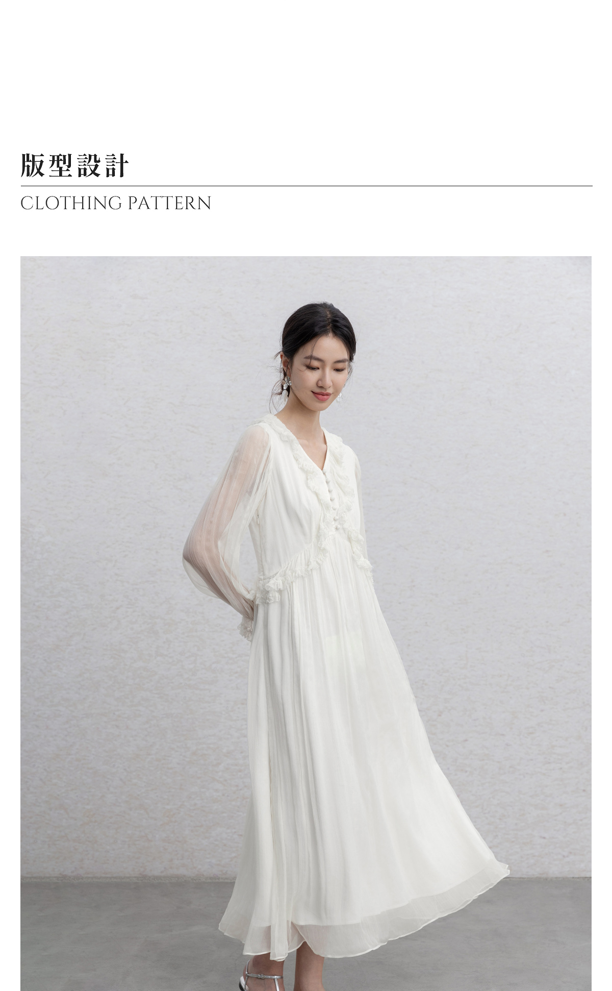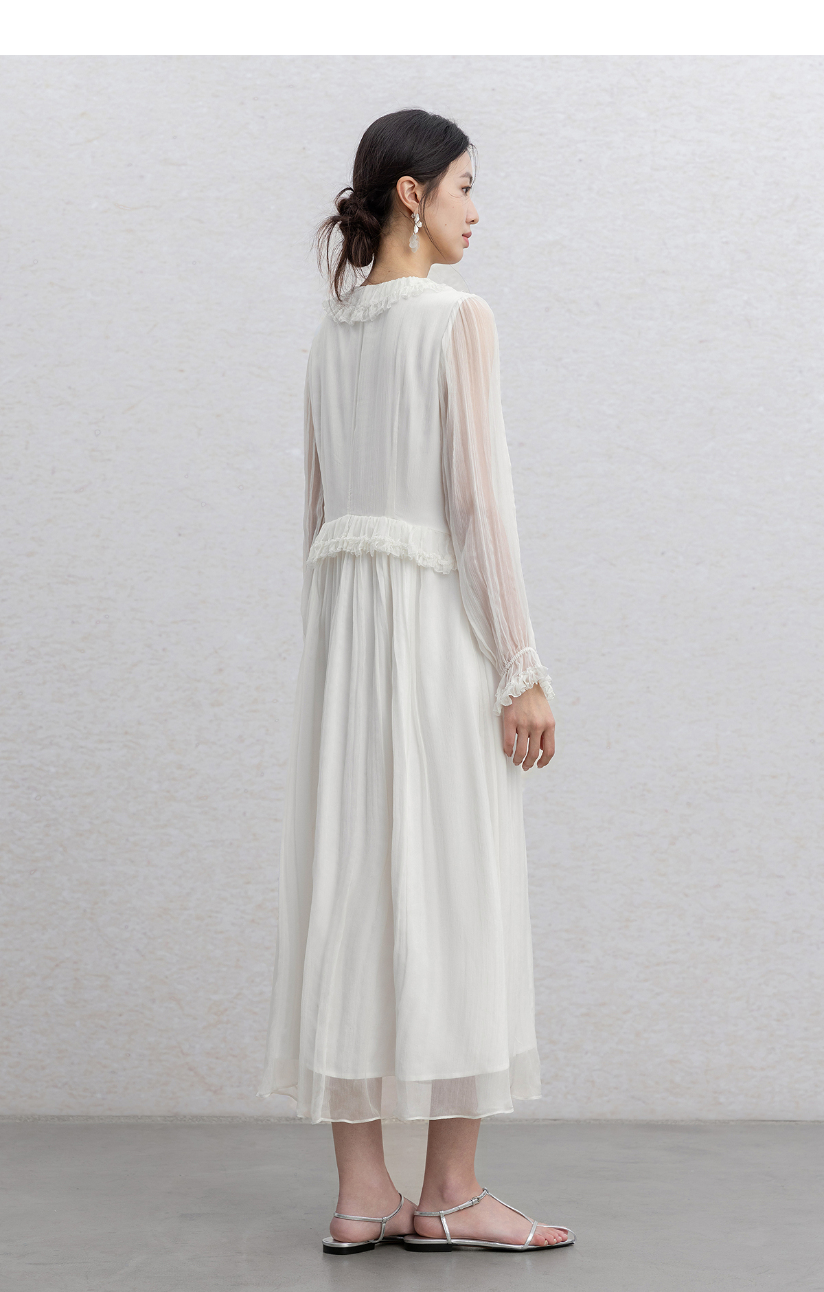 【林栖设计小店】蕾丝花边桑蚕丝牙签褶高腰仙气2026春新款真丝连衣裙1961033