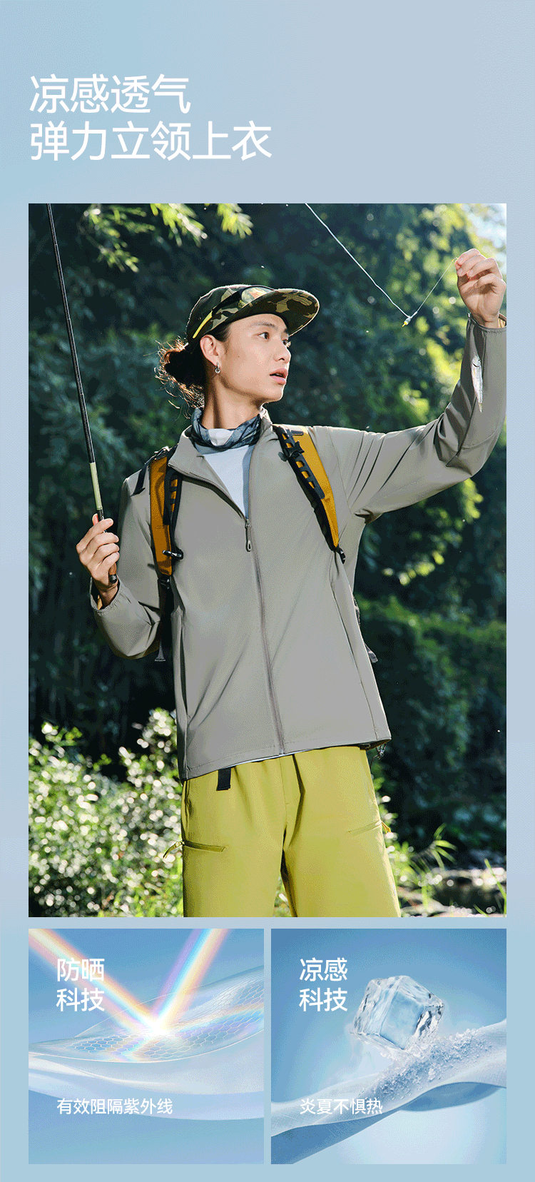 防晒外套|森马夹克男夏季弹力立领上衣2026新款凉感反光印花外服