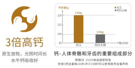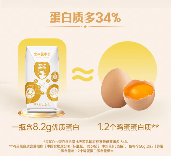 卖点陈列 水牛奶专业户:左江品牌成立于2004年,18年来一直专注水牛奶的生产与加工。 配料表比啥都干净:0添加,配料表只有生水牛乳、生牛乳;纯水牛乳脂肪过高宝宝不易吸收,通过科学研发,将生水牛乳与生牛乳经过配比,有效降低脂肪同时保留了高营养。加倍营养,助力成长。 3.9g每百毫升的蛋白质,130mg每百毫升的钙含量。 水牛奶味道更佳🥰:水牛奶在口感上就甩其他奶一大截了,左江水牛纯牛奶,味道更是一绝,顺滑、细腻、鲜美,每一口都像在吃化掉的冰淇淋,口感特别棒。从此宝宝爱上了喝牛奶 水牛奶营养价值更高🥰:1公斤水牛奶所含营养价值相当于1.85公斤黑白花牛奶。钙、铁、锌、维生素含量,都远超普通牛奶,矿物质和维生素含量也是普通牛奶和人乳的数十倍,可谓是“奶中极品”! 吃法更多样🥰:直接水牛奶冻一冻,就可以得到一块货真价值、甜而不腻的奶砖冰淇淋!
