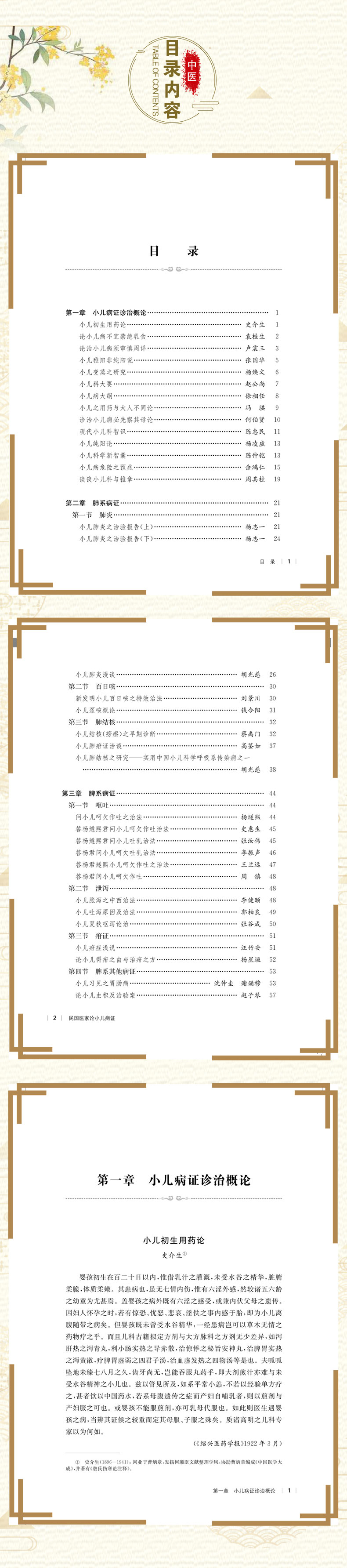 本书以《近代中医药期刊汇编》为搜集整理对象,将期刊中与小儿病证相关的文章进行了系统梳理,并进行了适当筛选,筛选原则主要秉承学术性、时代性、对现代临床具有参考性的原则,选定具有代表性的文章78篇,并根据内容将文章分别归类于小儿病证诊治概论、肺系病证、脾系病证、心肝系病证、肾系病证、小儿杂病、小儿调护等七章。其中小儿病证诊治概论篇章,论述涉及小儿疾病诊治总体概述、小儿用药、小儿生理知识等等多方面内容。肺系病证、脾系病证、心肝系病证、肾系病证、小儿杂病各章按病种分类。肺系病证篇章,主要包括肺炎、百日咳、肺结核等病证。脾系病证篇章,主要包括呕吐、泄泻、疳证、脾系其他病证等。心肝系病证篇章,主要包括惊风和夜啼等病证。肾系病证篇章,主要包括遗尿和小儿软骨病等病证。小儿杂病收录范围较广,涵盖痧症、麻疹、痘疹、疮疡、腺病、疝症、痄腮、牙风等各类病证。小儿调护对儿童健康有重要作用,因此将民国医家在小儿调护方面的文章收录在小儿调护章中。以供大家了解学习民国时期中医儿科的学术观点、学术经验。 本书可供中医儿科医生或对中医儿科感兴趣的读者阅读参考。