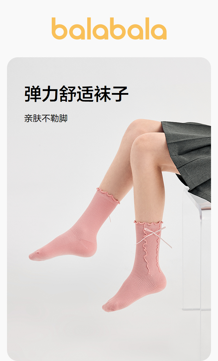 【商场同款】巴拉巴拉女童袜子秋季新品儿童短袜蝴蝶结甜美两双装