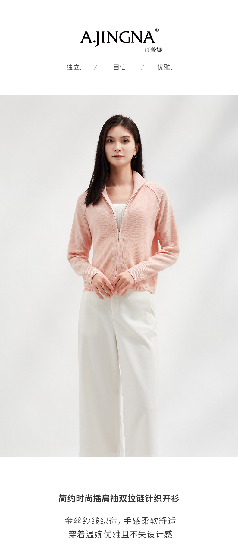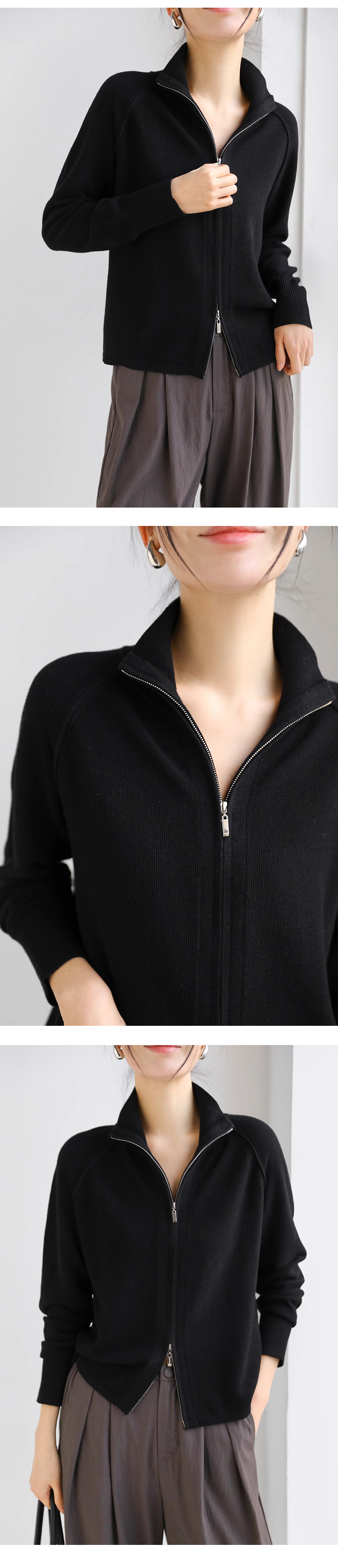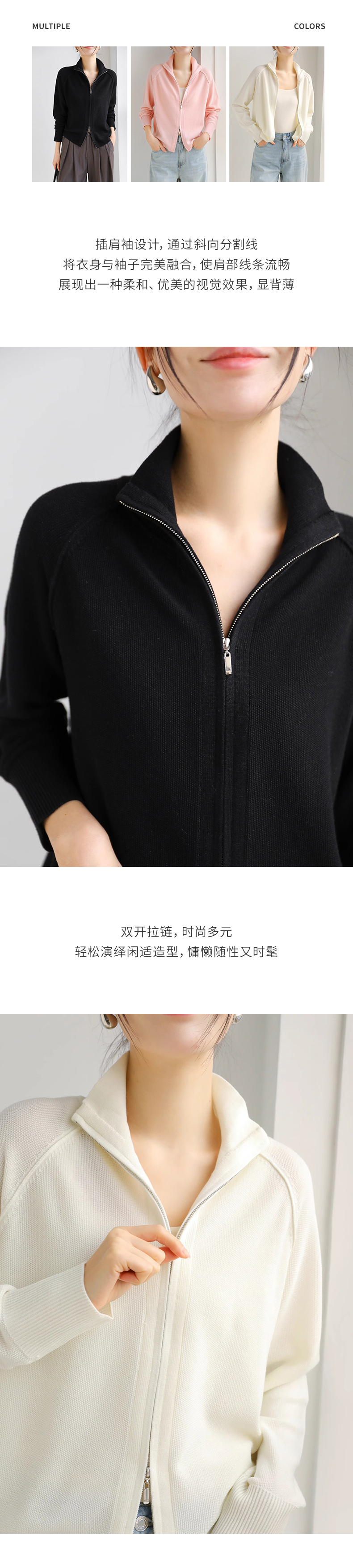 【温婉优雅】阿菁娜简约时尚插肩袖双拉链针织开衫F30C318017
