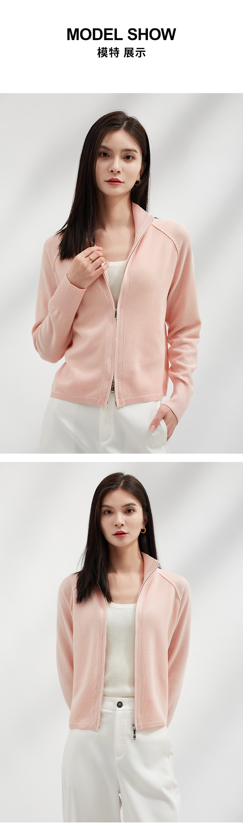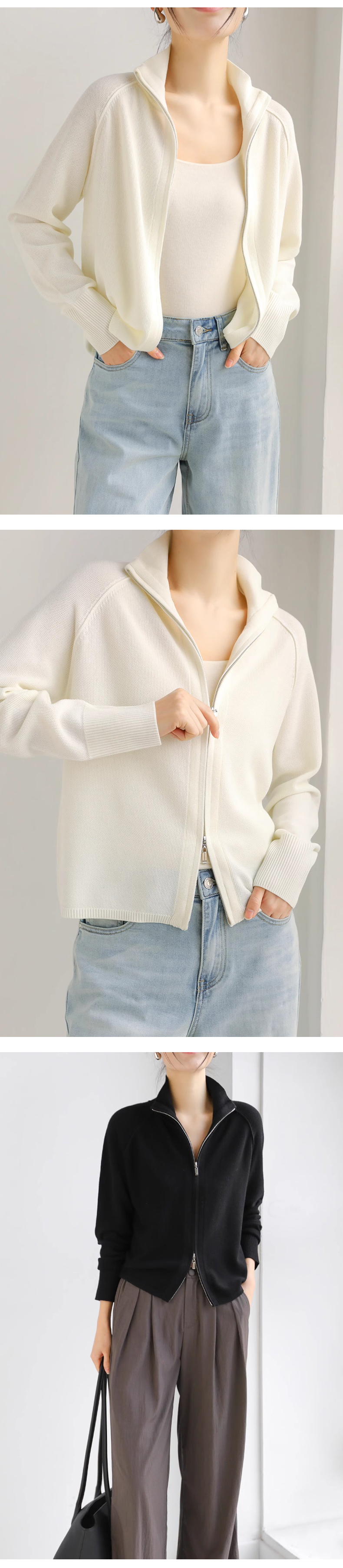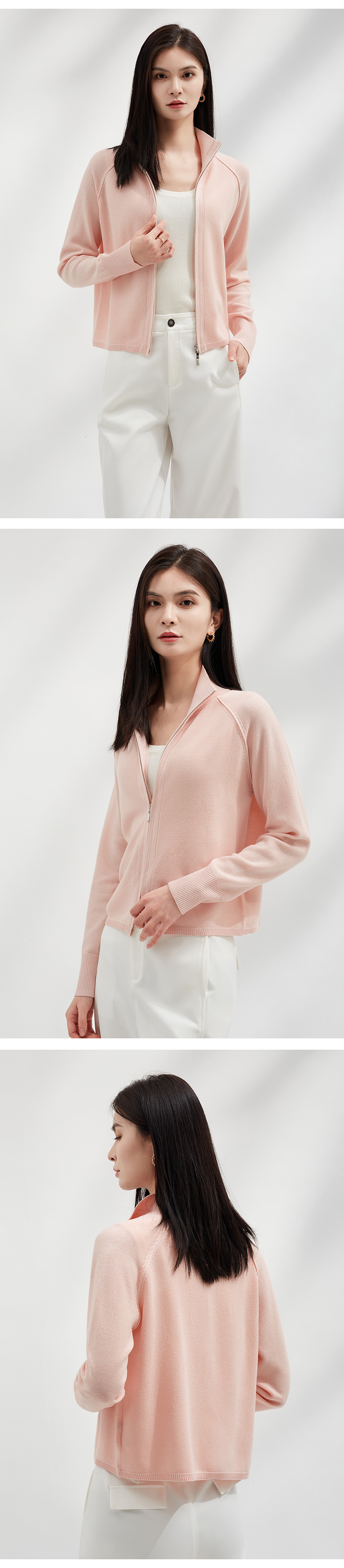【温婉优雅】阿菁娜简约时尚插肩袖双拉链针织开衫F30C318017