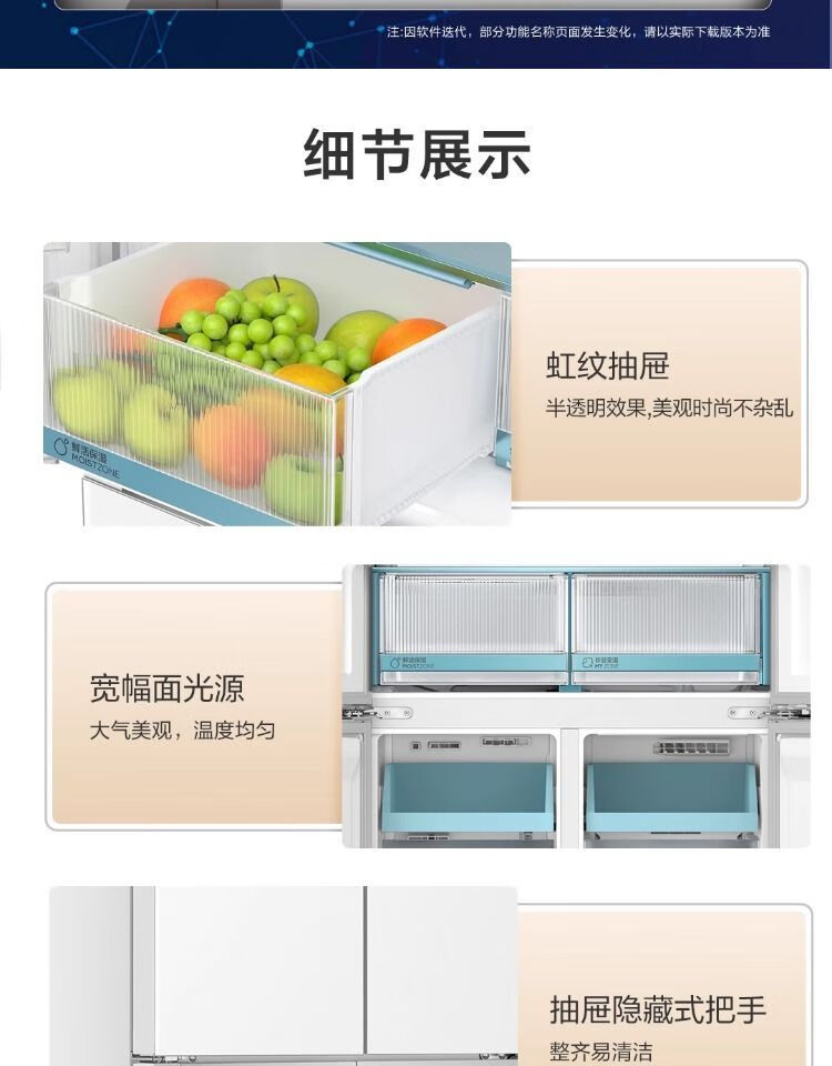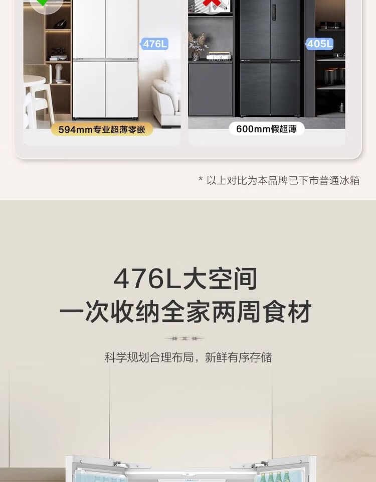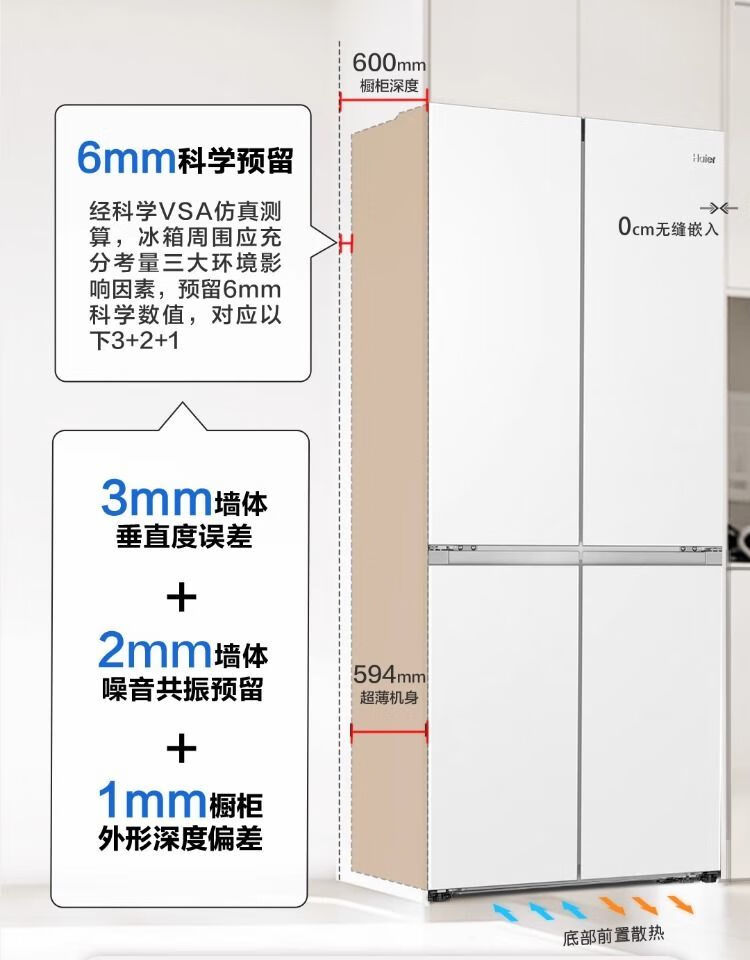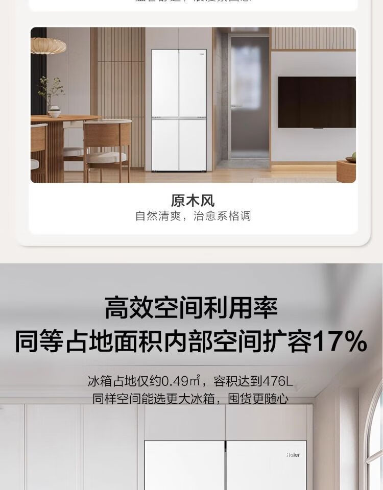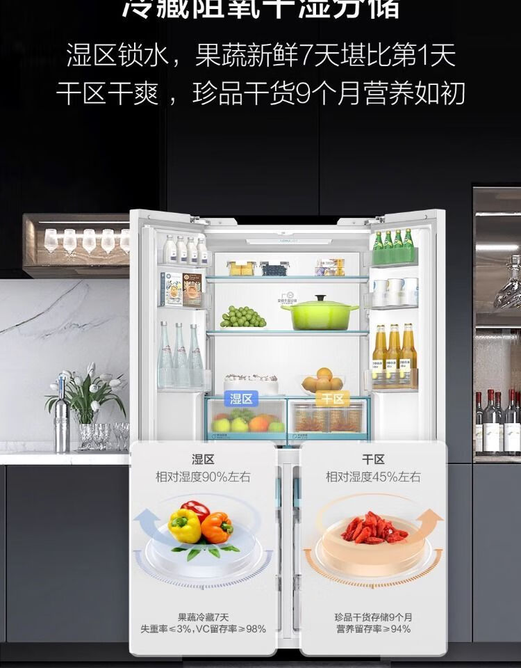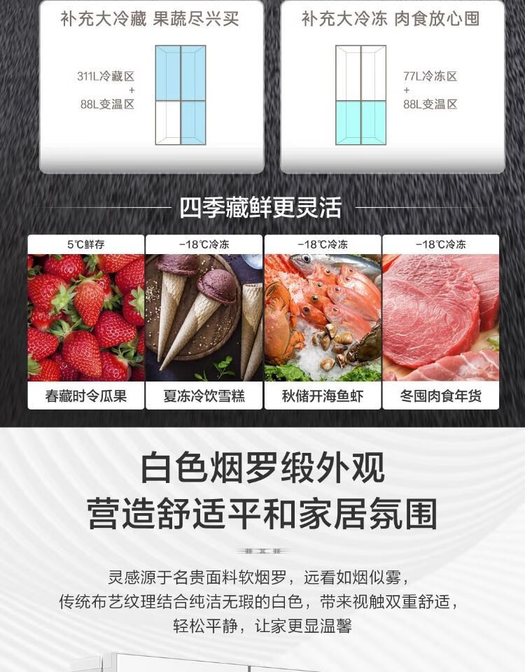海尔476升十字对开门四门干湿分储一级双变频风冷无霜宽幅变温EPP超净家用冰箱 BCD-476WGHTDB9W1U1玻璃面板