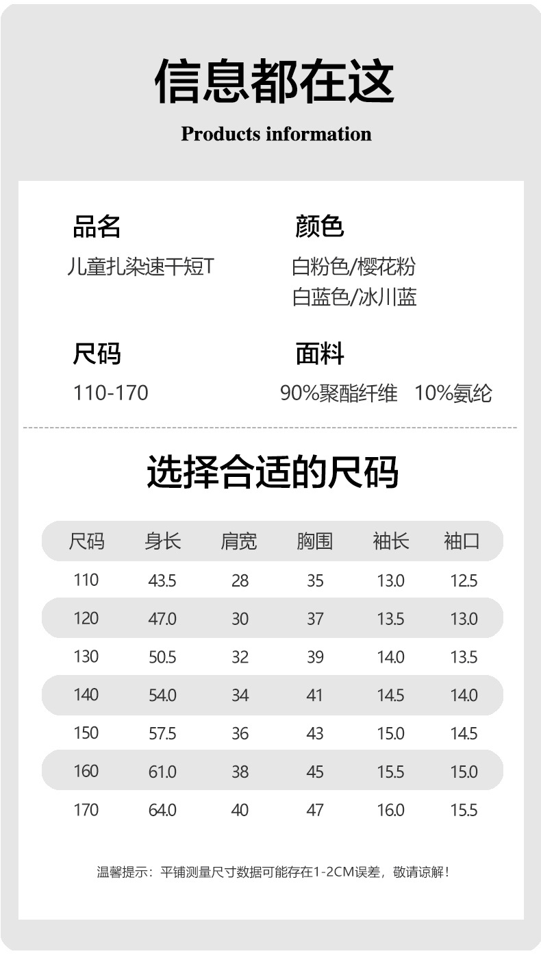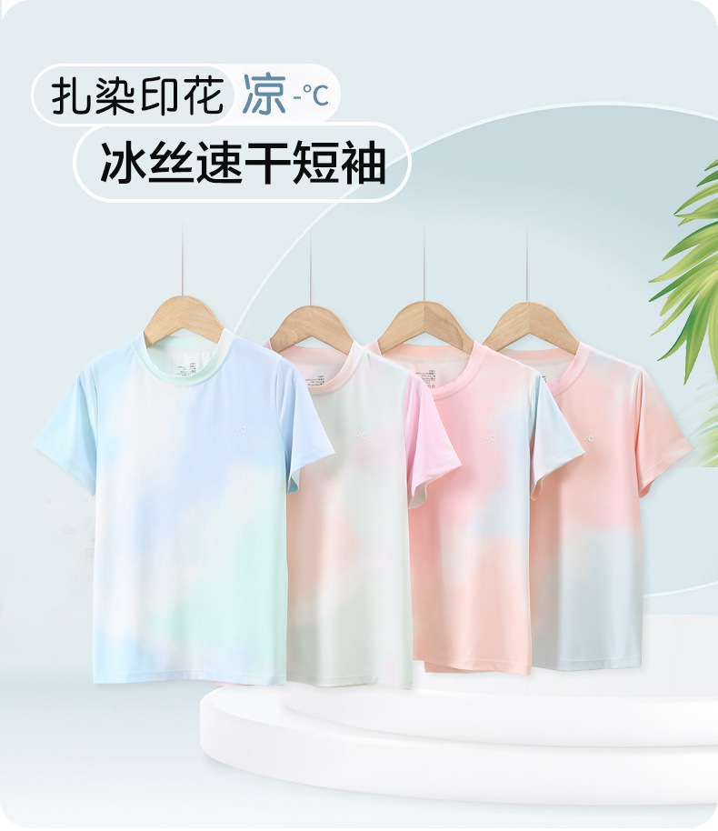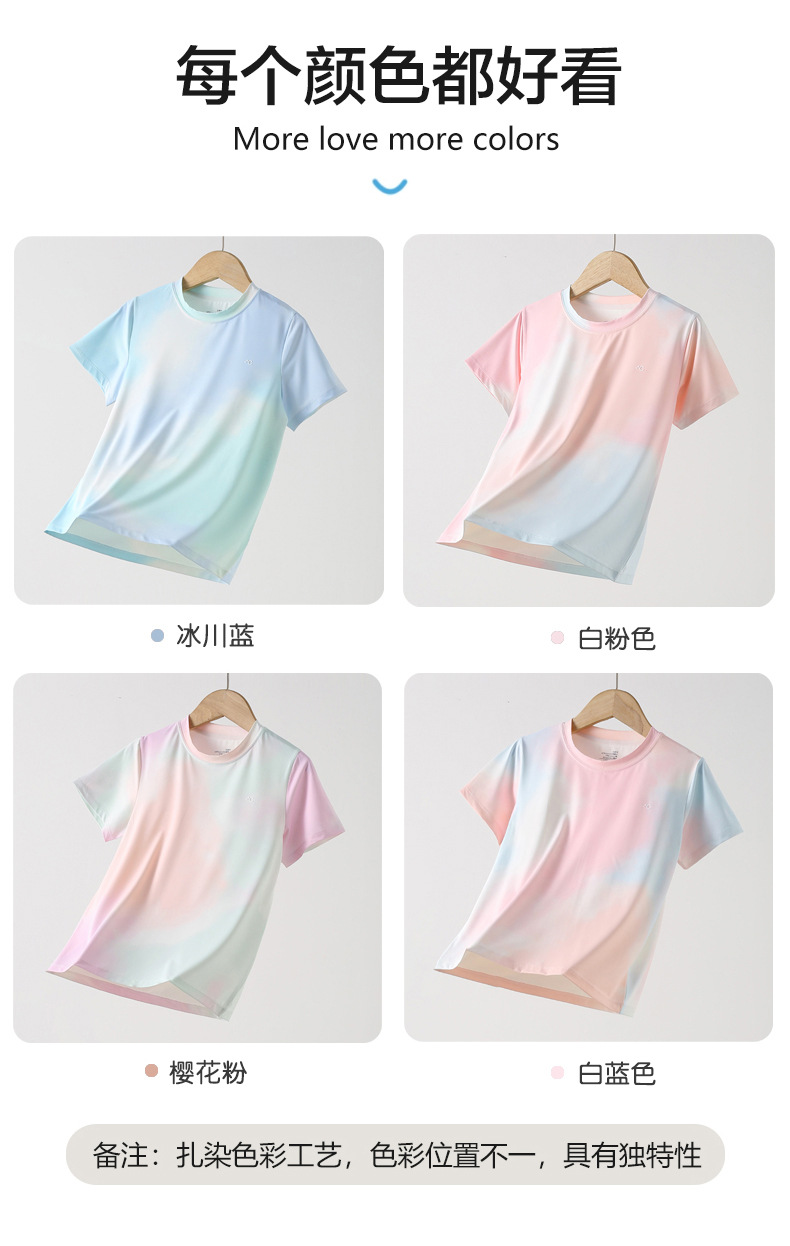 夏季儿童T恤男女童短袖扎染款速干体恤打底衫中大童冰丝上衣童装