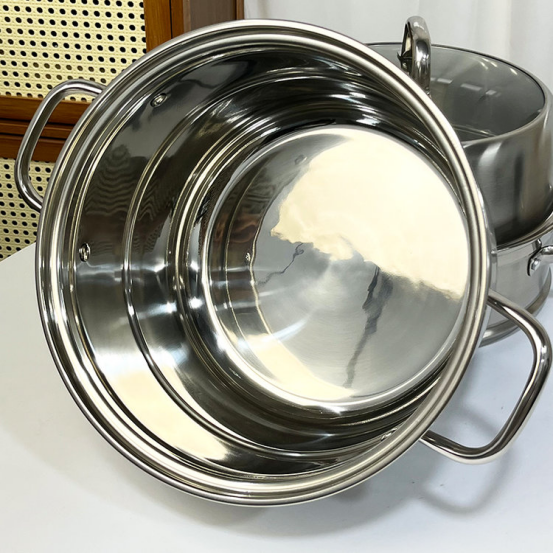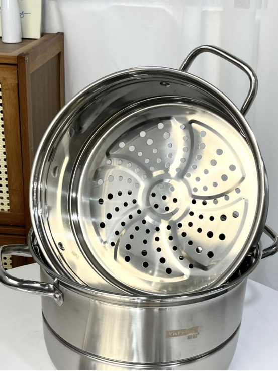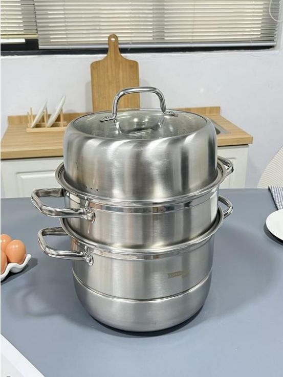 304食品级不锈钢,这材质,那叫一个放心,安全无毒,和食物接触完全没问题。 套叠收纳精巧利用空间 巧妙套叠设计,锅身可收纳进蒸屉内,释放厨房空间🍱