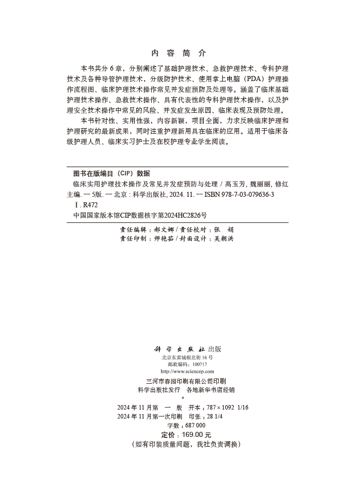 临床实用护理技术操作及常见并发症预防与处理(第5版)临床各级护理人员硕士本科大专中专临床实习护士等9787030796363科学出版社