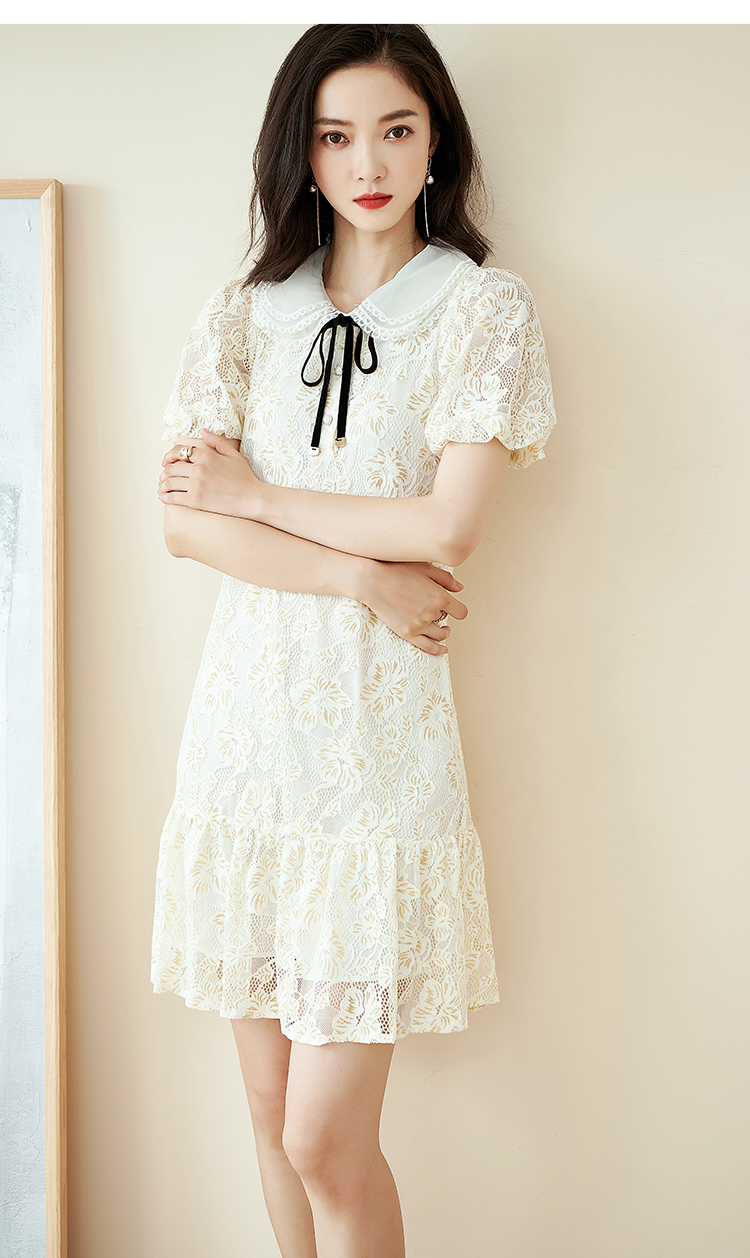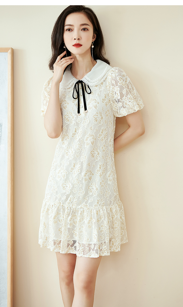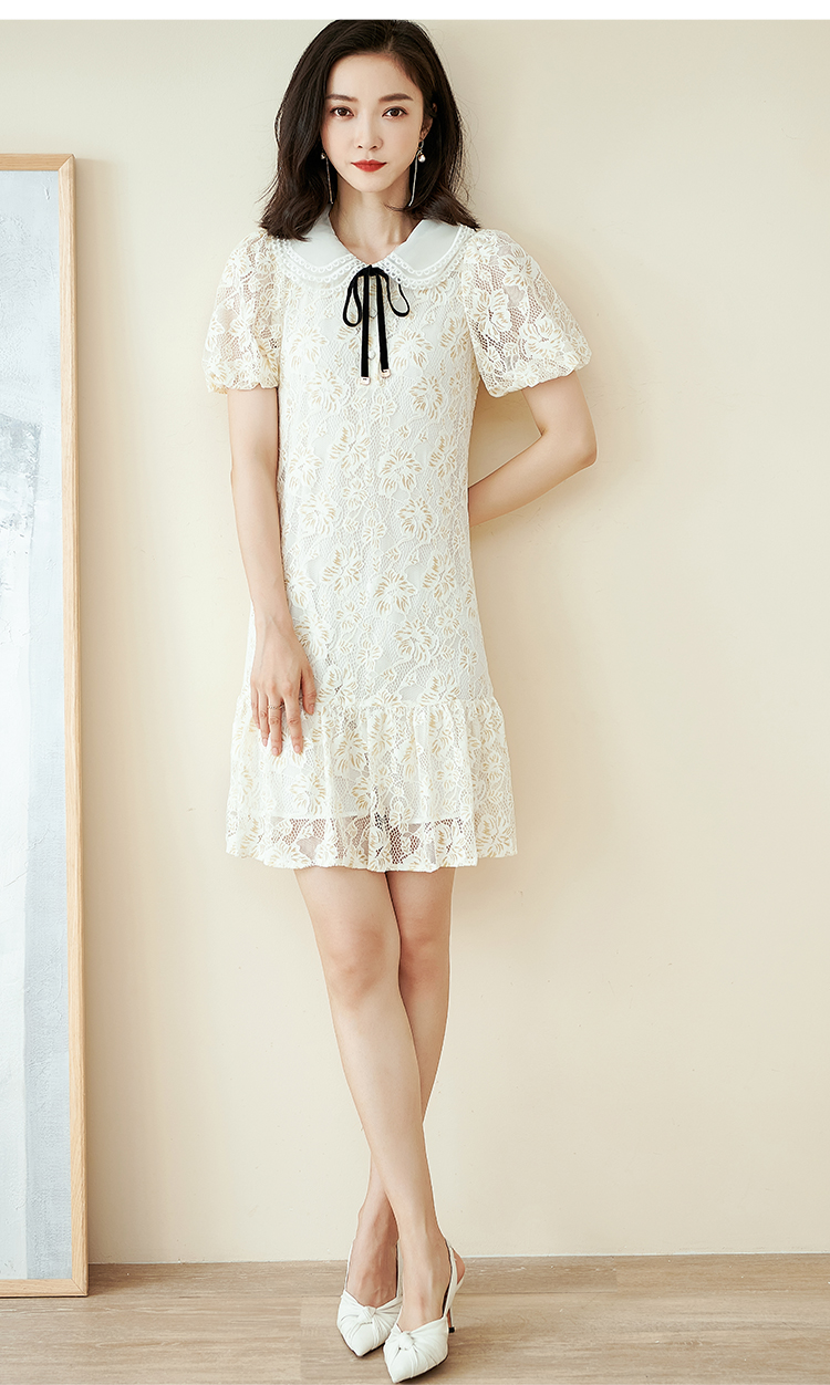 剩S/M/L/XL 芳外 夏季温婉优雅蕾丝中长裙宽松灯笼袖连衣裙1025