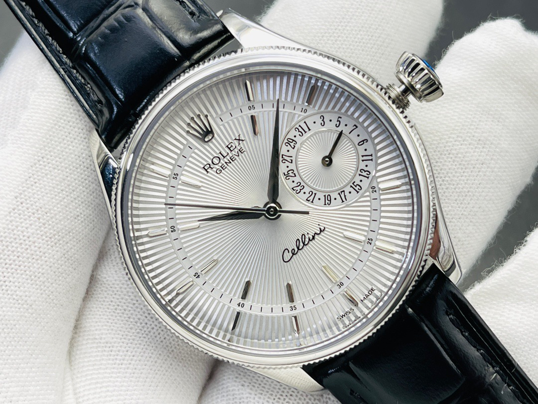TWF劳li士切利尼系列。尺寸39*11.5mm,3165克隆机芯,蓝宝石镜面,鳄鱼皮表带,男士腕表,密底,自动机械机芯