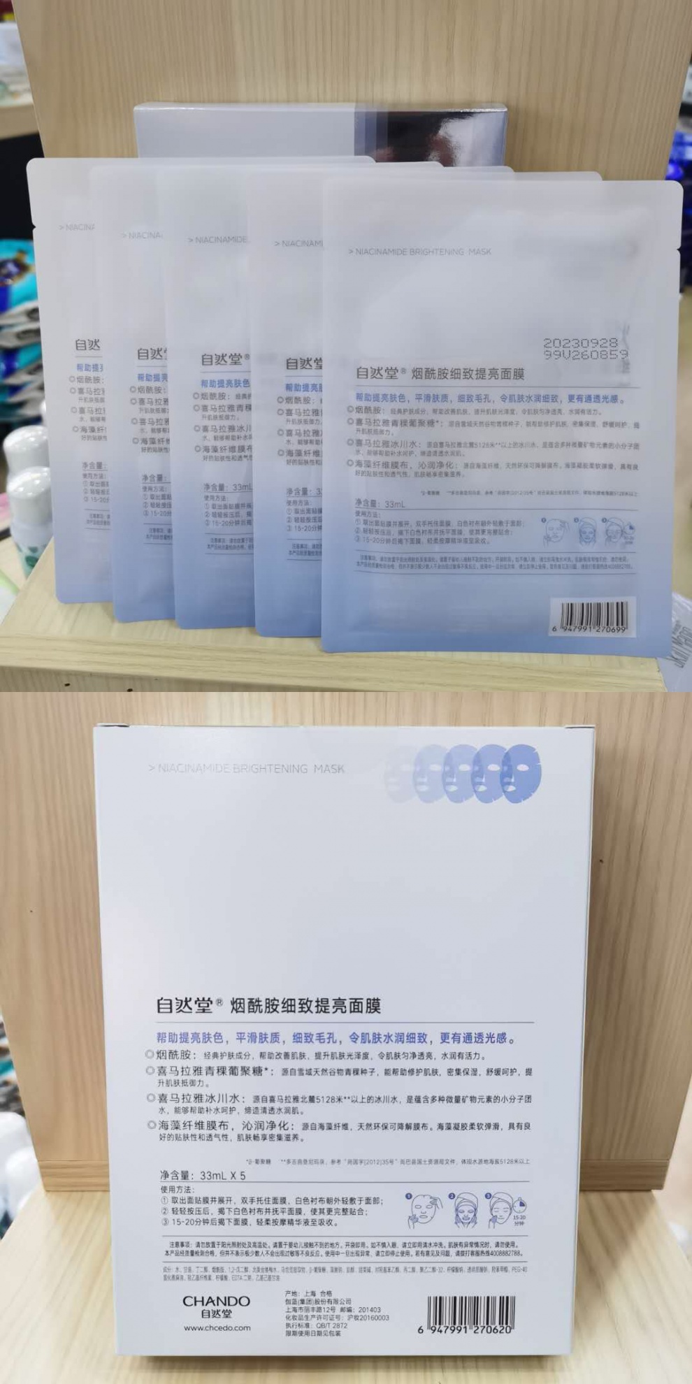 自然堂烟酰胺细致提亮面膜5片/盒
