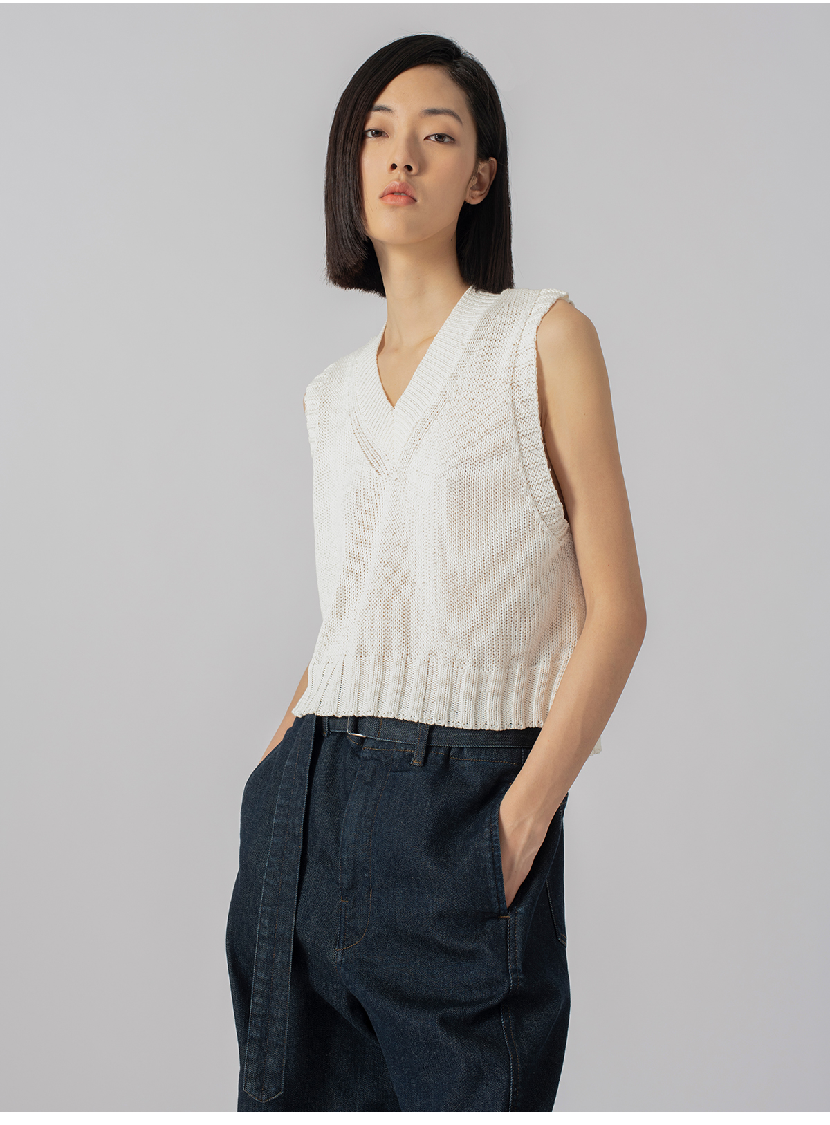 322工房重塑经典和纸纱棉针织马甲2023春夏款V领百搭无袖背心B069