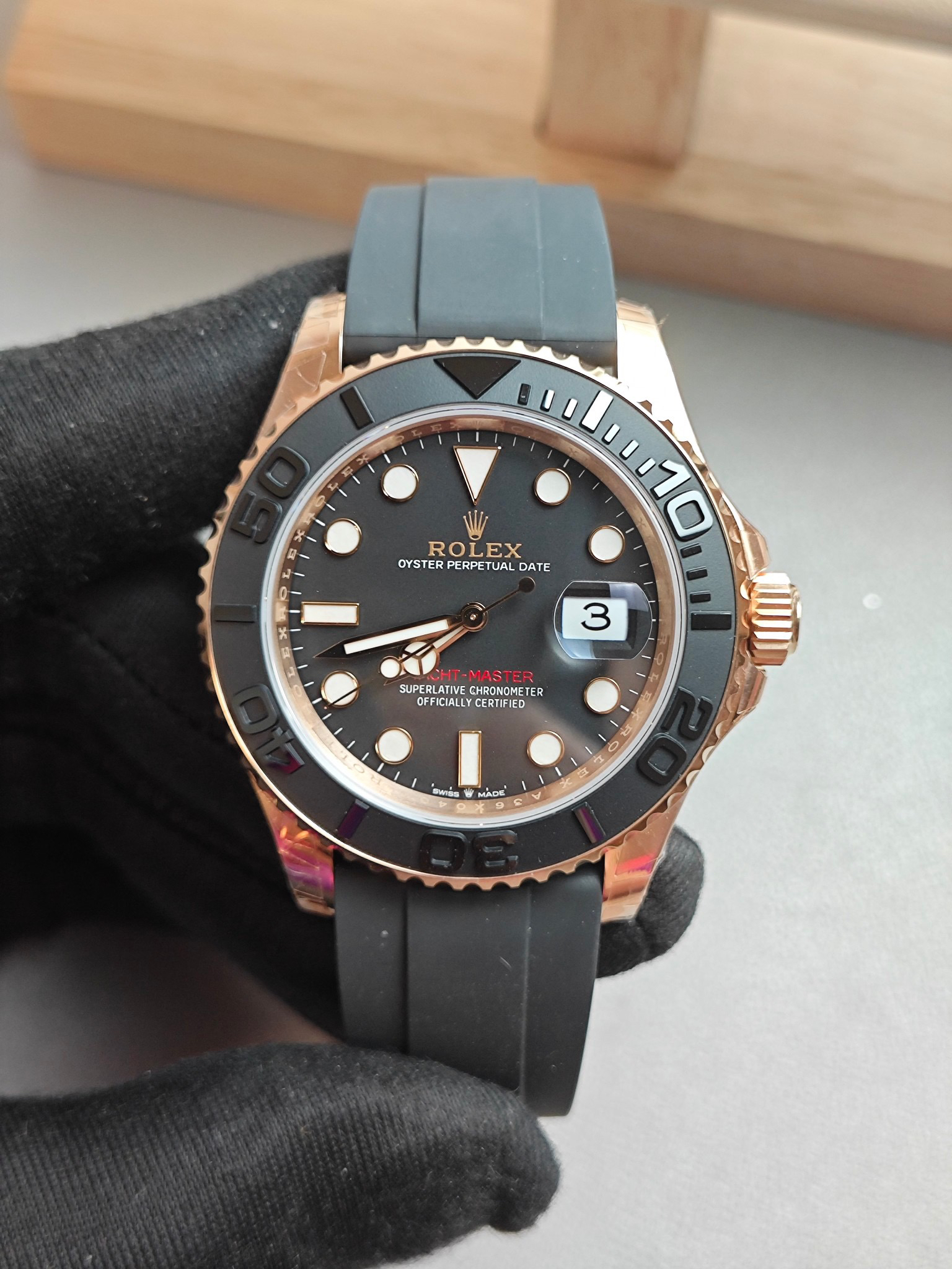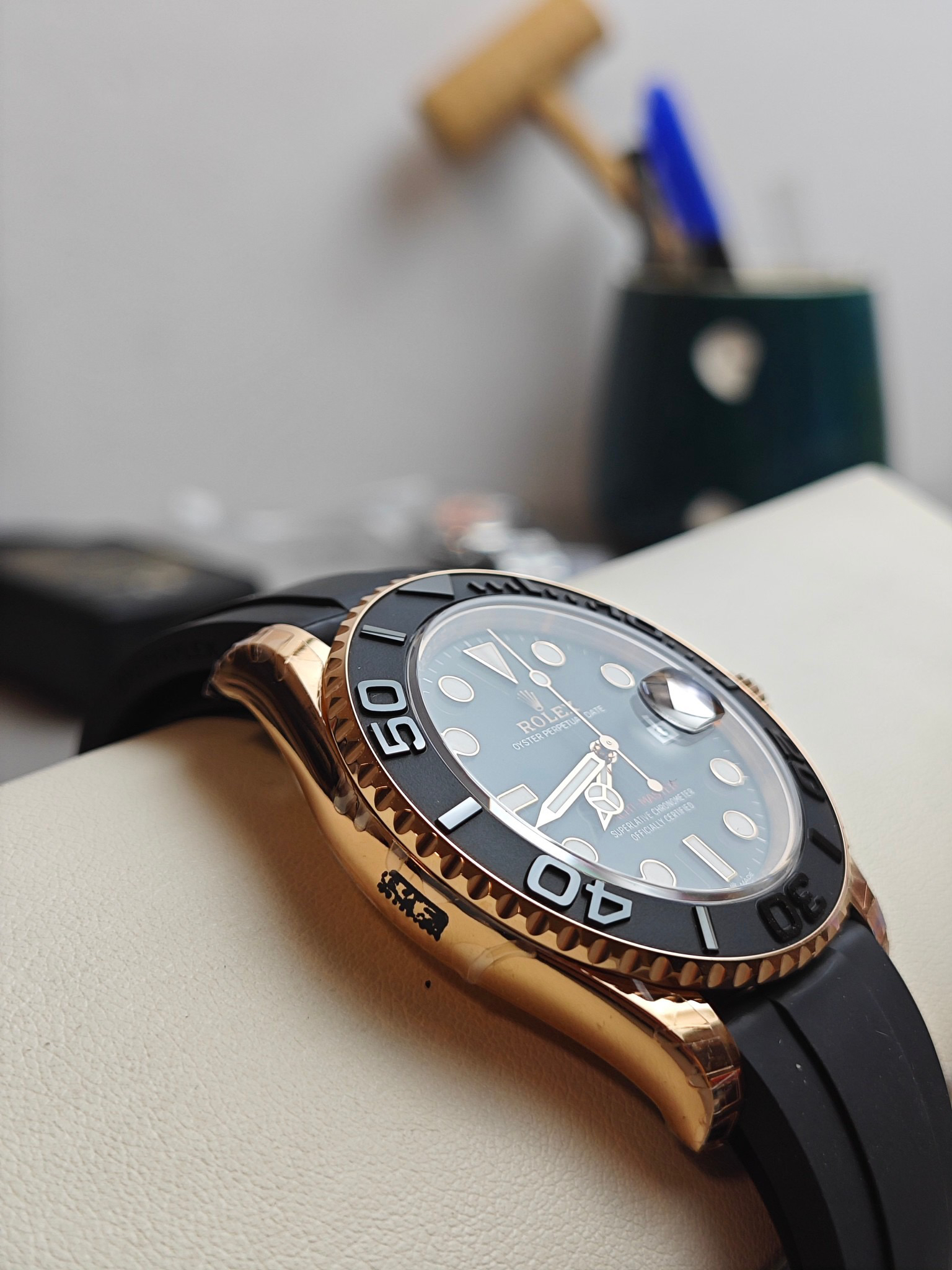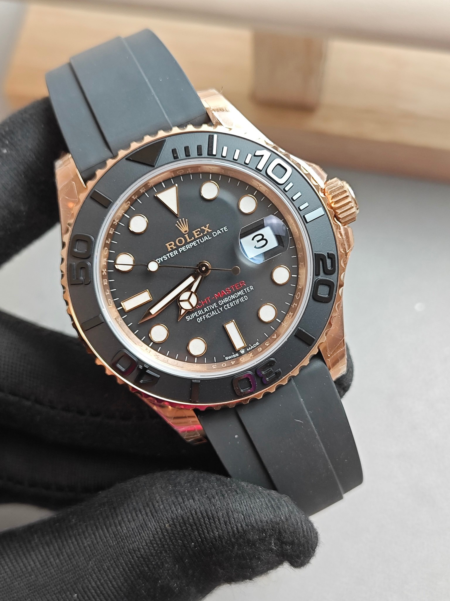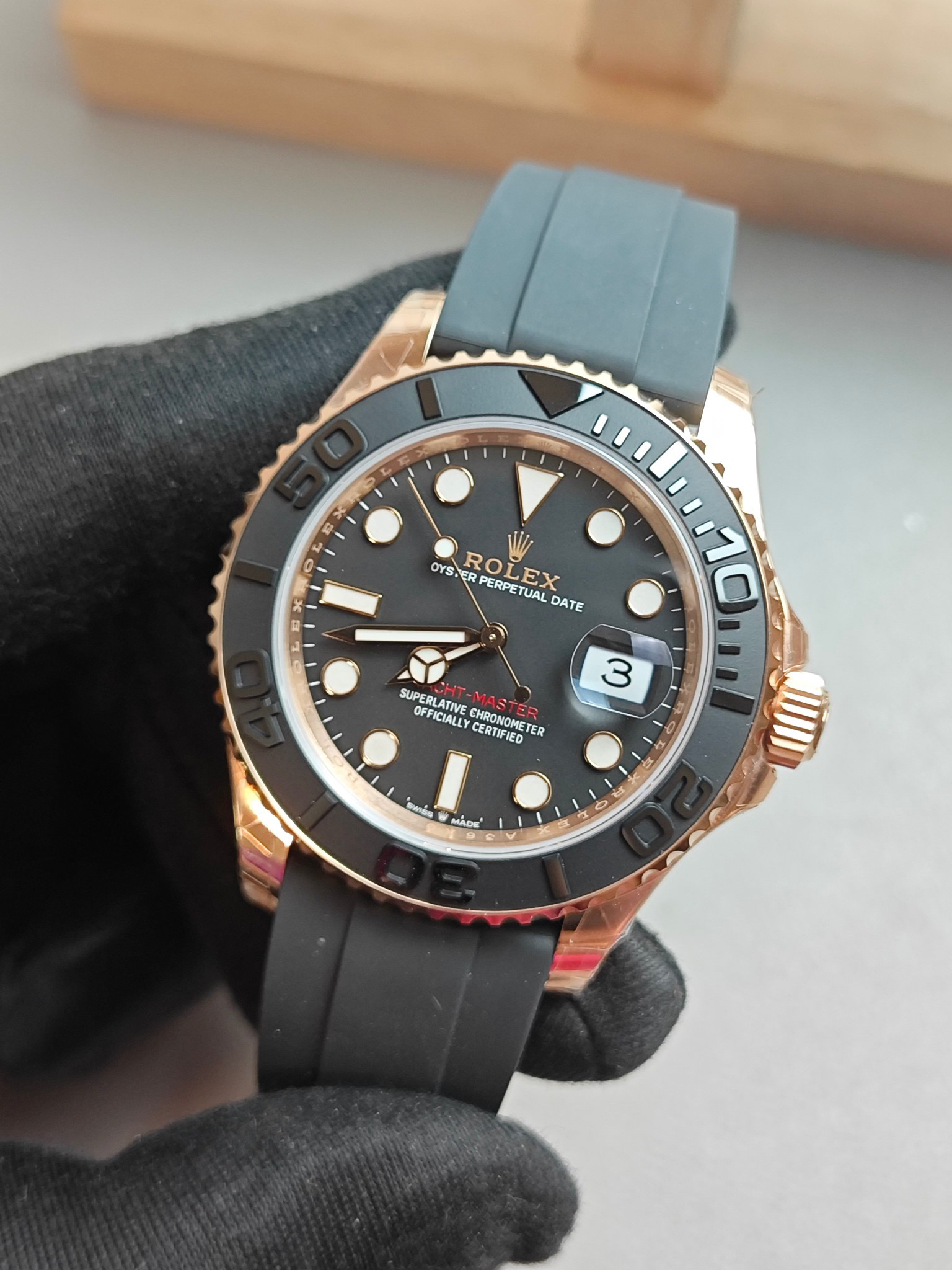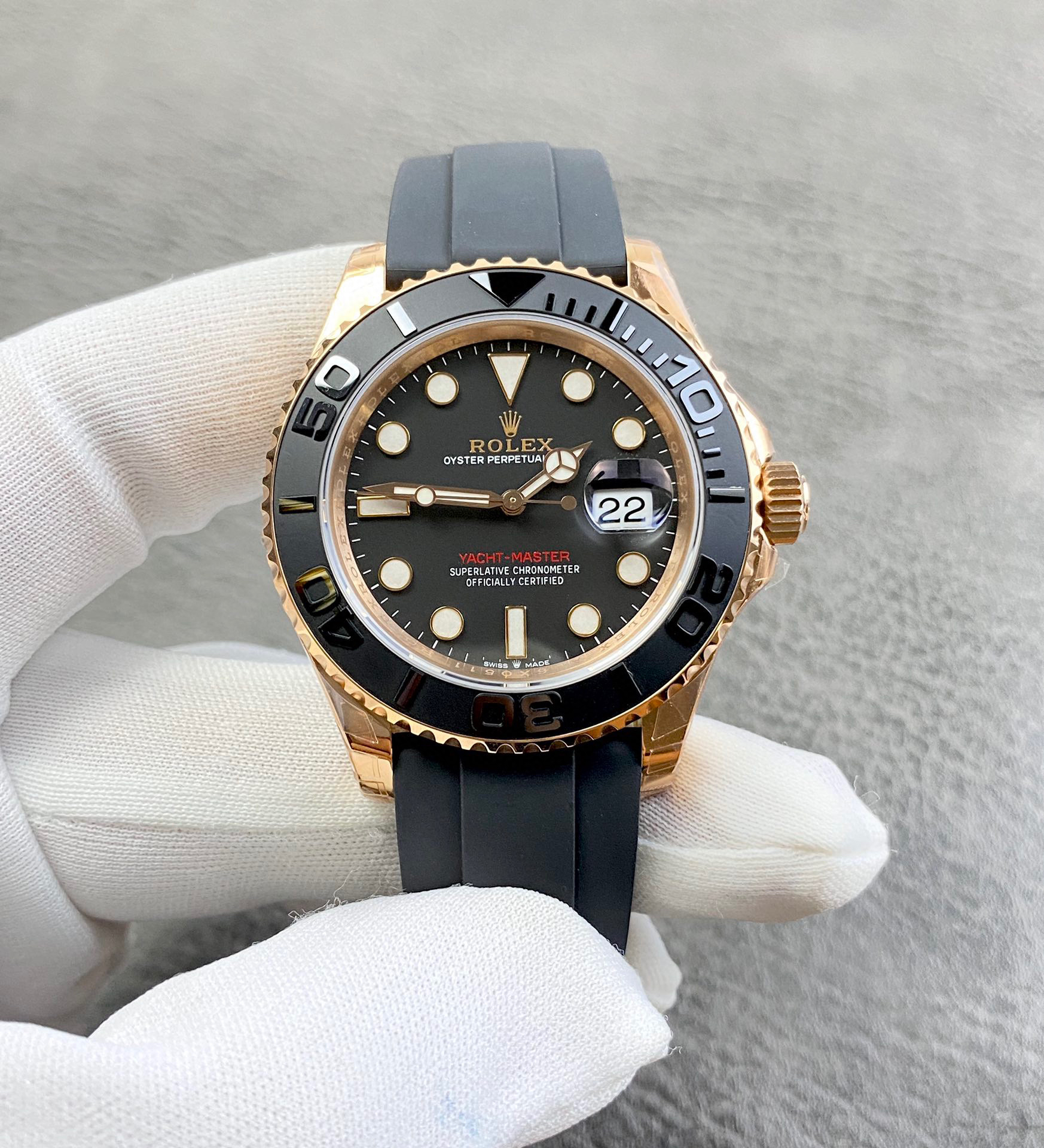 『42毫米版本』clean蓝铌游丝3135机芯版本金游艇——116655腕表震撼登场。是还原了正品独特玫瑰金色调的版本,采用与原装同样的真空负离子电镀工艺,确保和正品一致的抗腐蚀耐划痕效果
