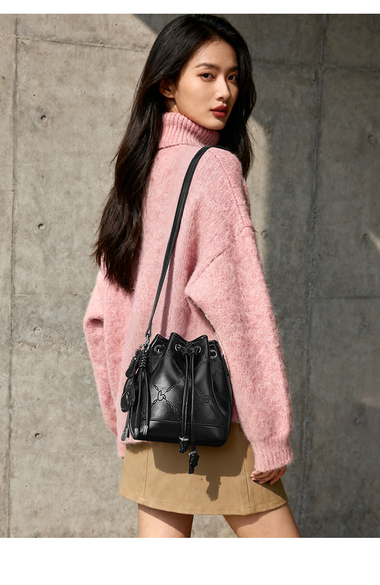 星期六时尚压纹简约水桶包SSD521A0GB