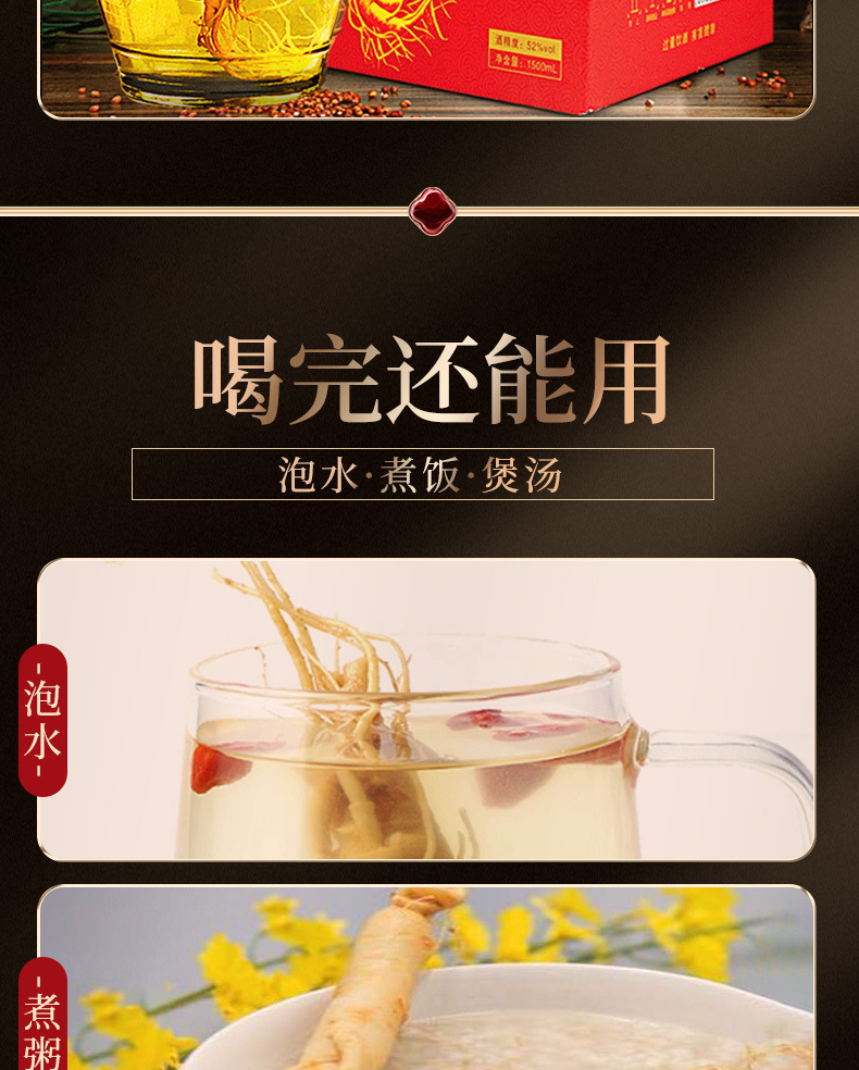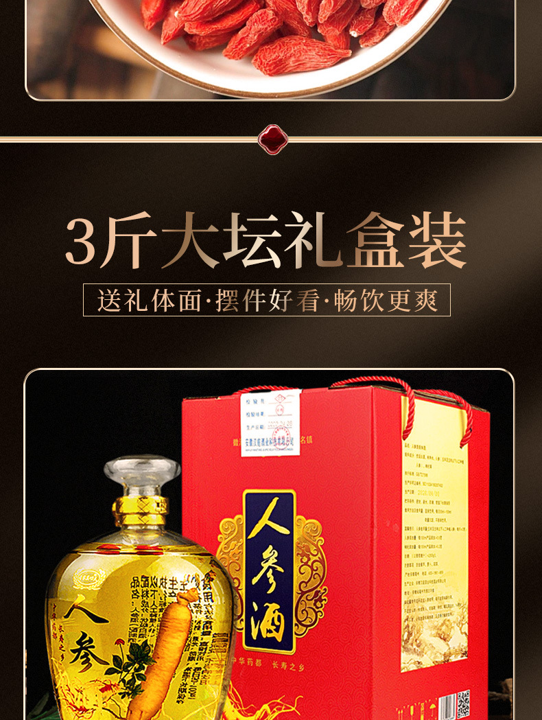 【严选推荐!长白山人参枸杞酒礼盒装】匠心质酿,参味浓郁,1500ml人参酒52度非药酒整箱节日送礼物优选