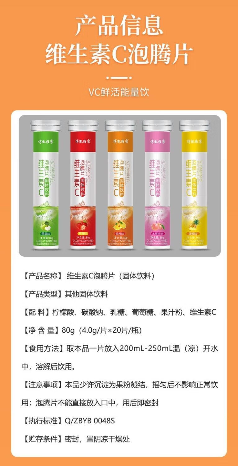 【中欧班列精选】博凯维康vc片 维生素c泡腾片20片/支