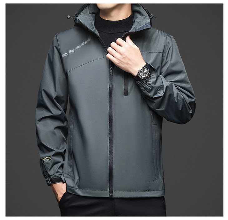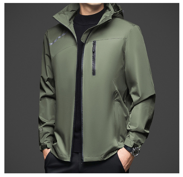 连帽夹克男春秋季新款红色薄款休闲高档免烫宽松外套上衣