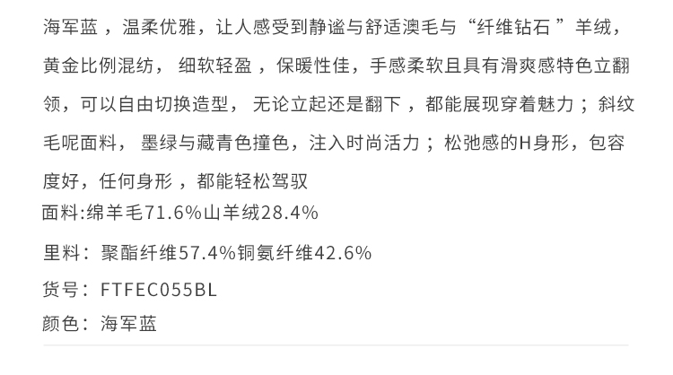 callisto高智系列蓝色绵羊毛混纺大衣